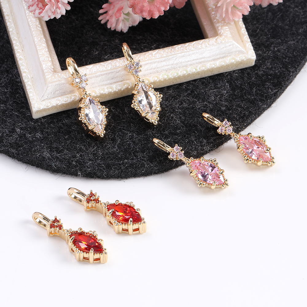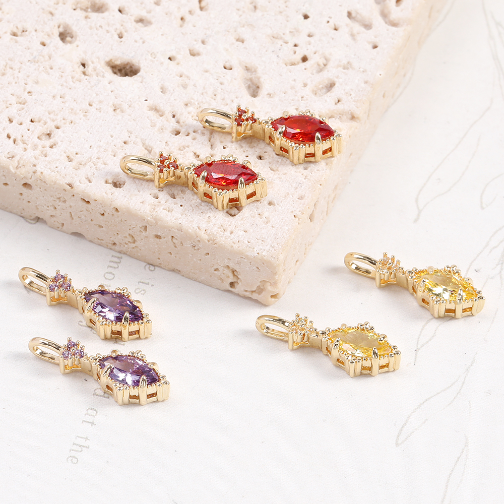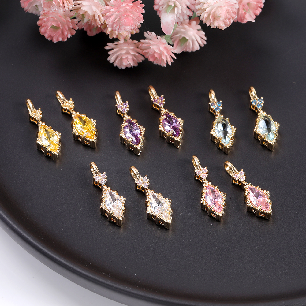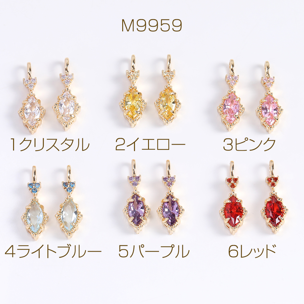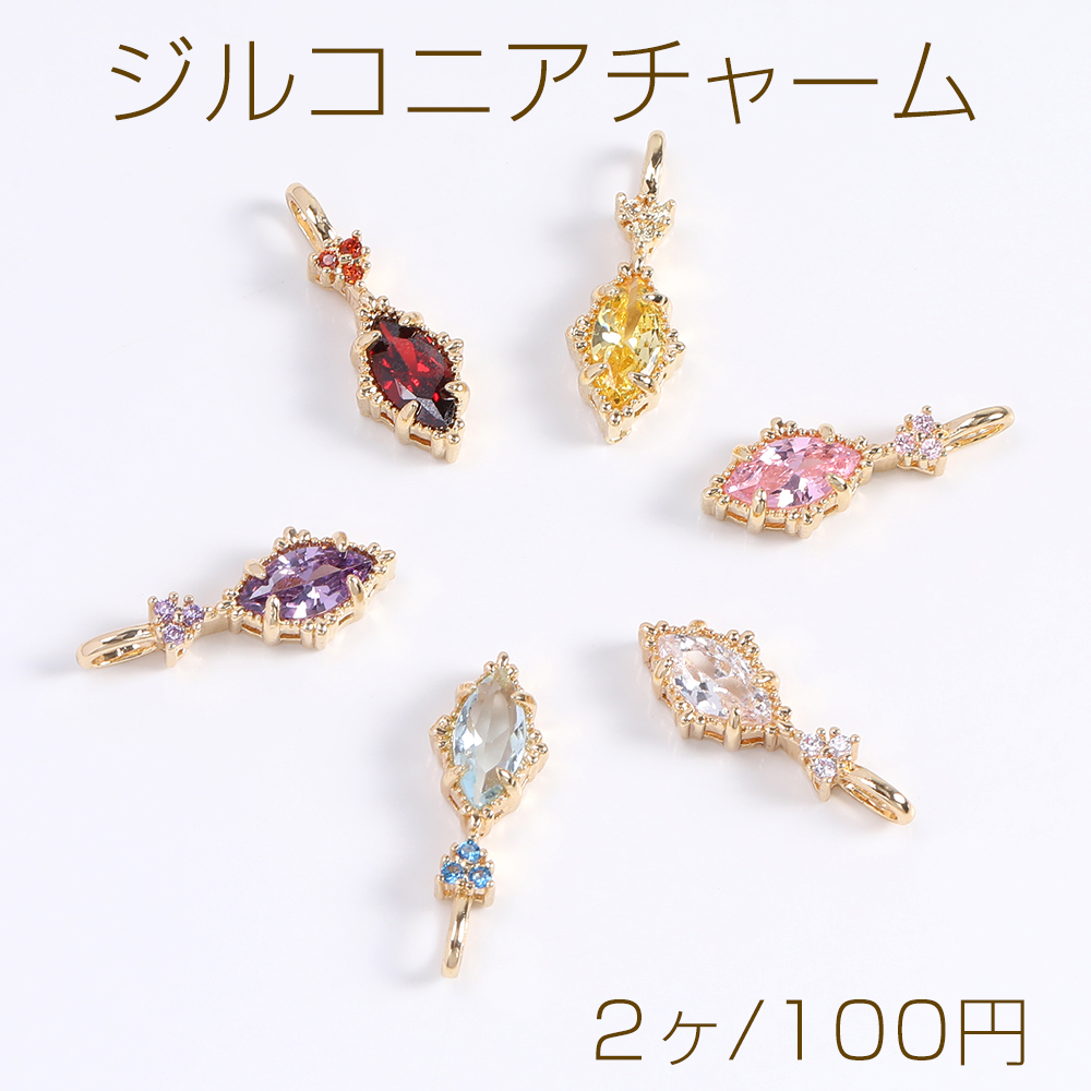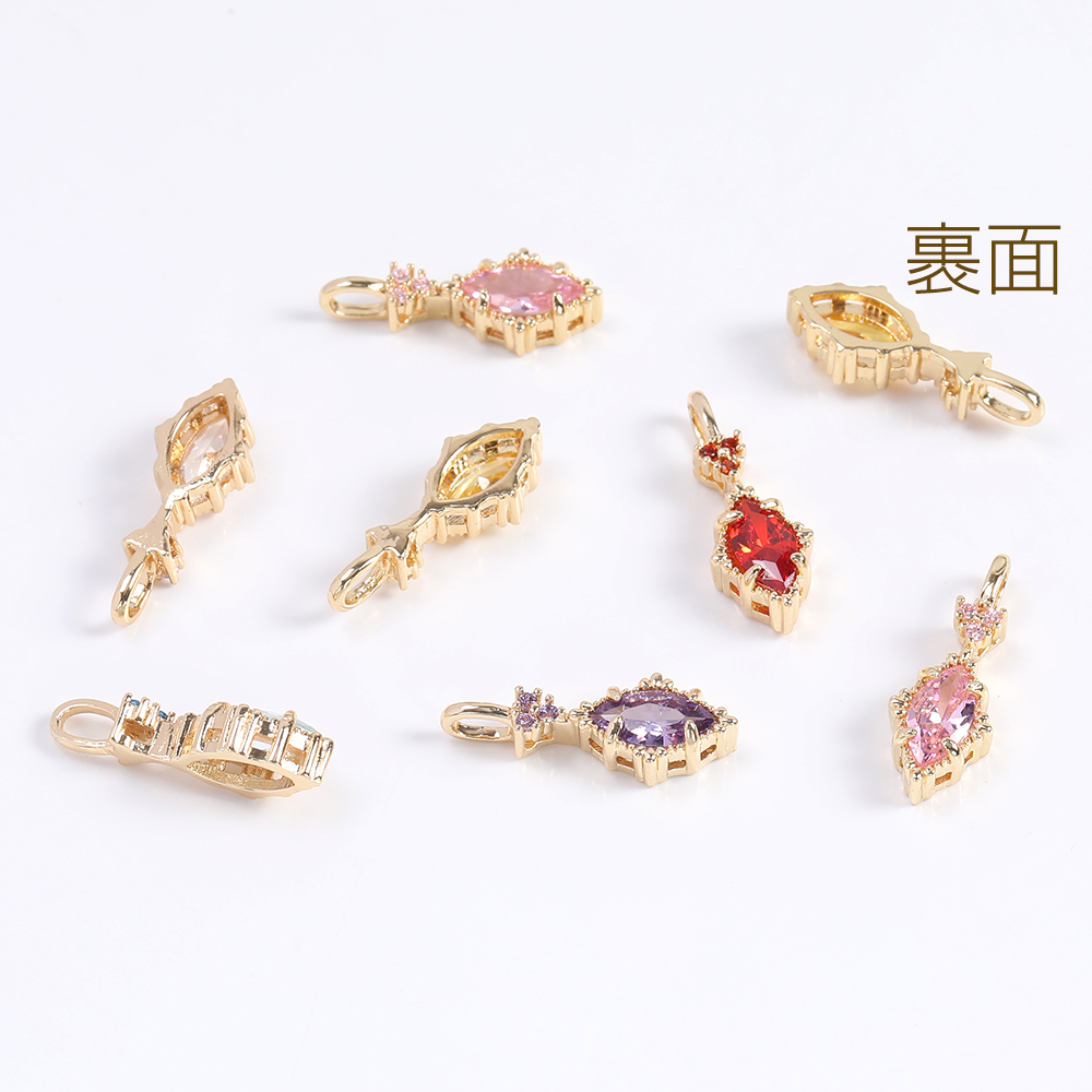 高品質ジルコニアチャーム ロングひし形 カン付き 7×19mm ゴールド(2ヶ)