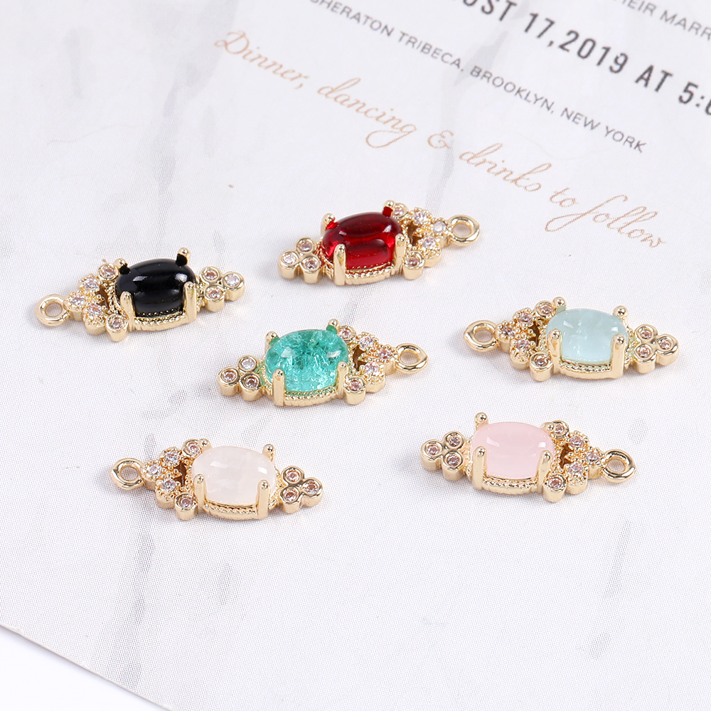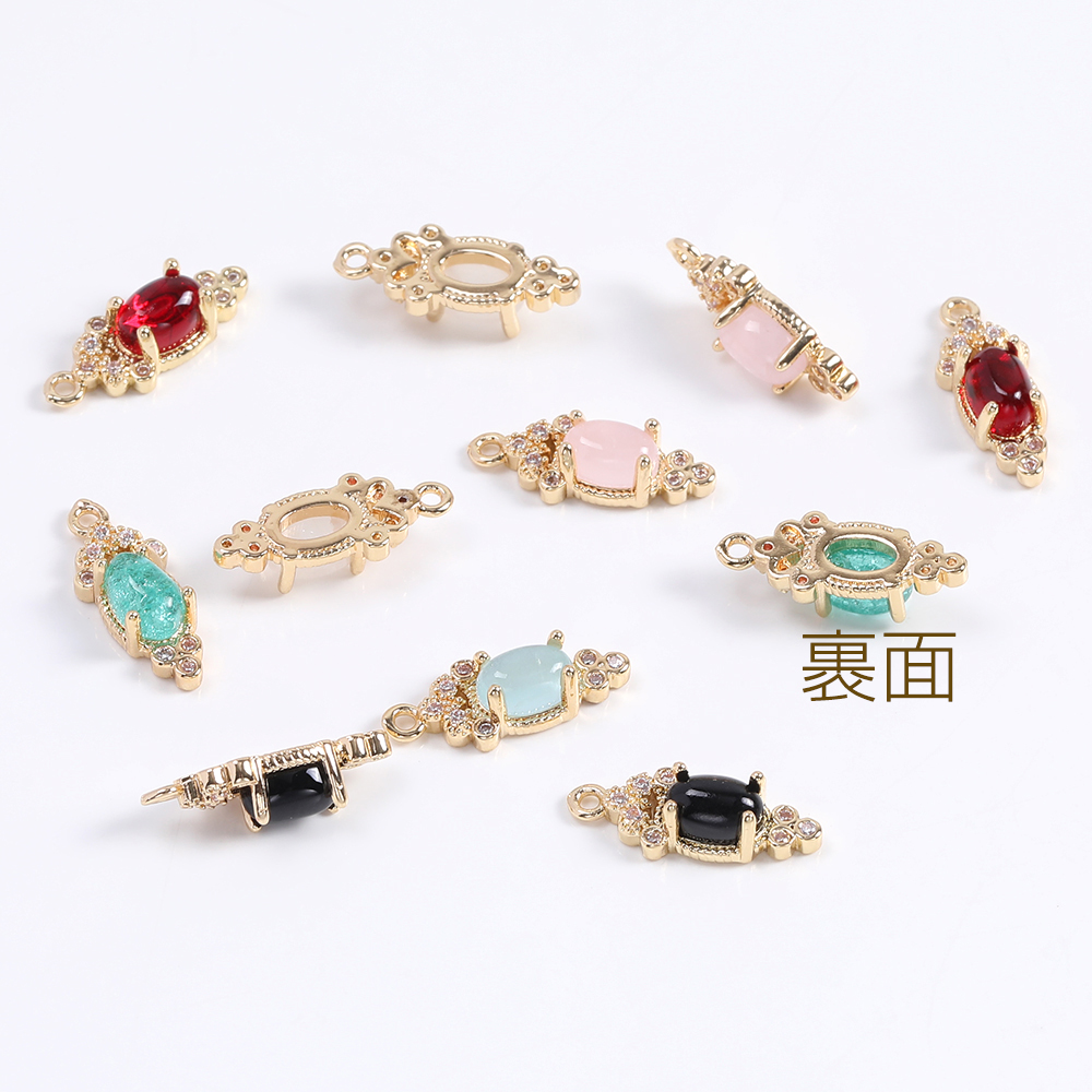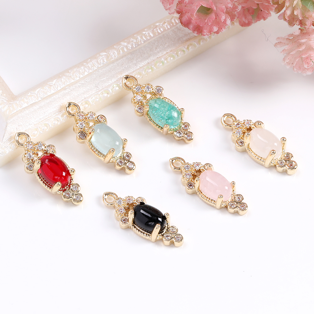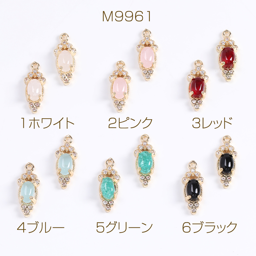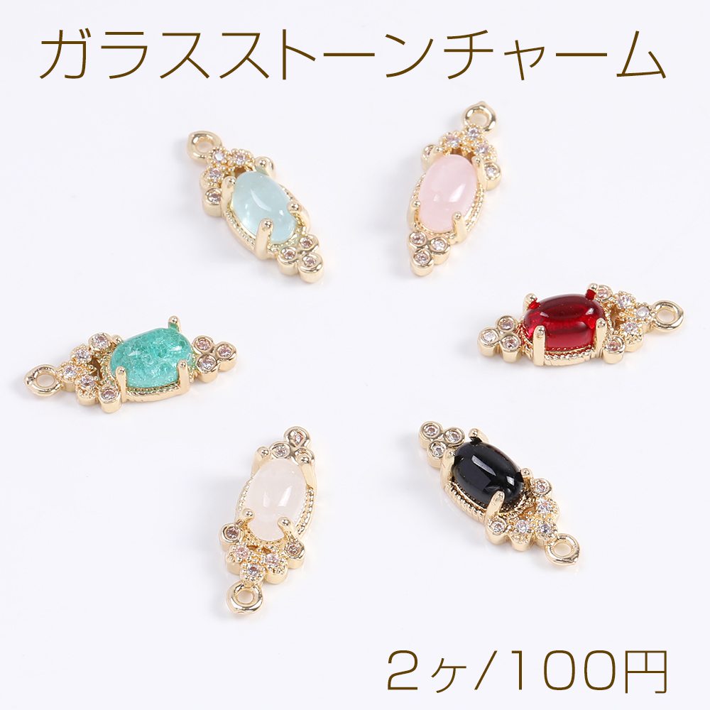 高品質ガラスストーンチャーム ロングオーバル カン付き 6×16mm ゴールド(2ヶ)