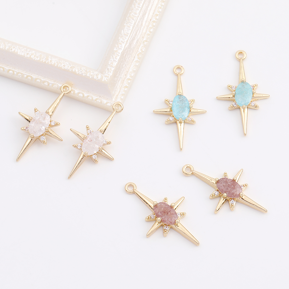 高品質ガラスストーンチャーム 星形 カン付き 12×21mm ゴールド(2ヶ)