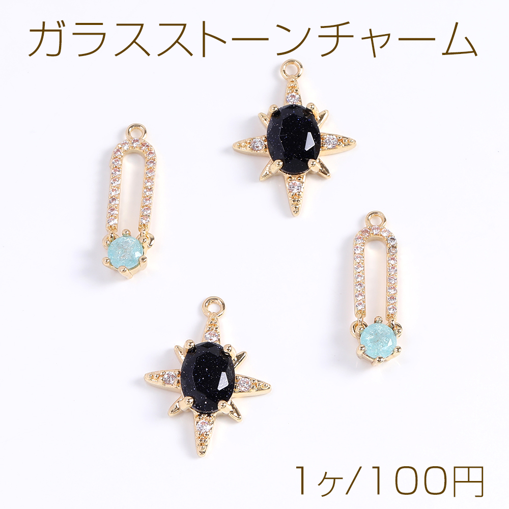 高品質ガラスストーンチャーム 全2種 ゴールド