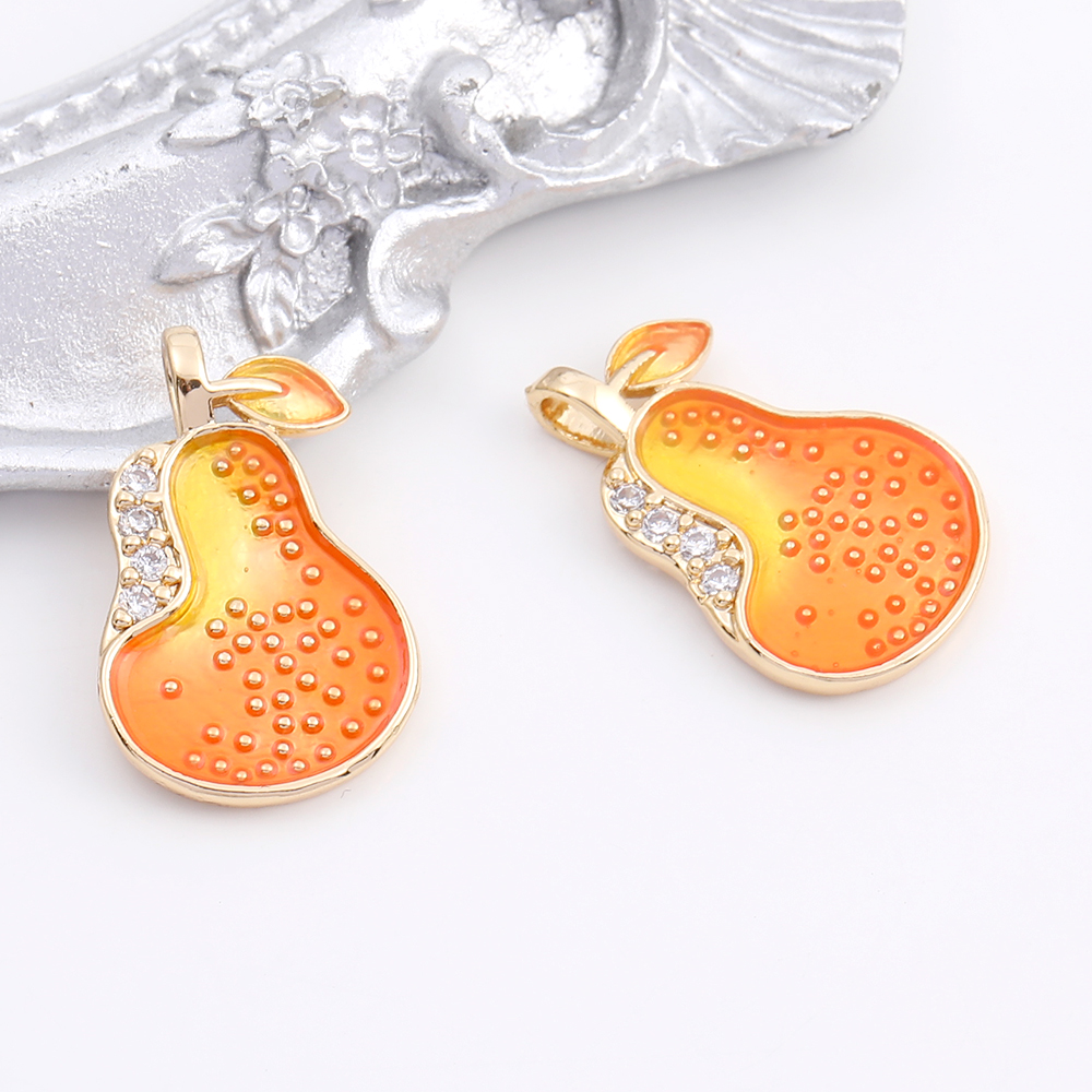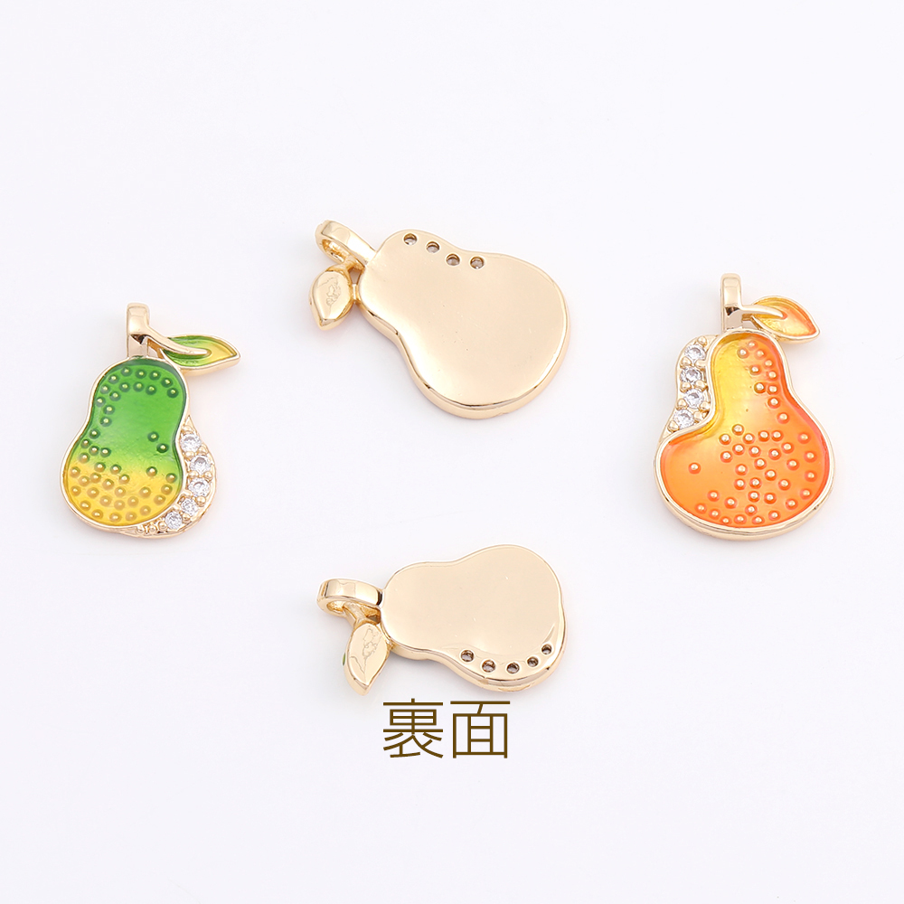 高品質ジルコニアチャーム エポ付き 洋ナシ ゴールド