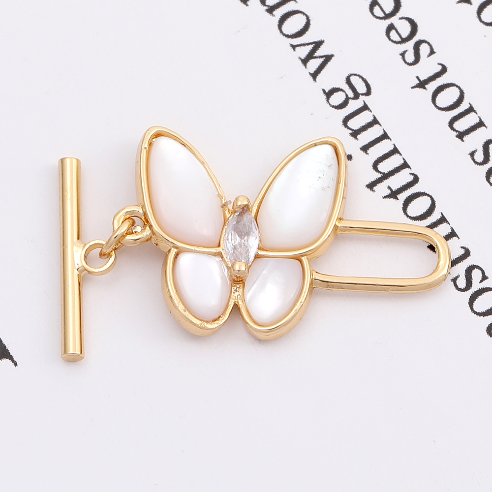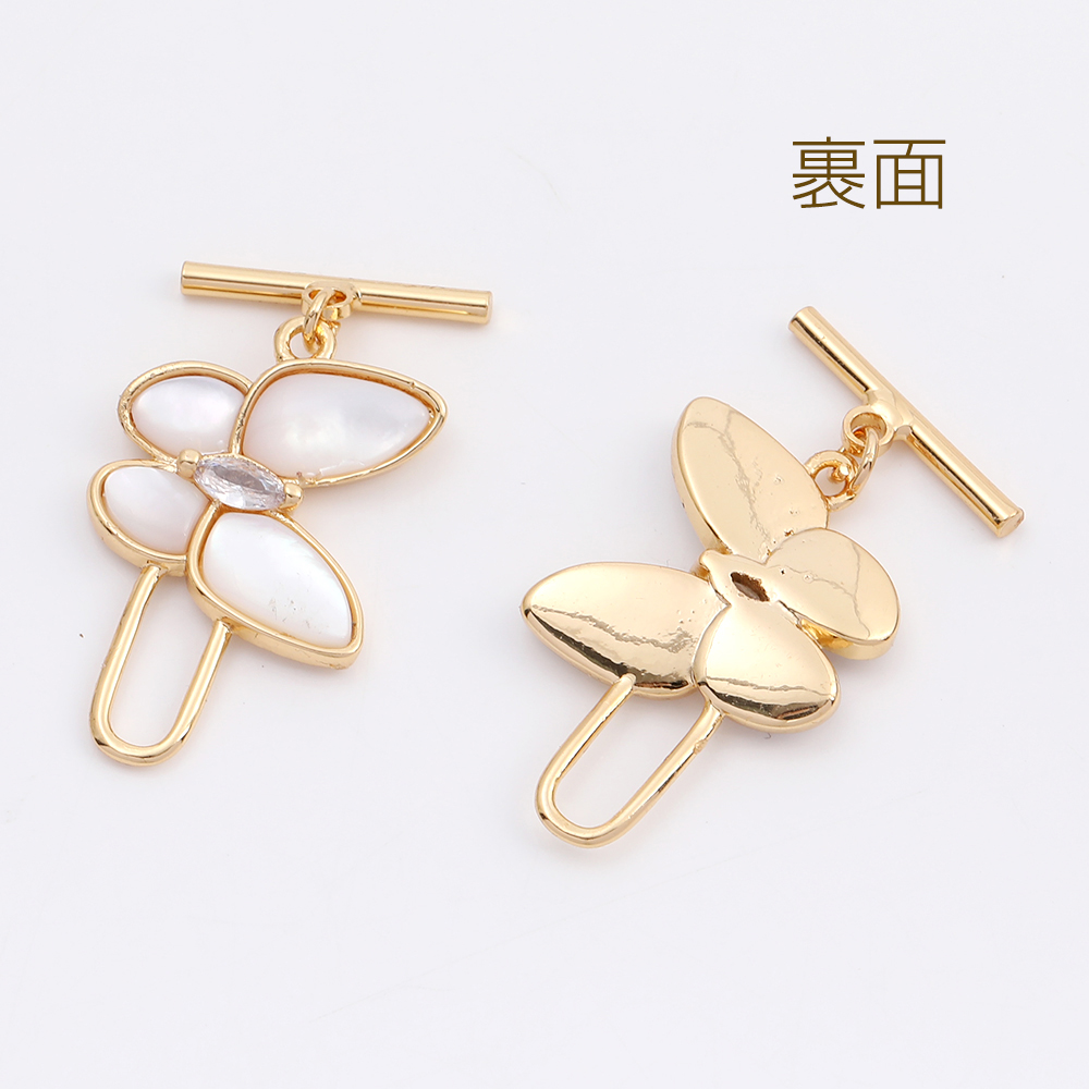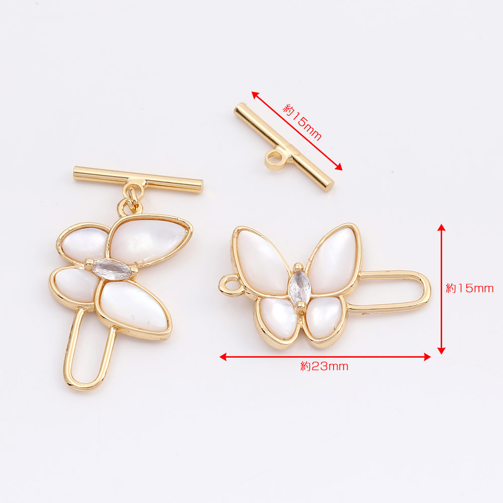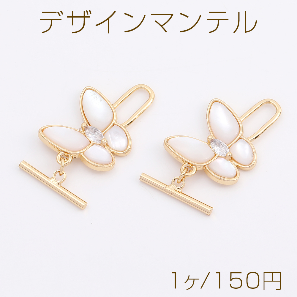 高品質デザインマンテル ジルコニア&シェル付き 蝶 ゴールド(1ヶ)