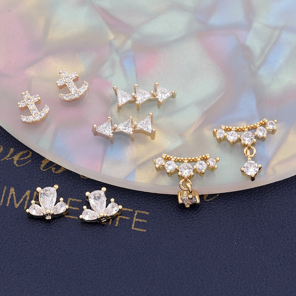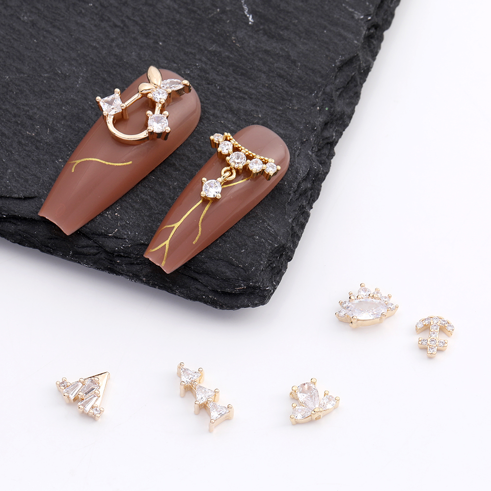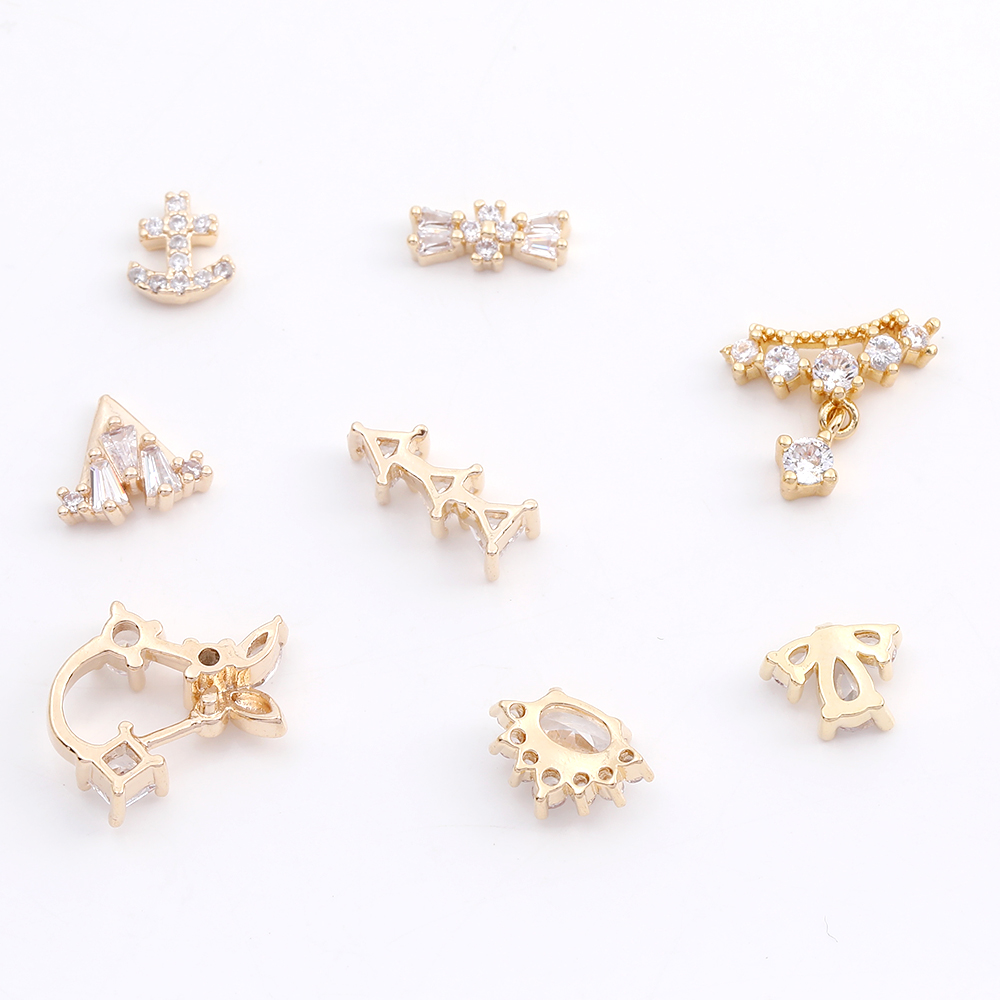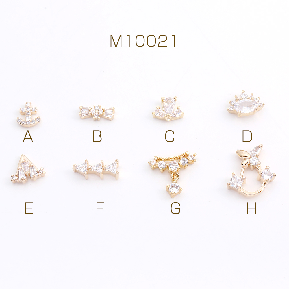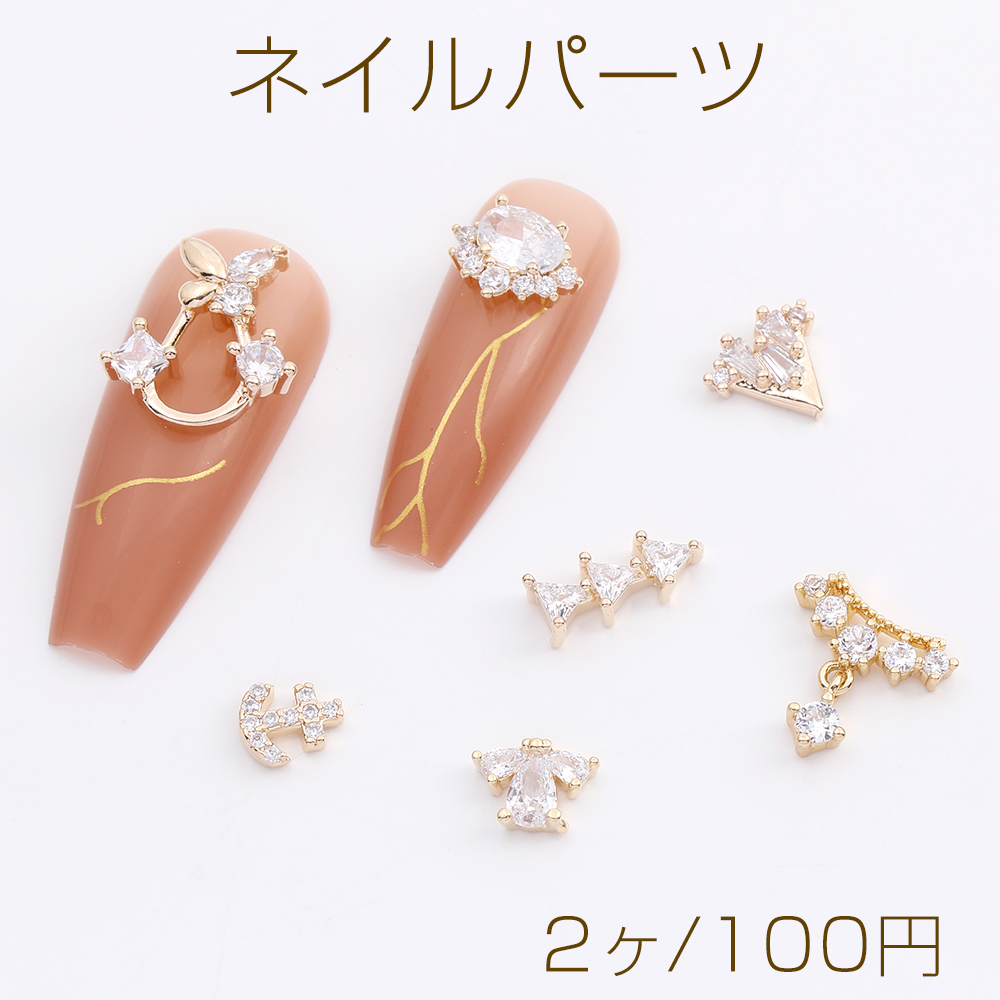 高品質ネイルパーツ メタルネイルパーツ ジルコニア付き 全8種 ゴールド