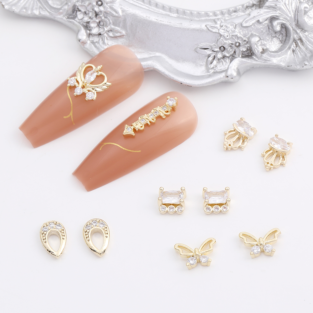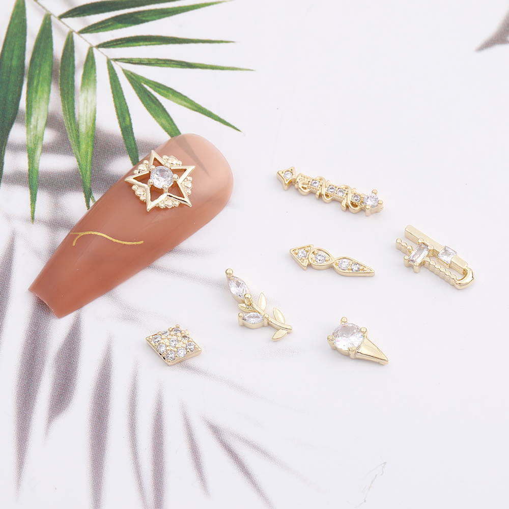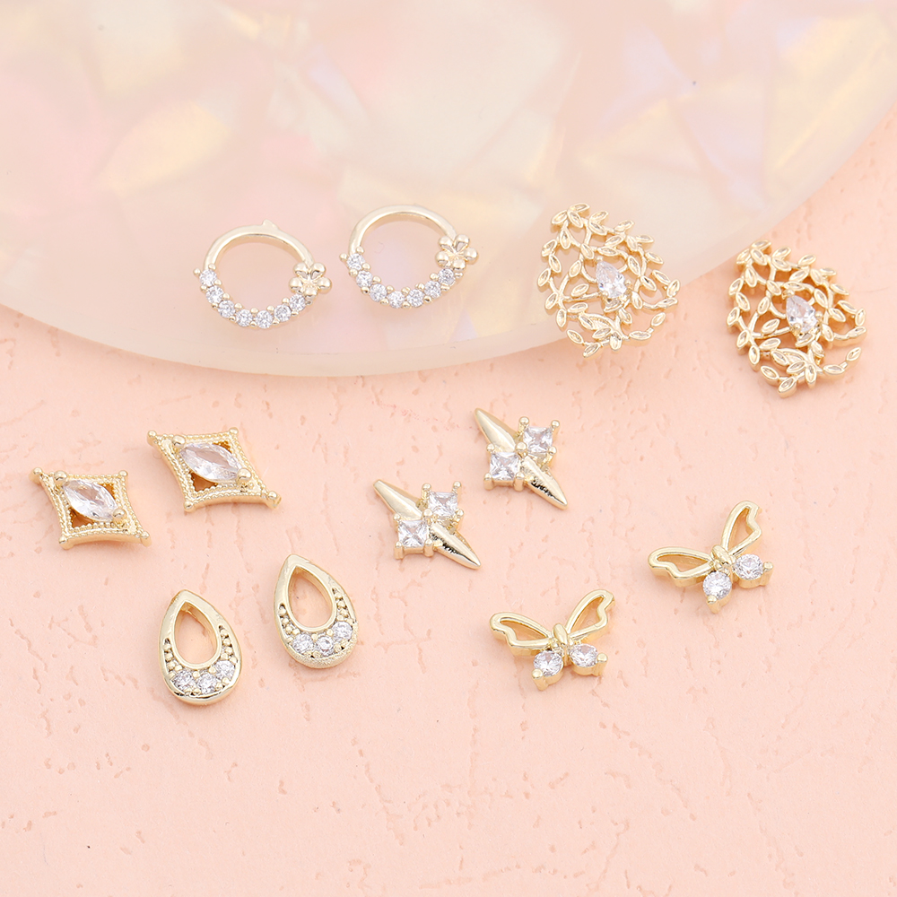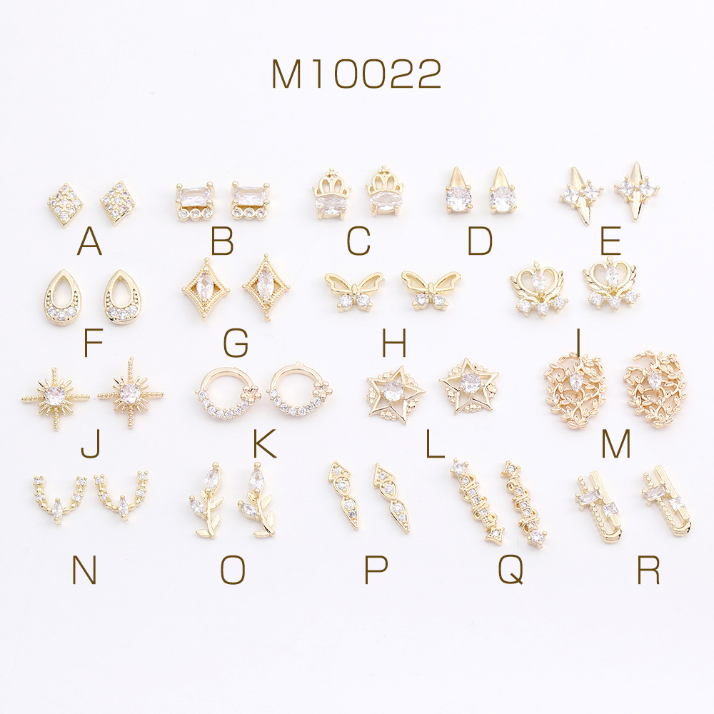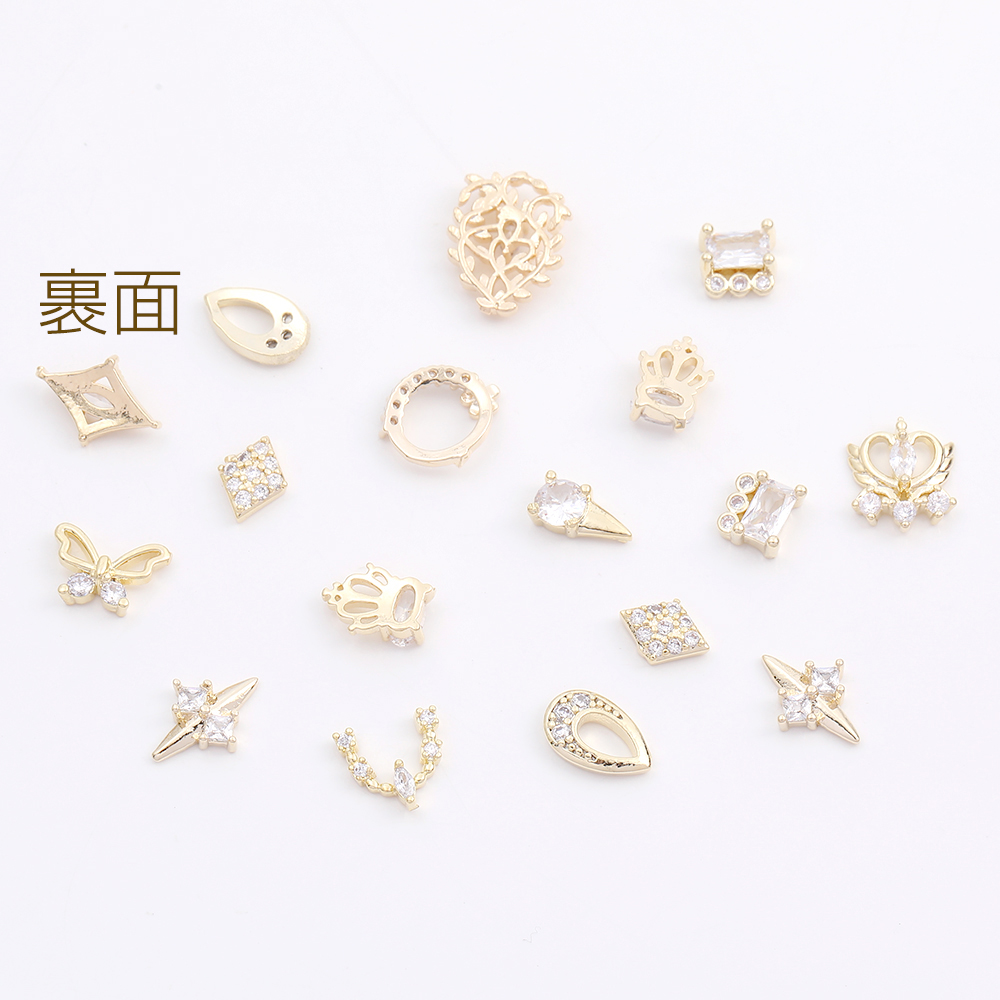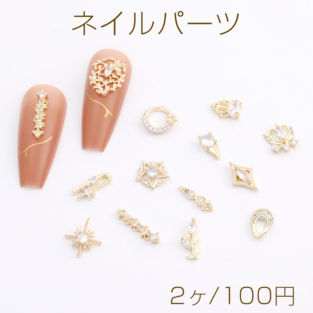 高品質ネイルパーツ メタルネイルパーツ ジルコニア付き 全18種 ゴールド