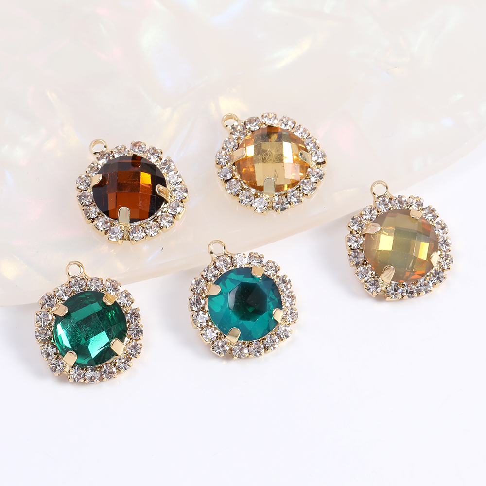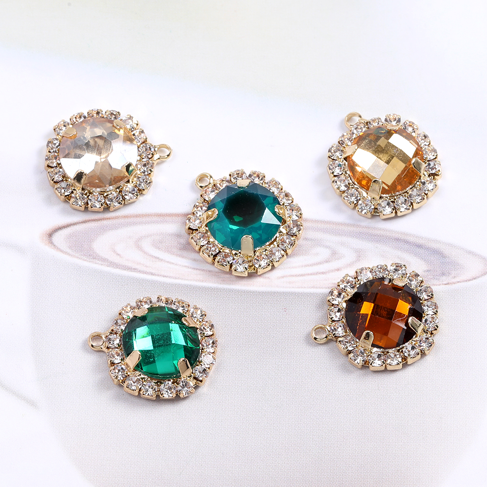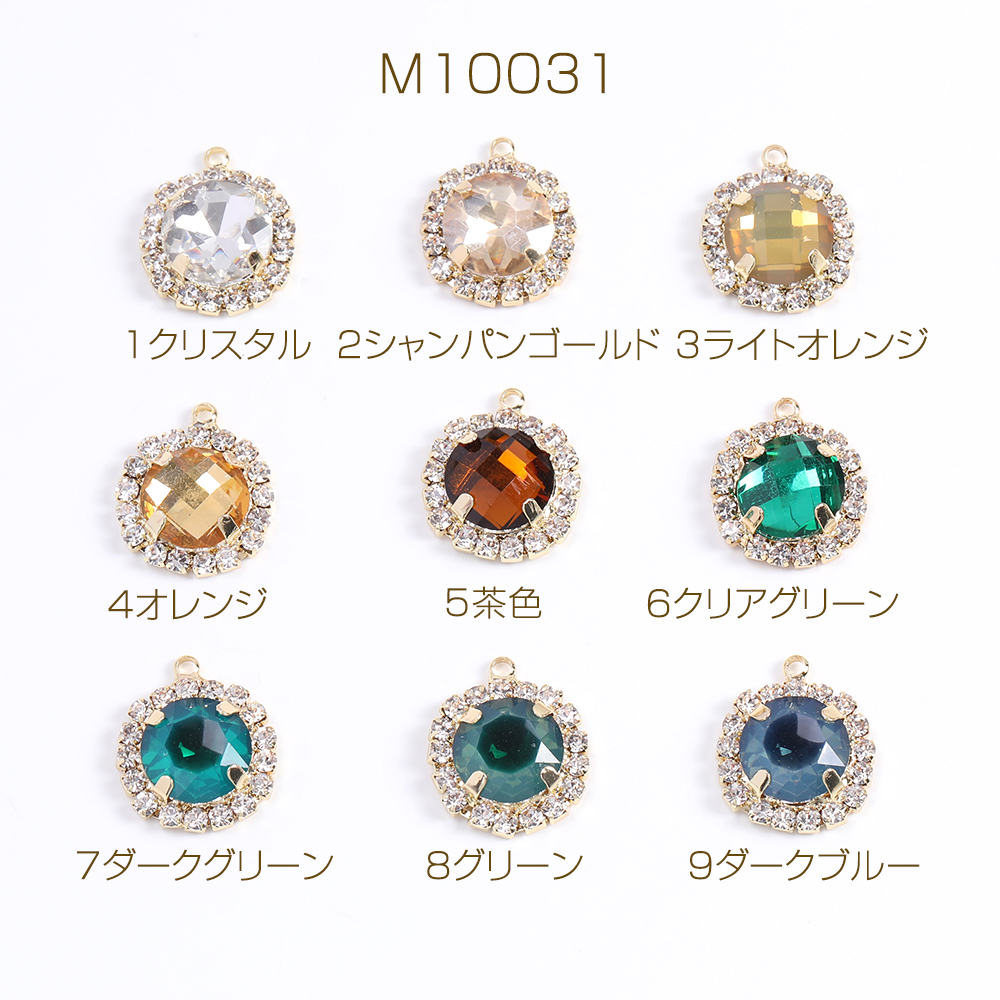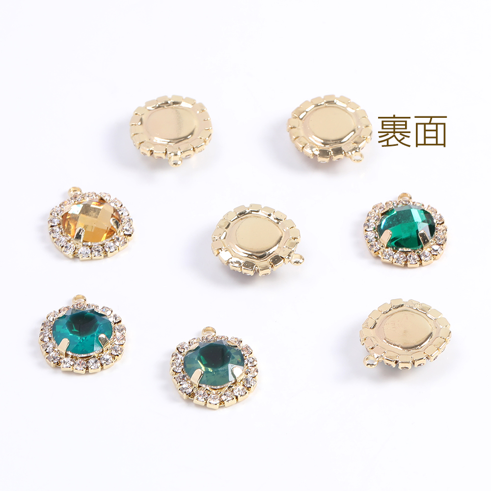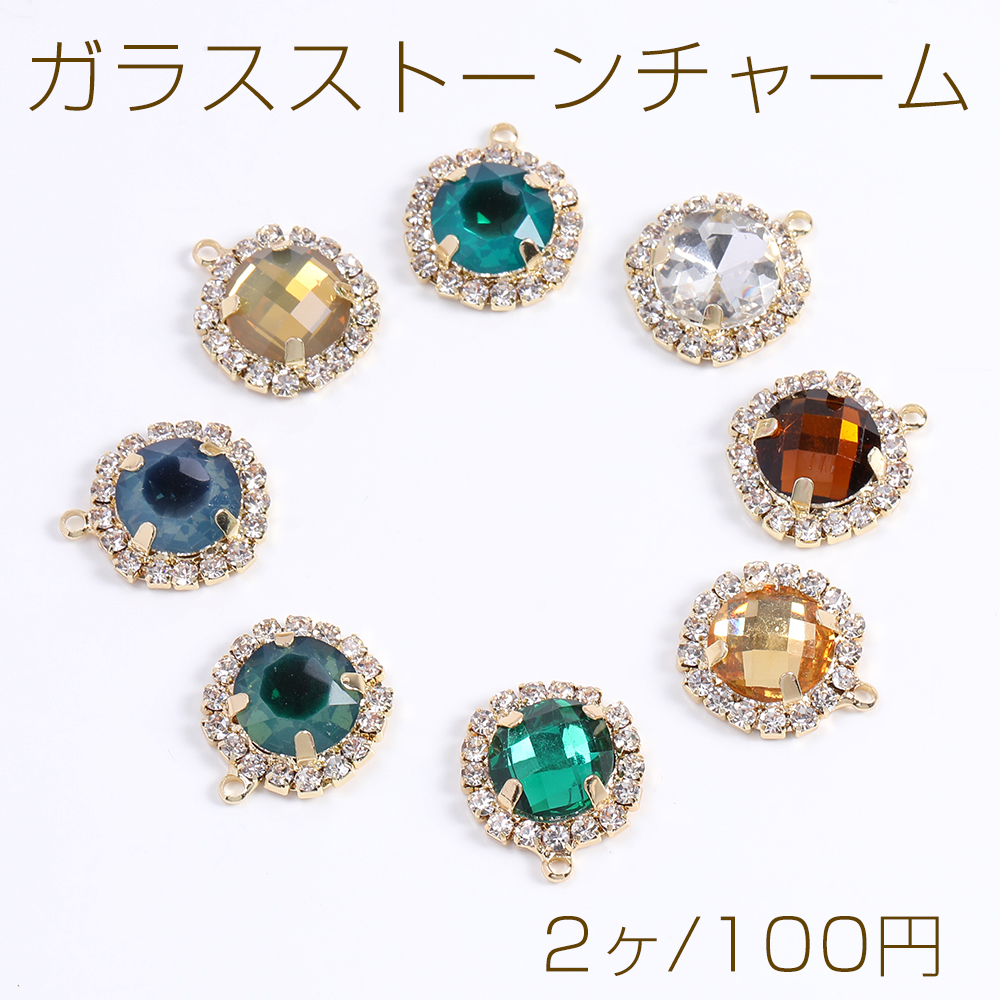 ガラスストーンチャーム ラウンド カン付き 14×16mm ゴールド(2ヶ)
