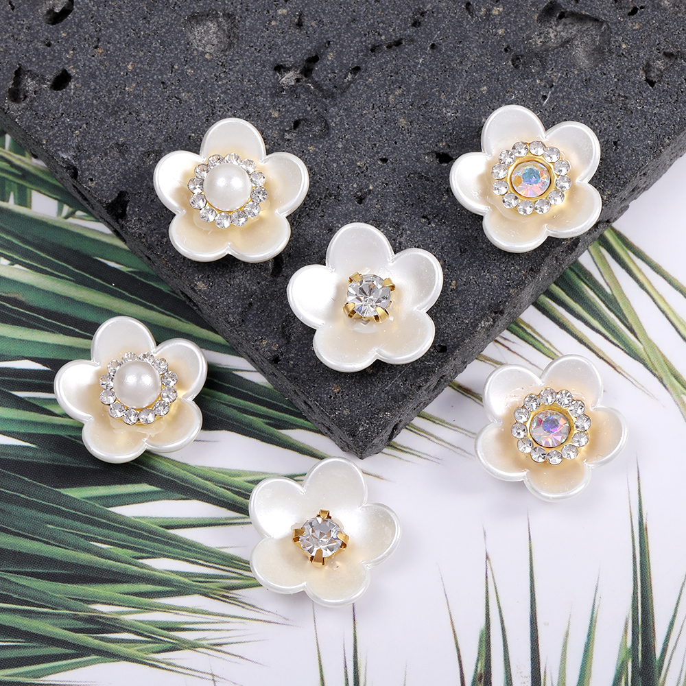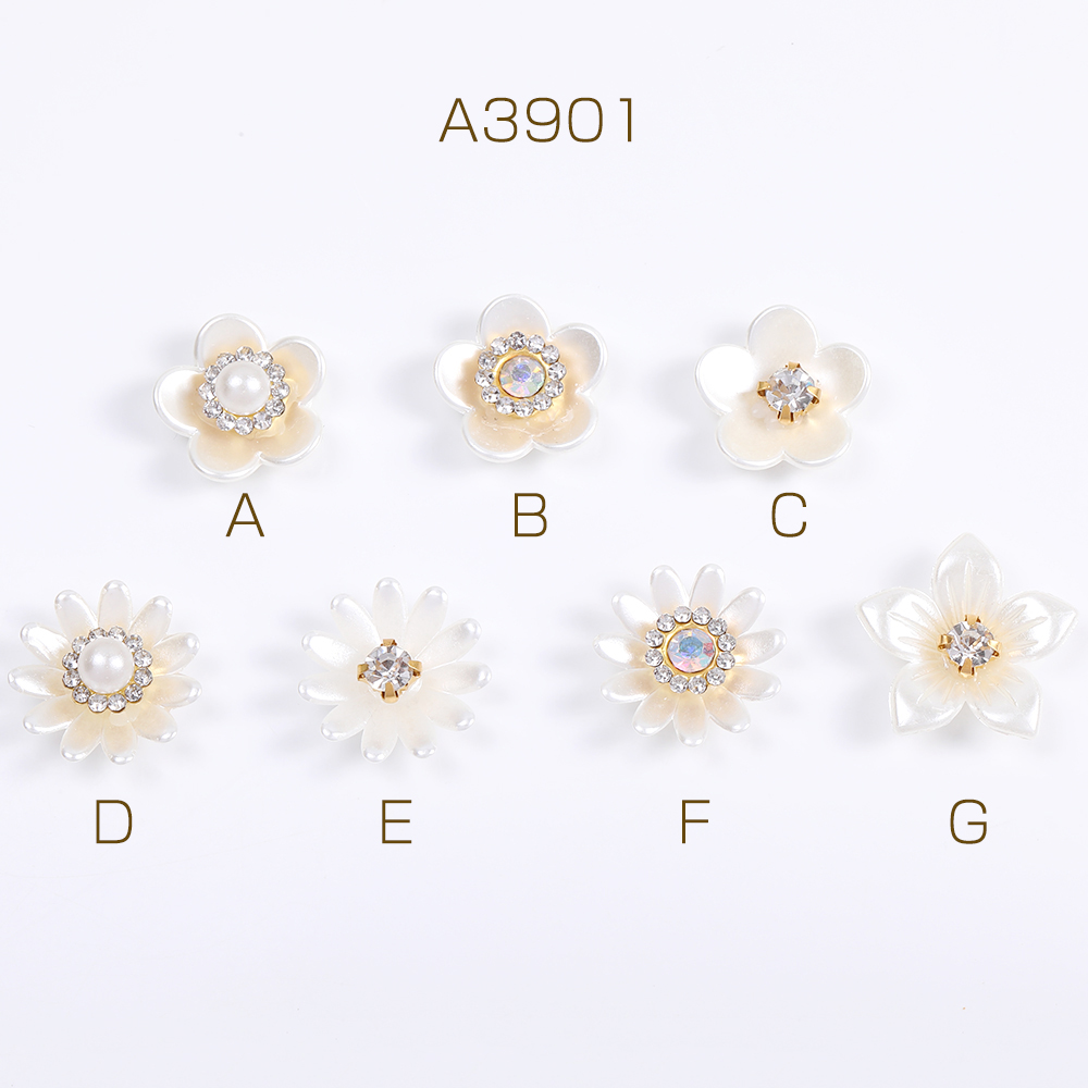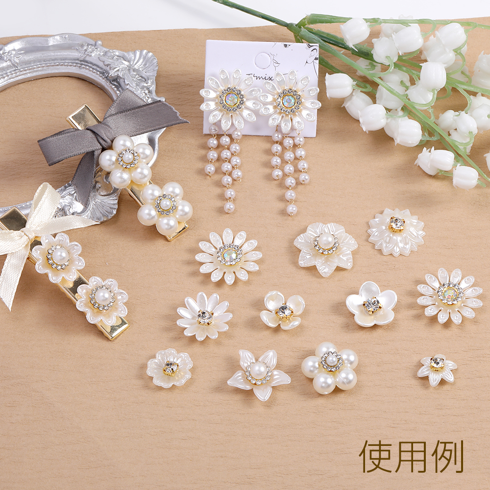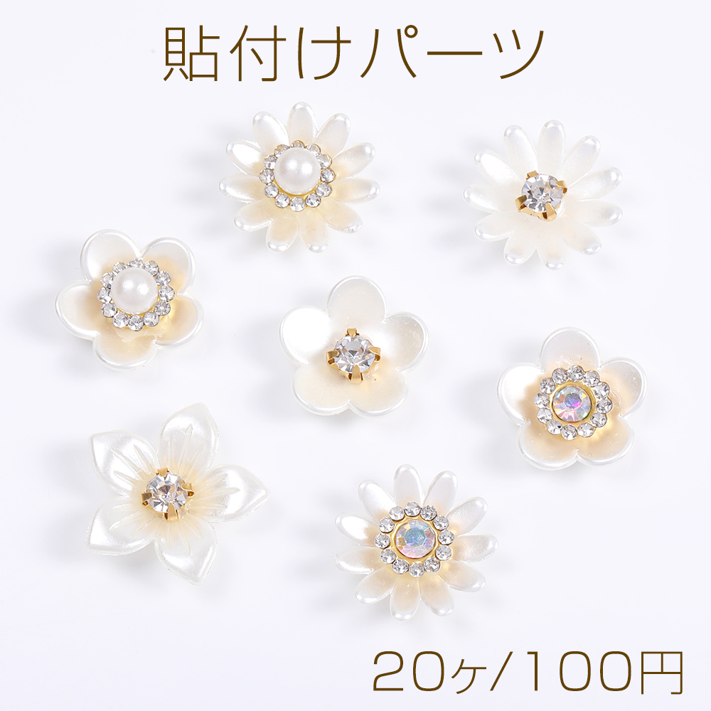 貼付けパーツ パール調貼付けパーツ パール調カボション ラインストーン付き フラワー
