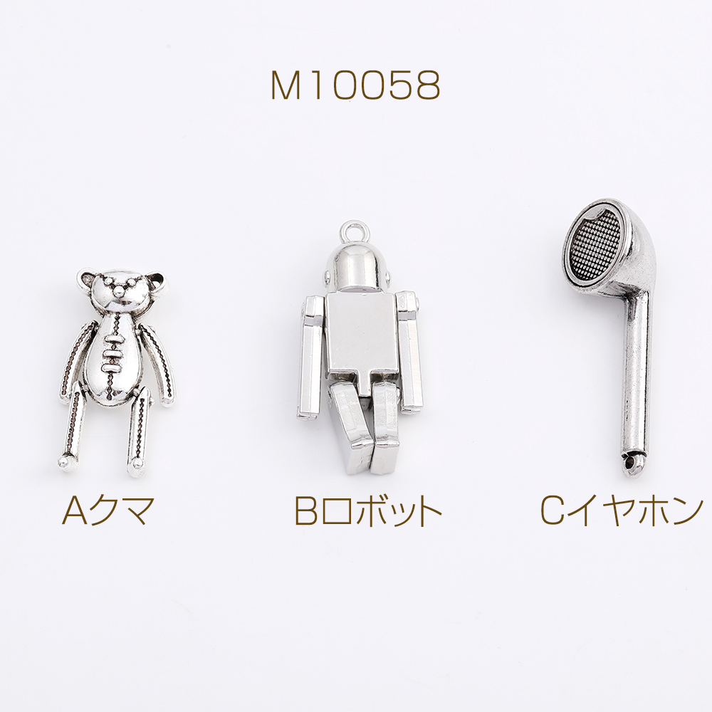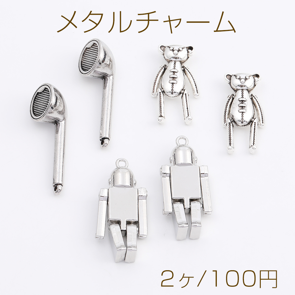 メタルチャーム クマ ロボット イヤホン アンティークシルバー(2ヶ)
