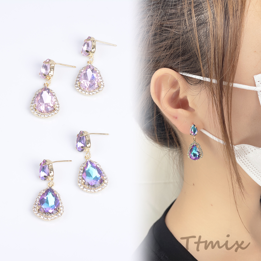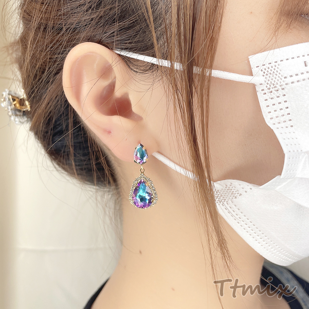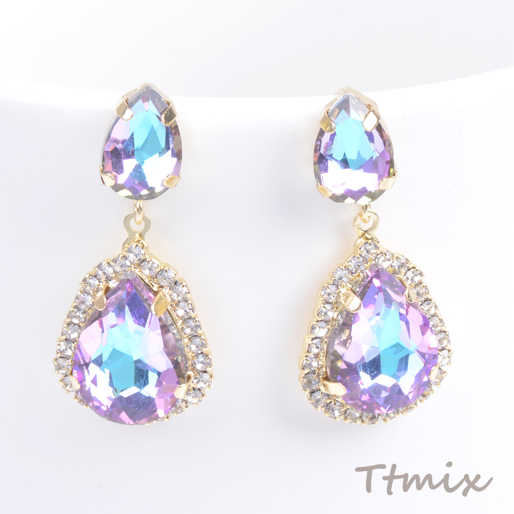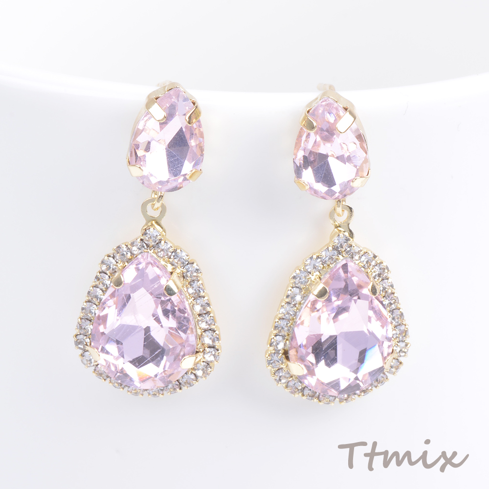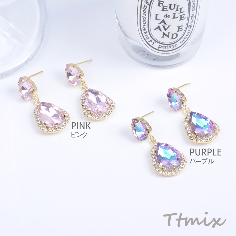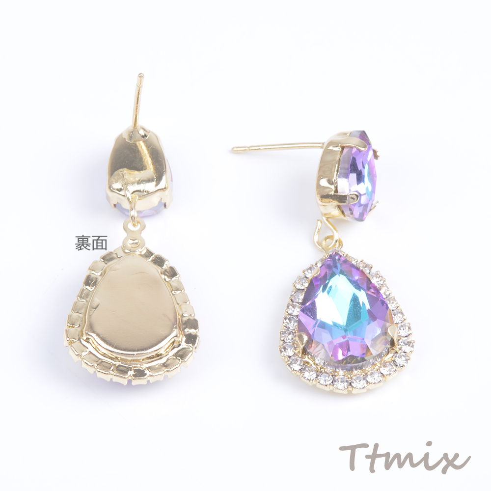 デザインピアス ガラスラインストーン付き しずく型 14×32mm ゴールド(1ペア)
