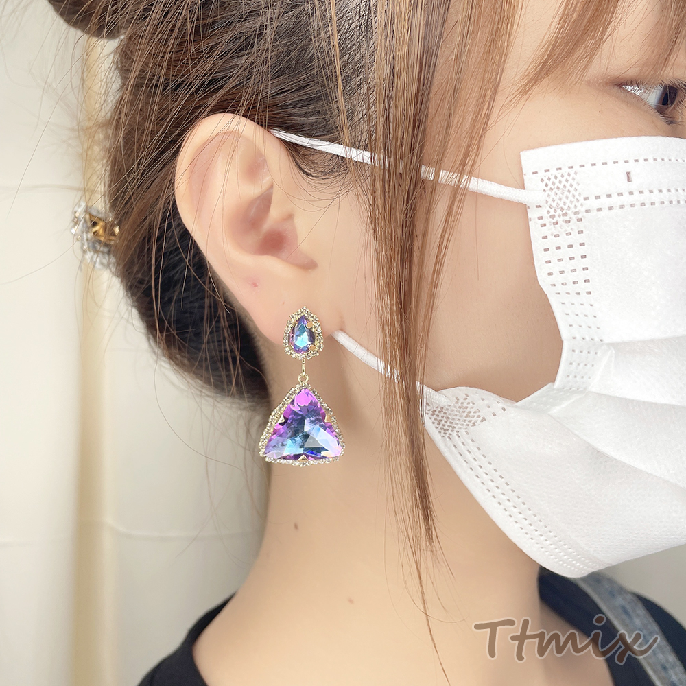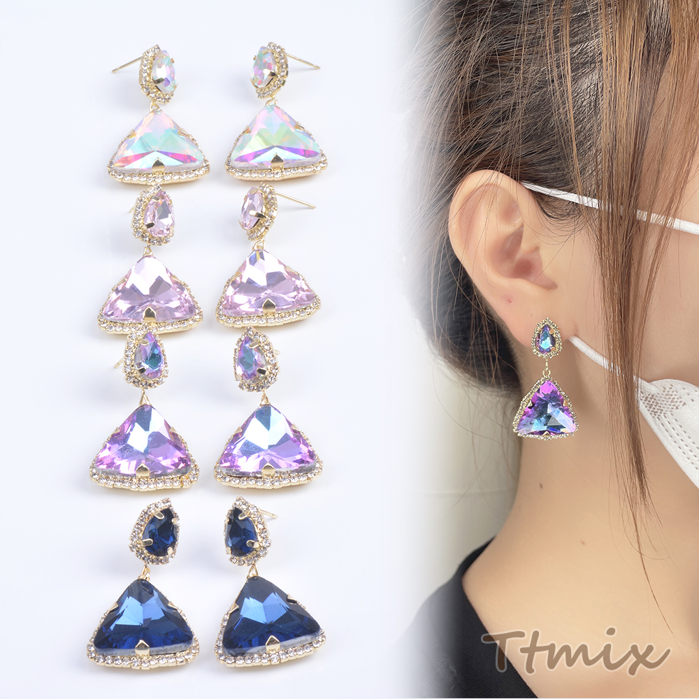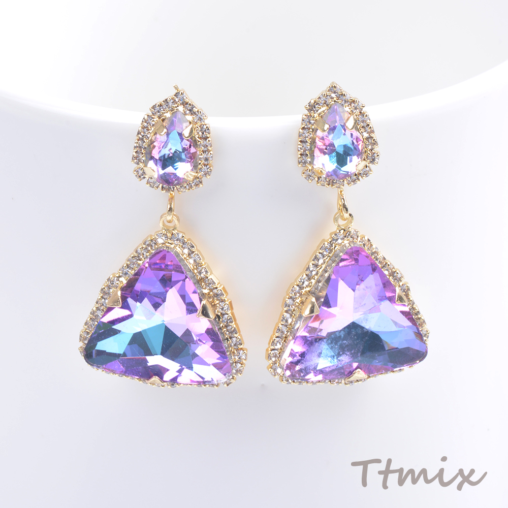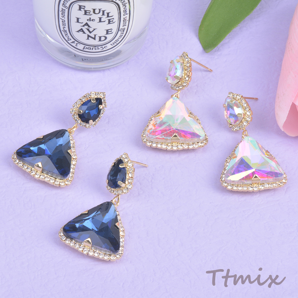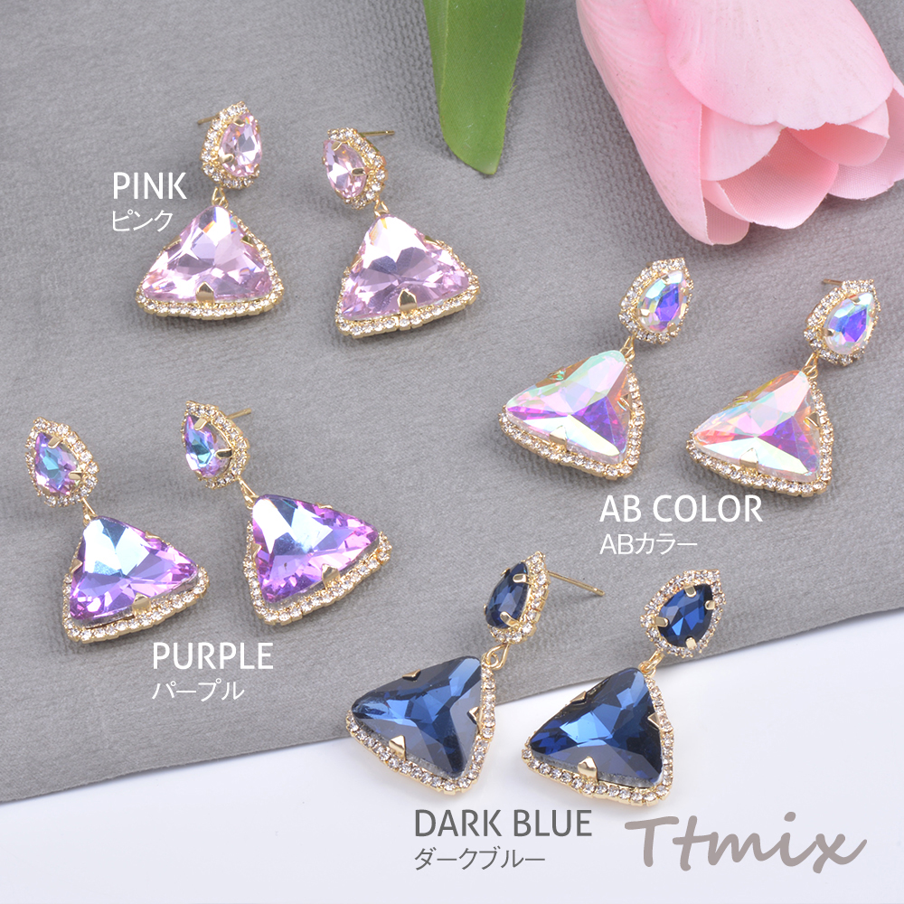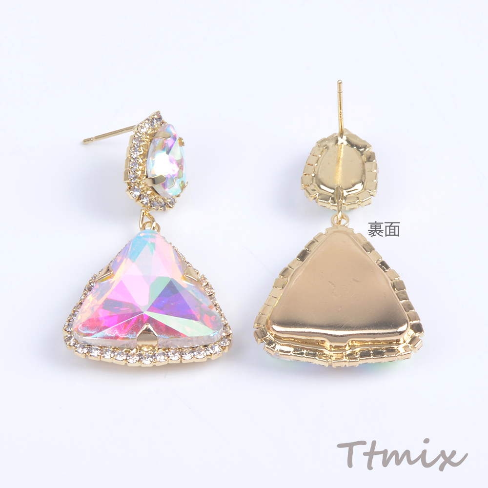 デザインピアス ガラスラインストーン付き 三角形 22×40mm ゴールド(1ペア)