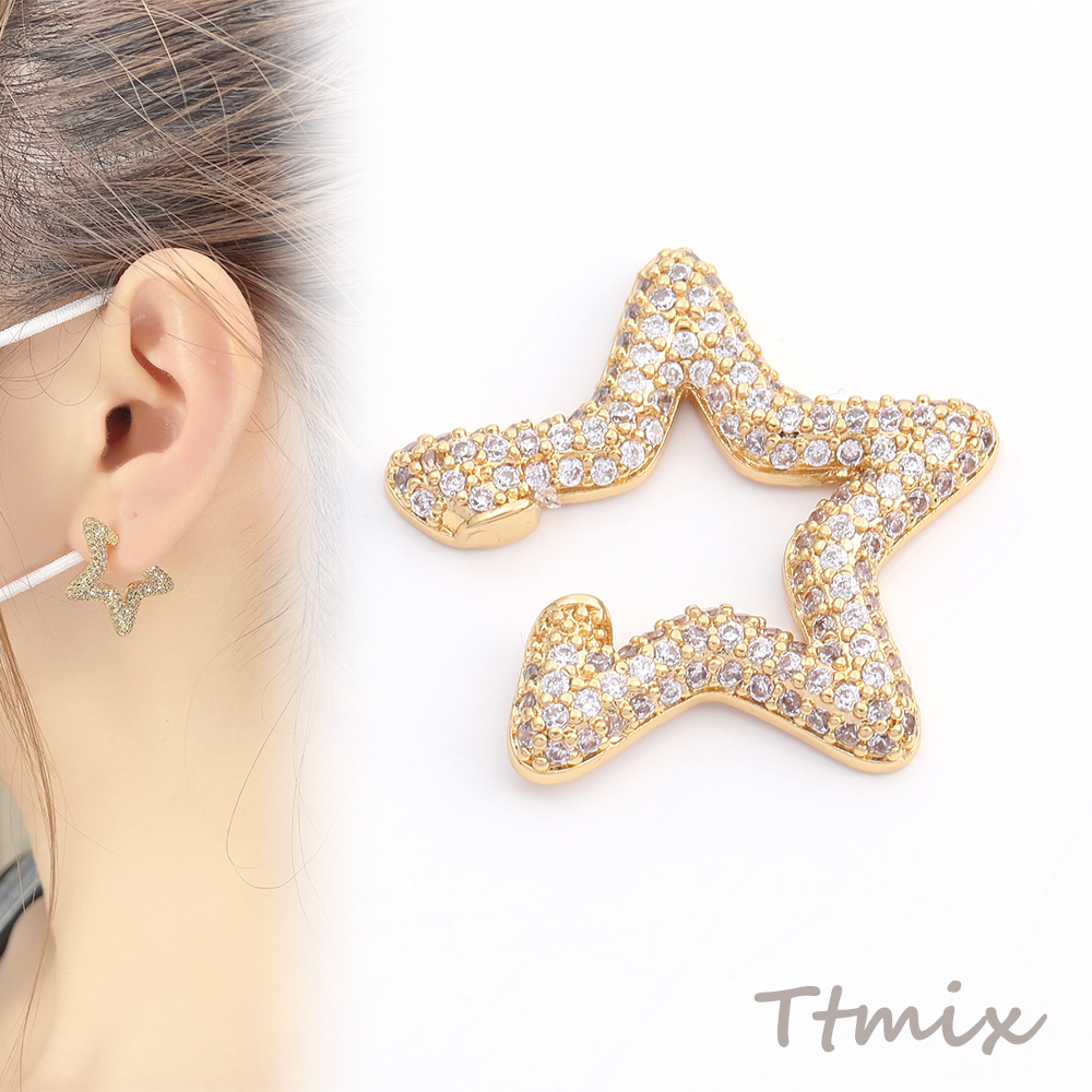 高品質ジルコニアイヤーカフ 星形 23×23mm 片耳用 ゴールド(1ヶ)