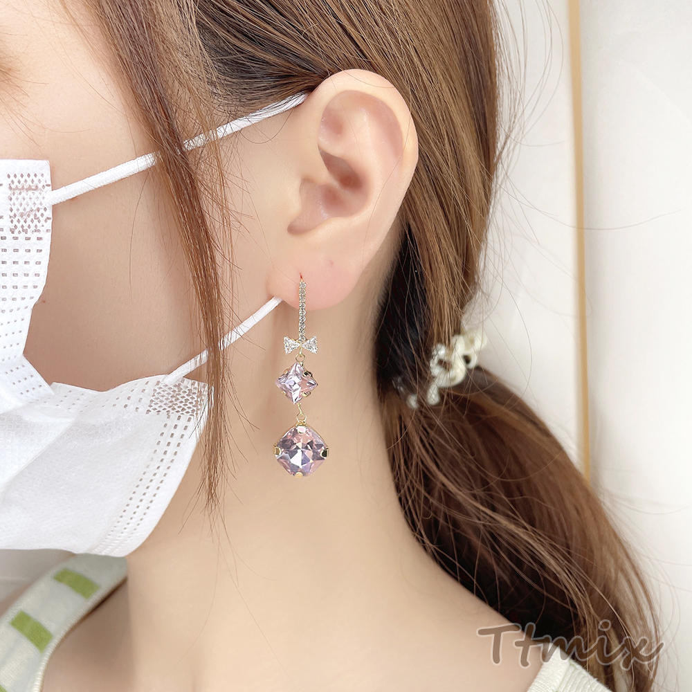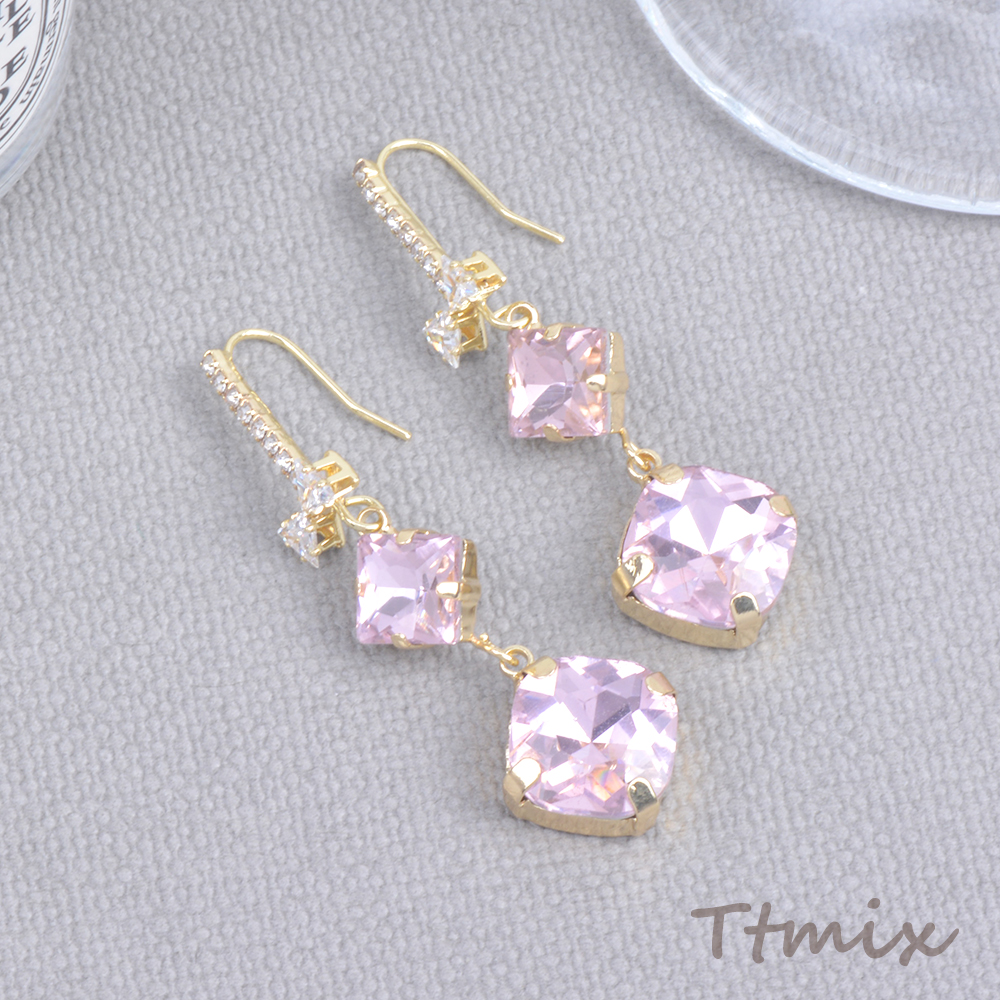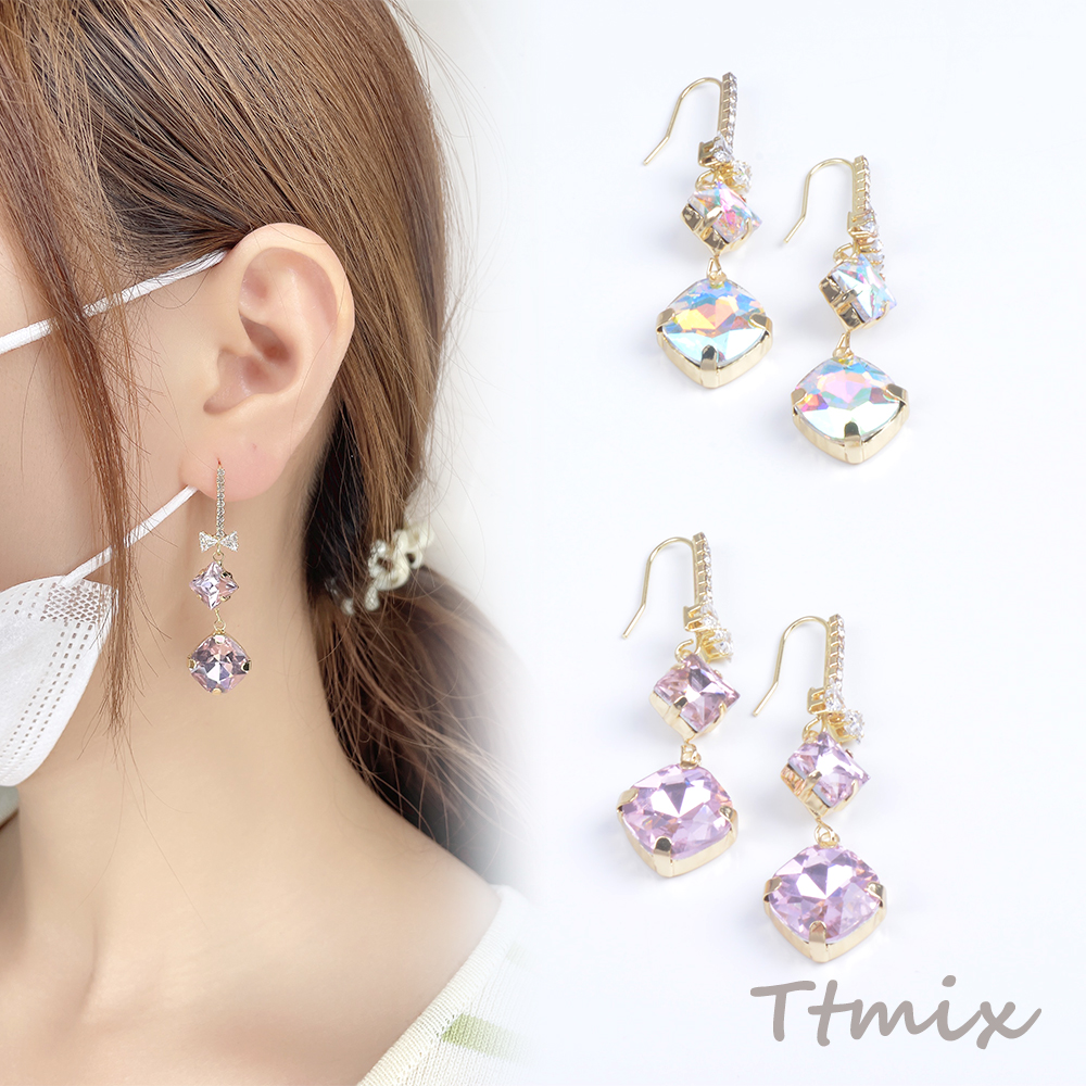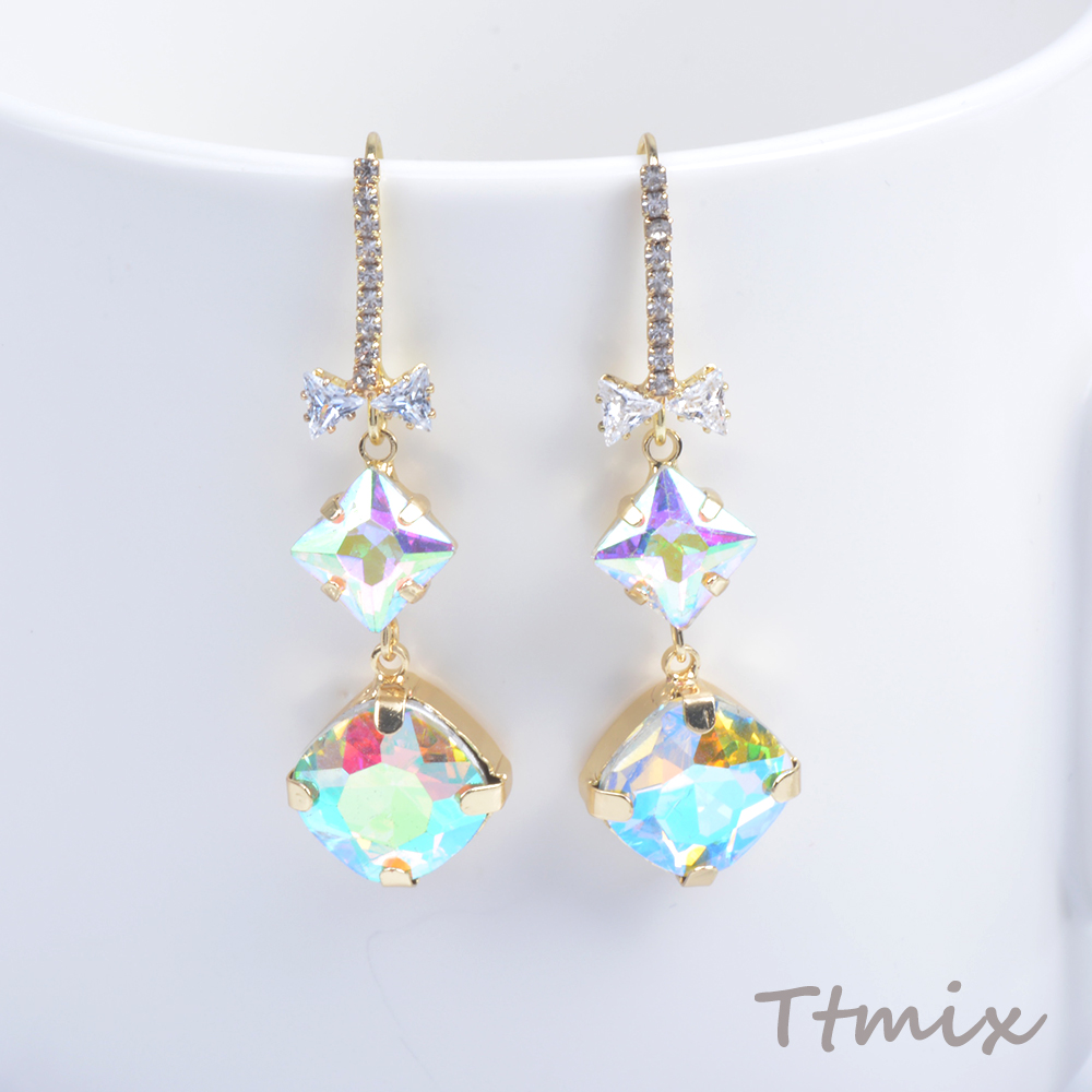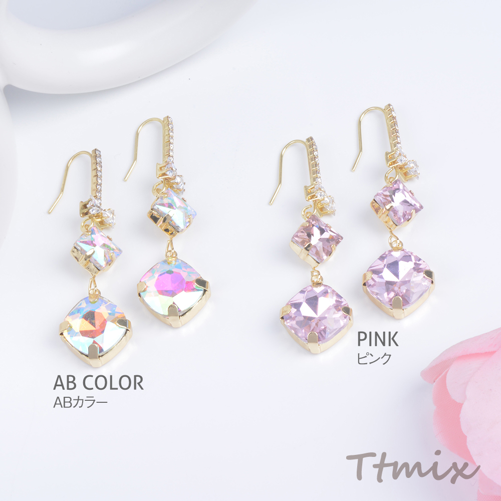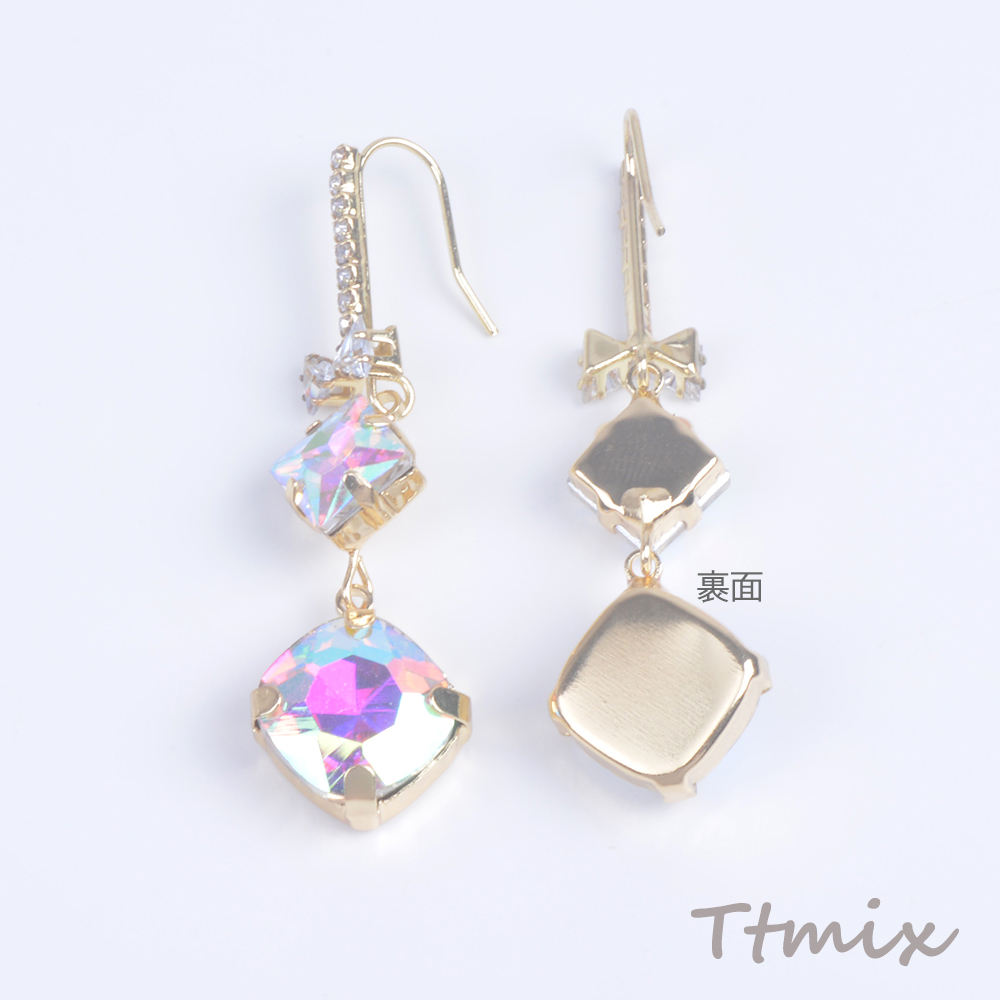 フックピアス ガラスラインストーン付き ひし形 15×52mm ゴールド(1ペア)