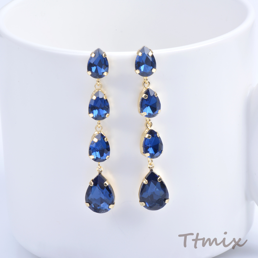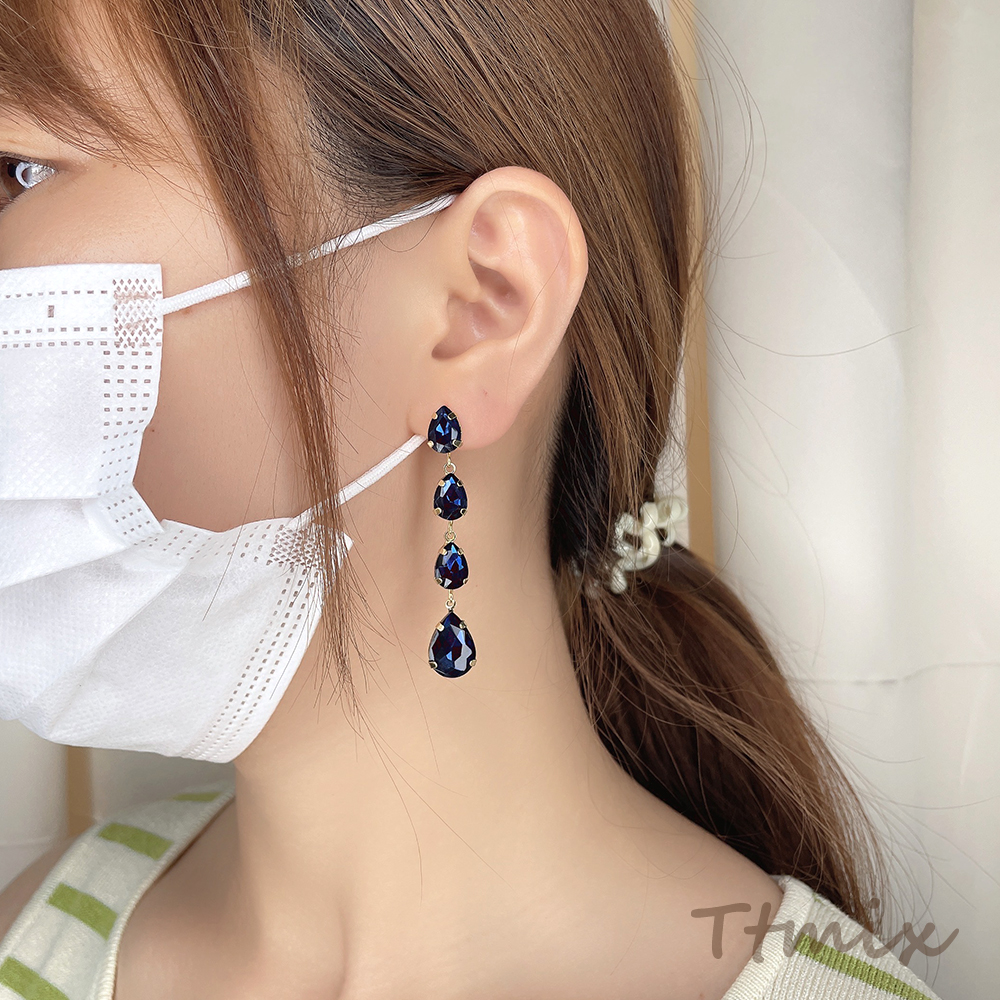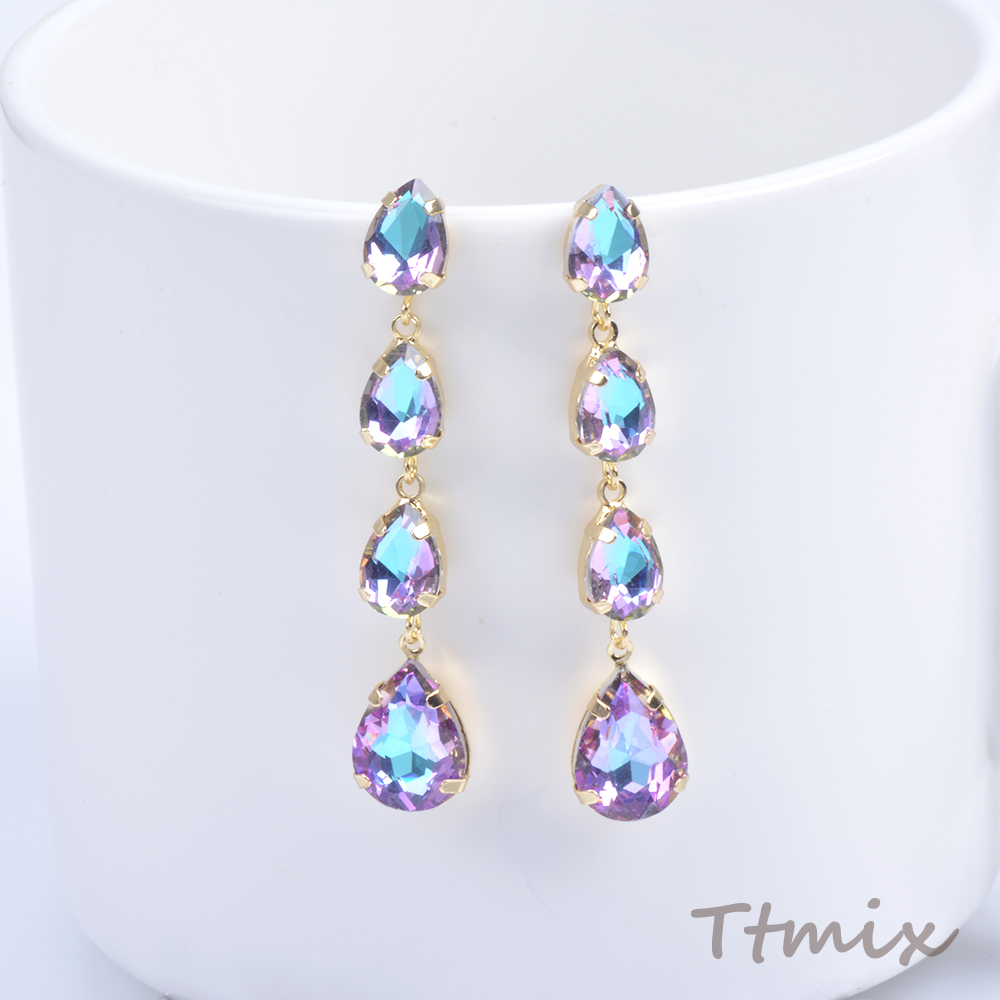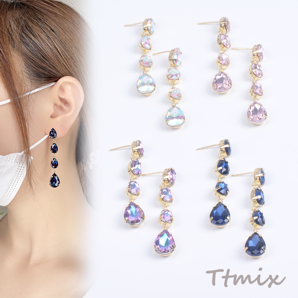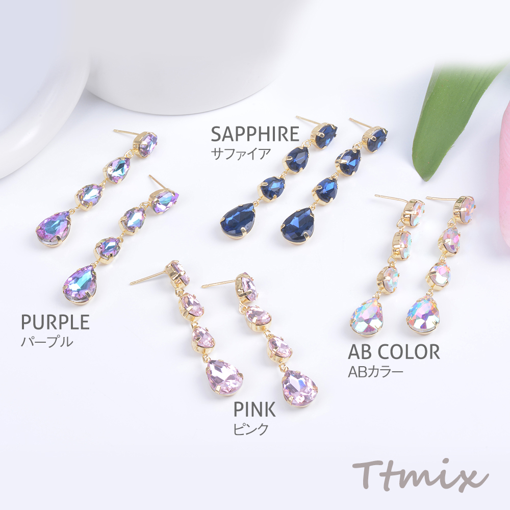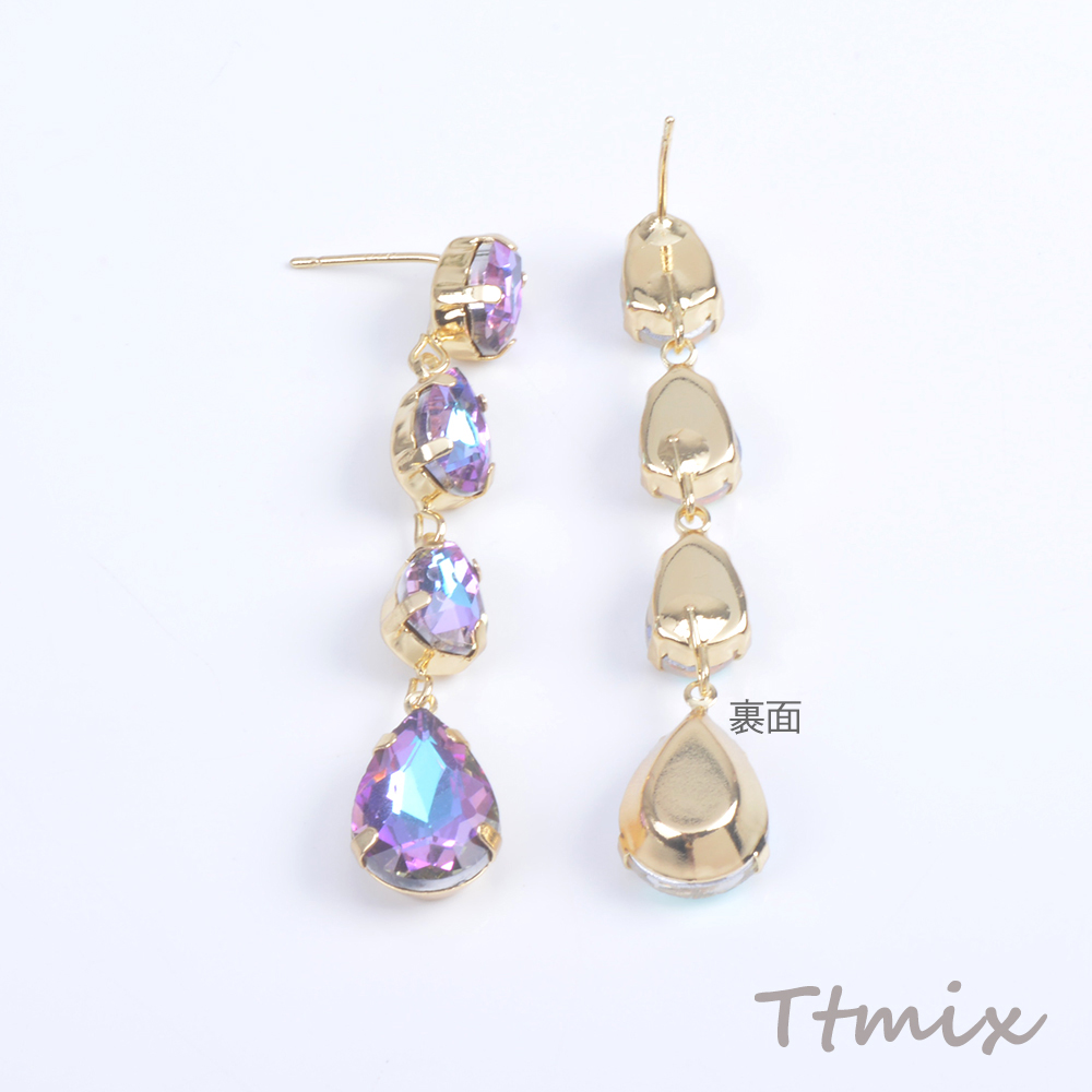 デザインピアス ガラスラインストーン付き しずく型 10×56mm ゴールド(1ペア)