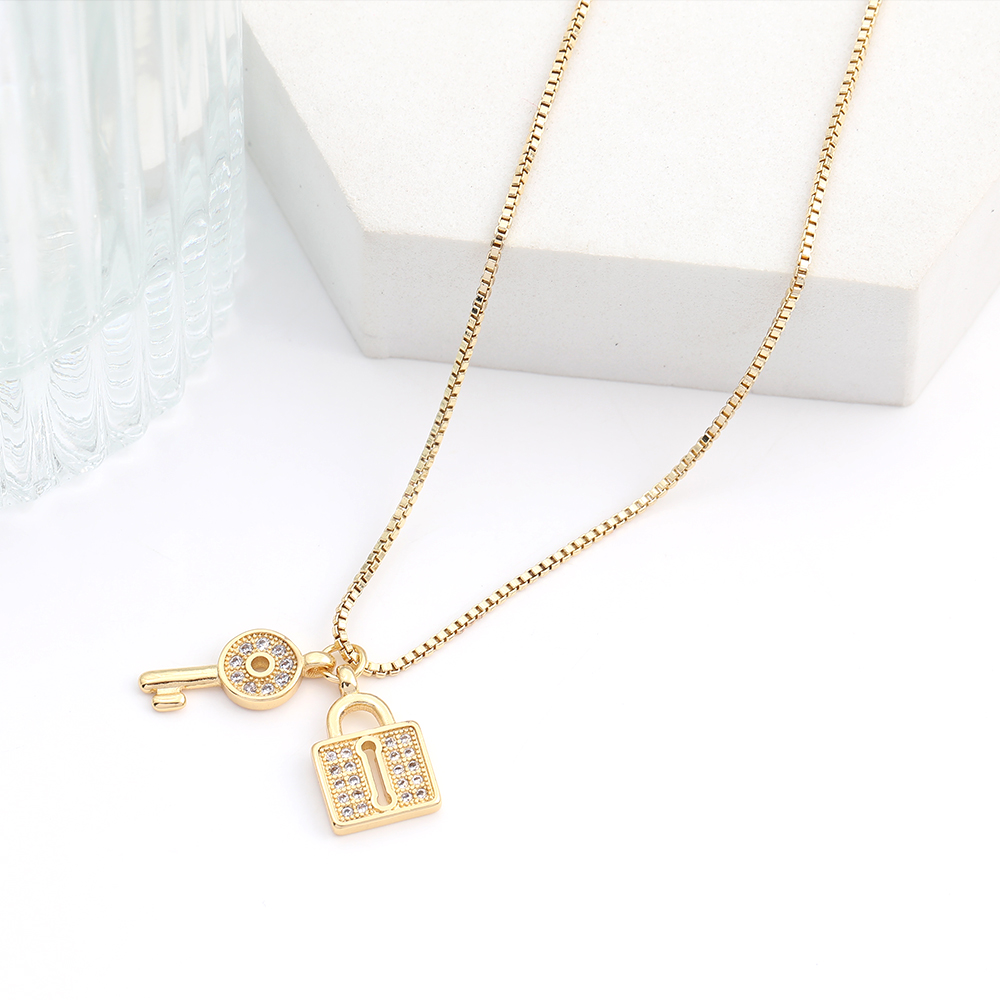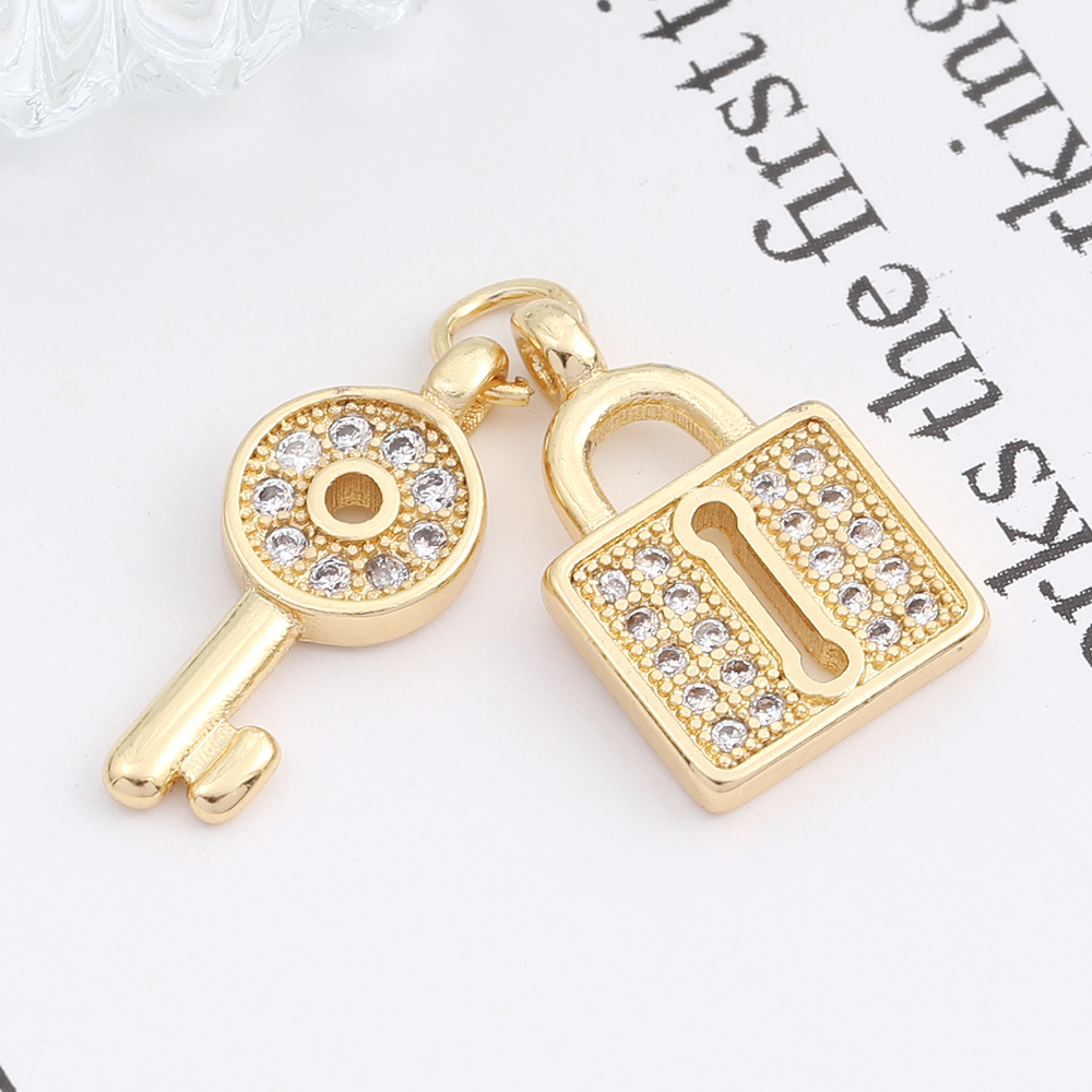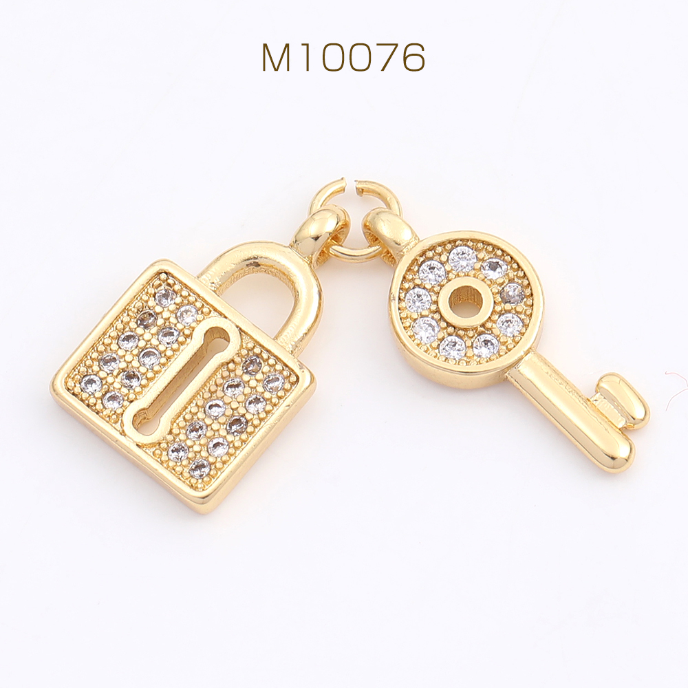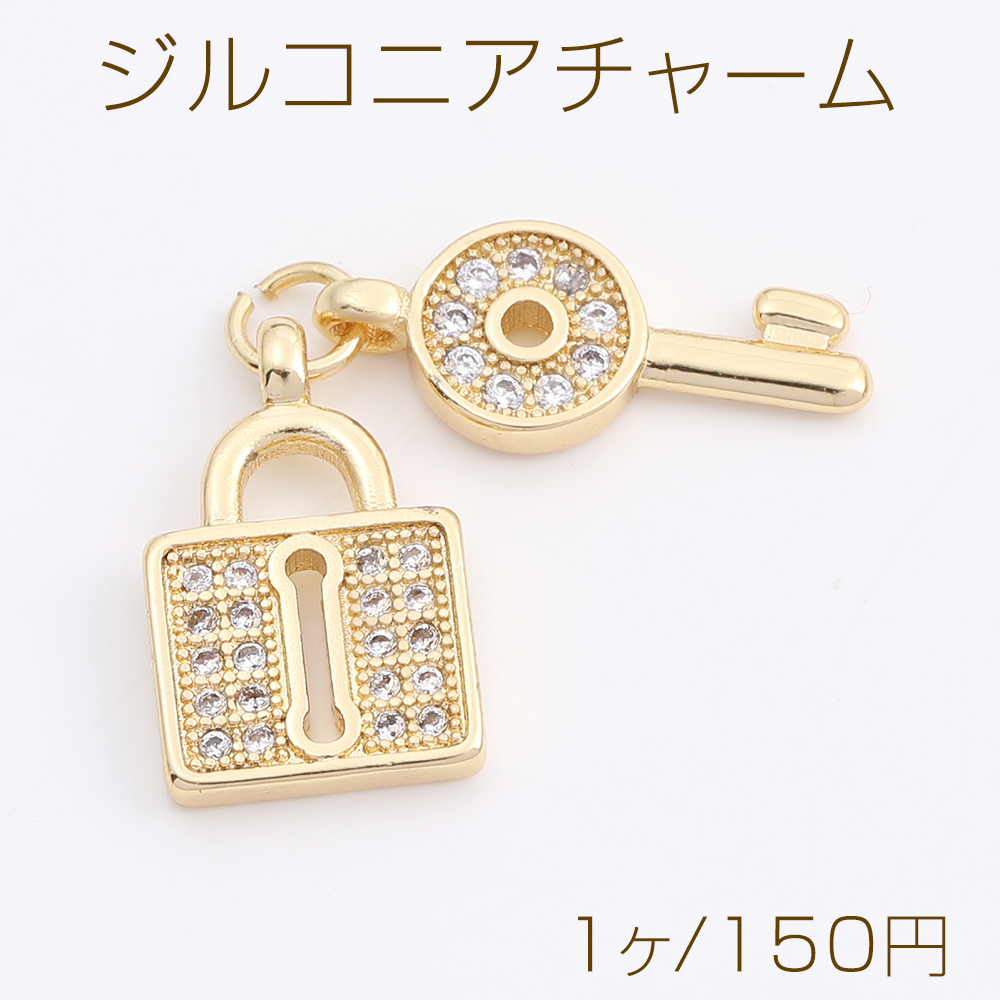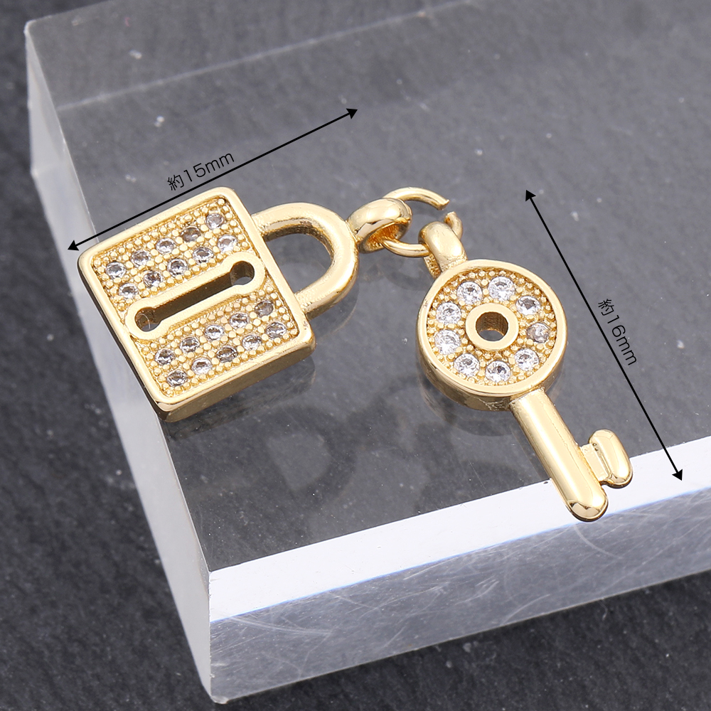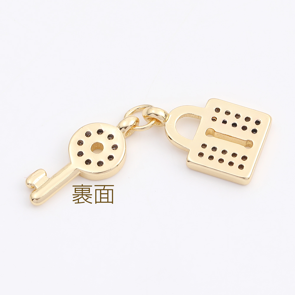 高品質ジルコニアチャーム キー&ロック ゴールド(1ヶ)