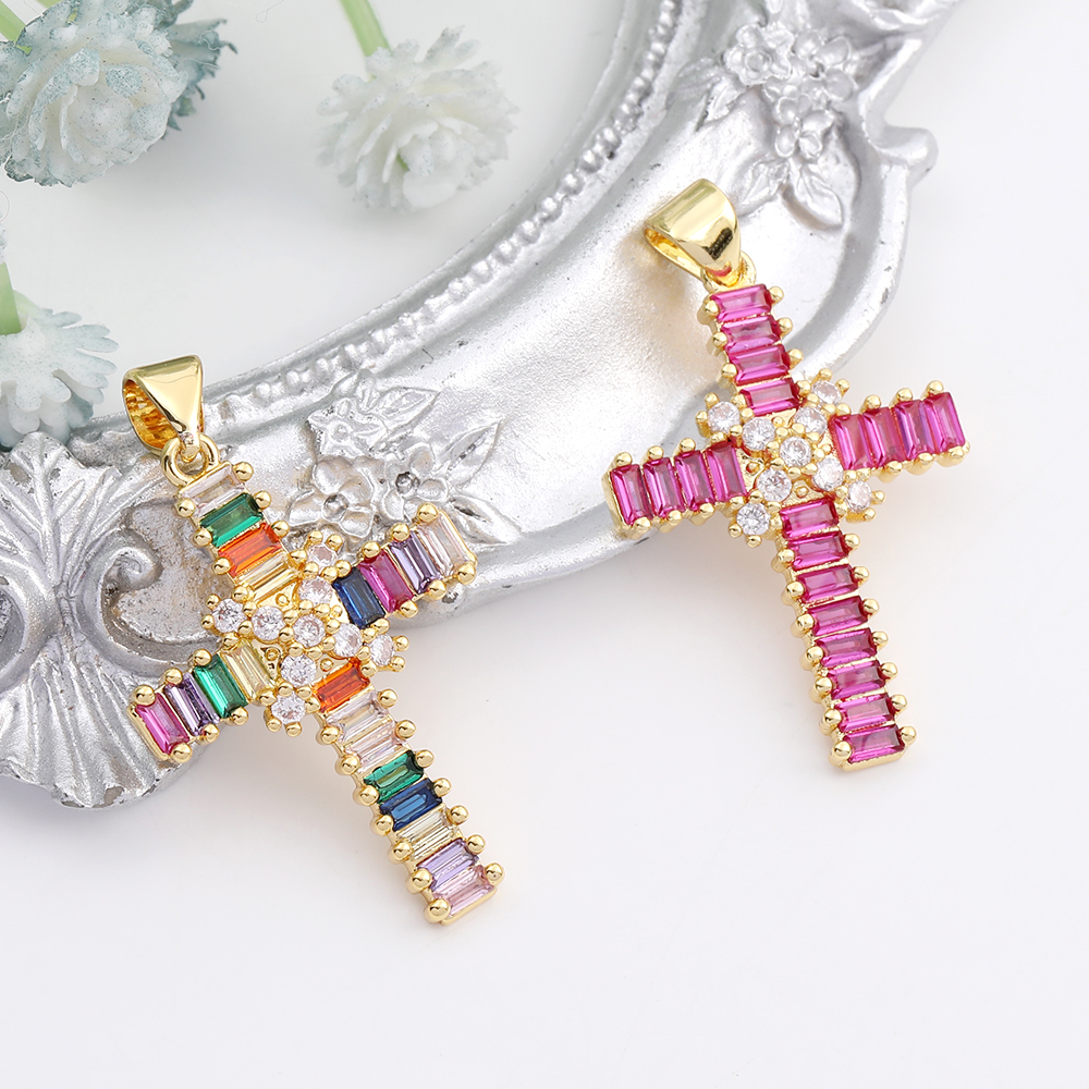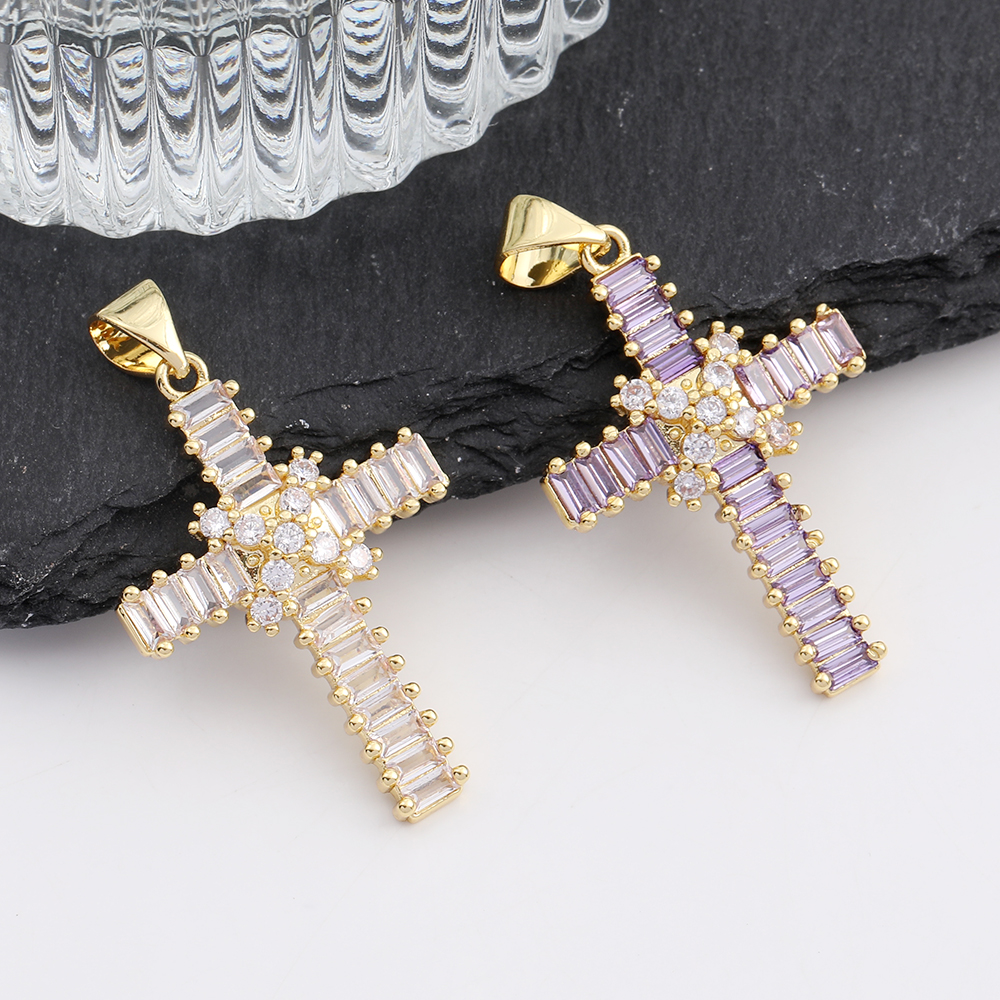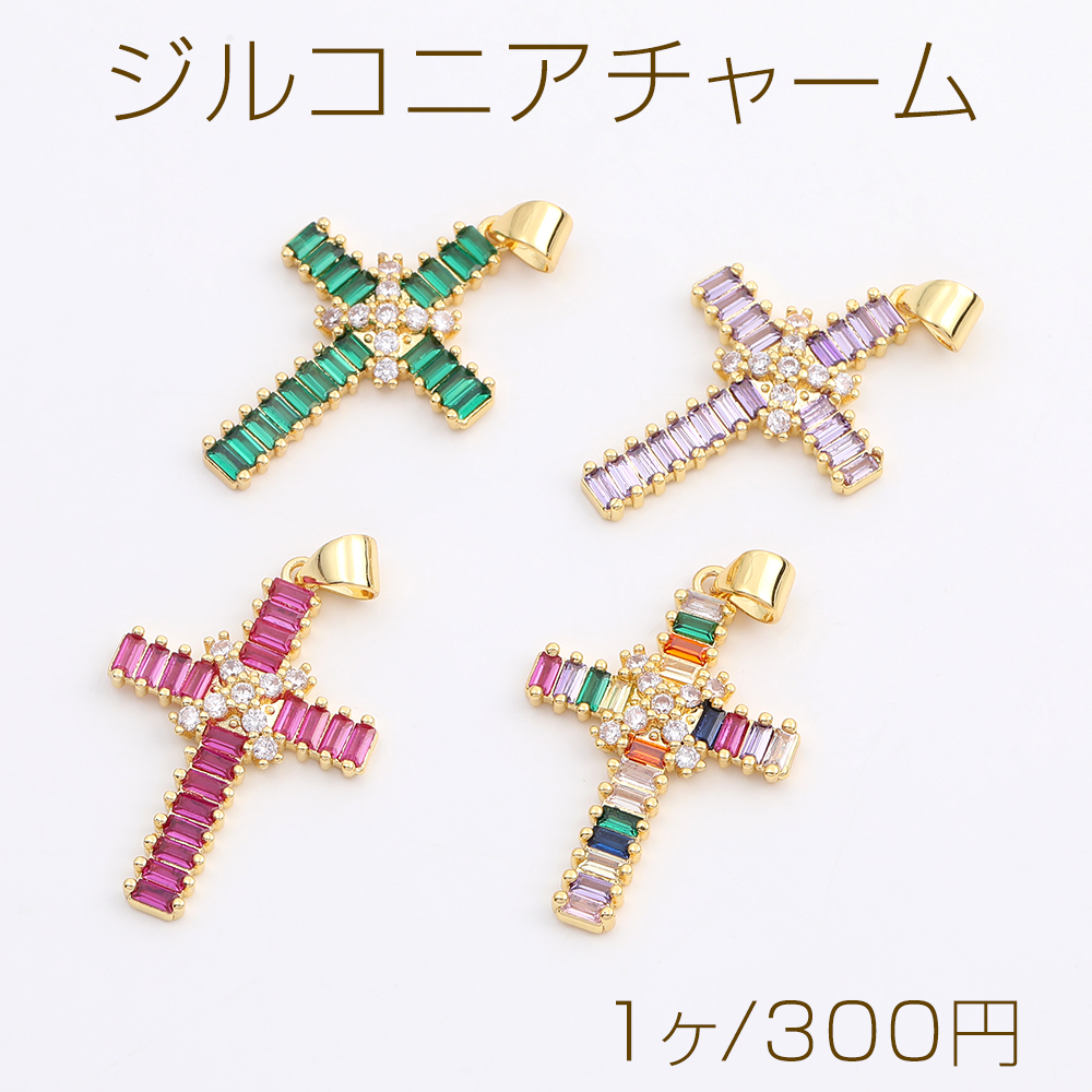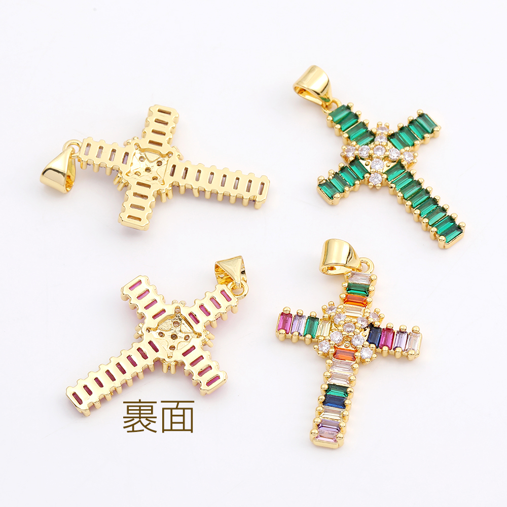 高品質ジルコニアチャーム 十字架 19×28mm ゴールド(1ヶ)