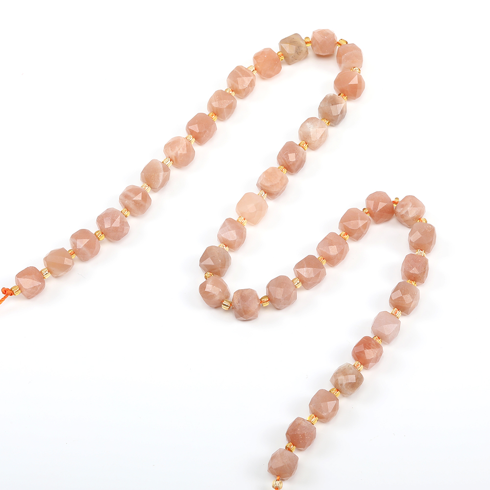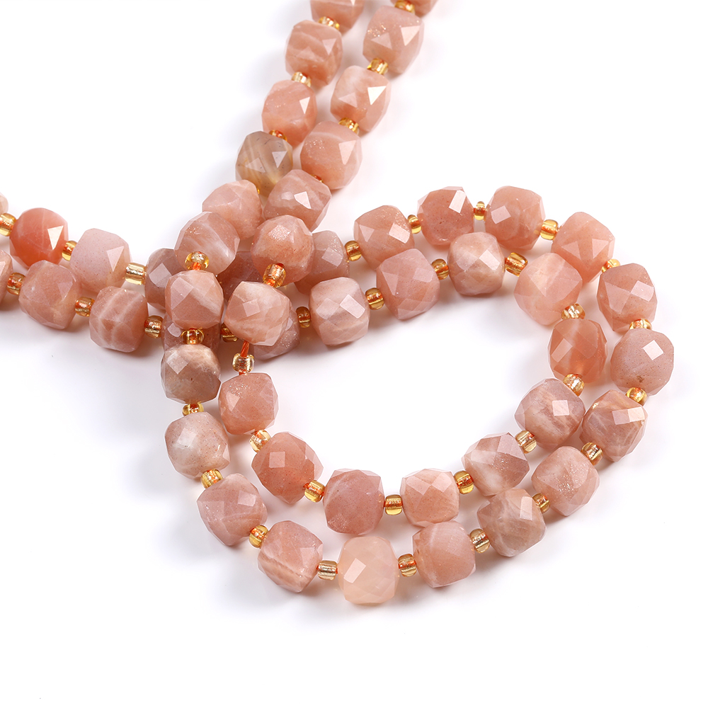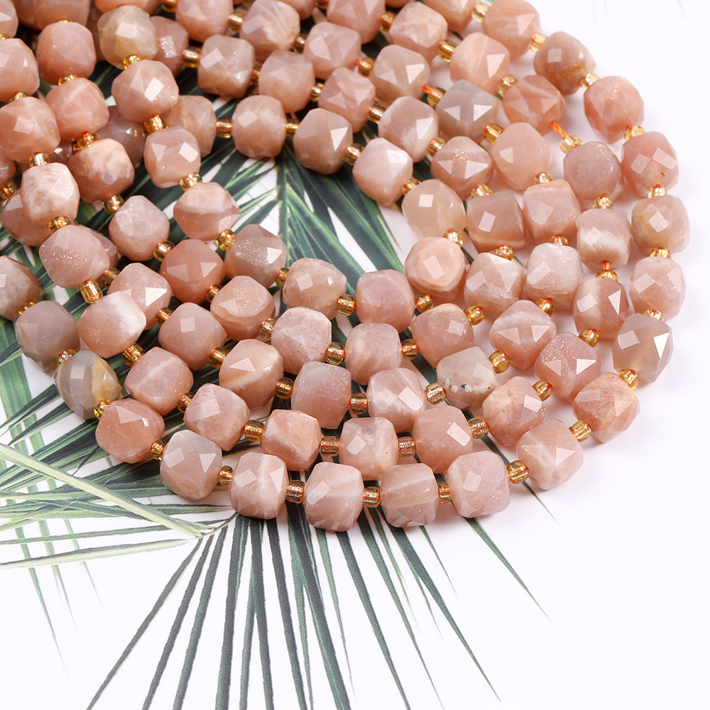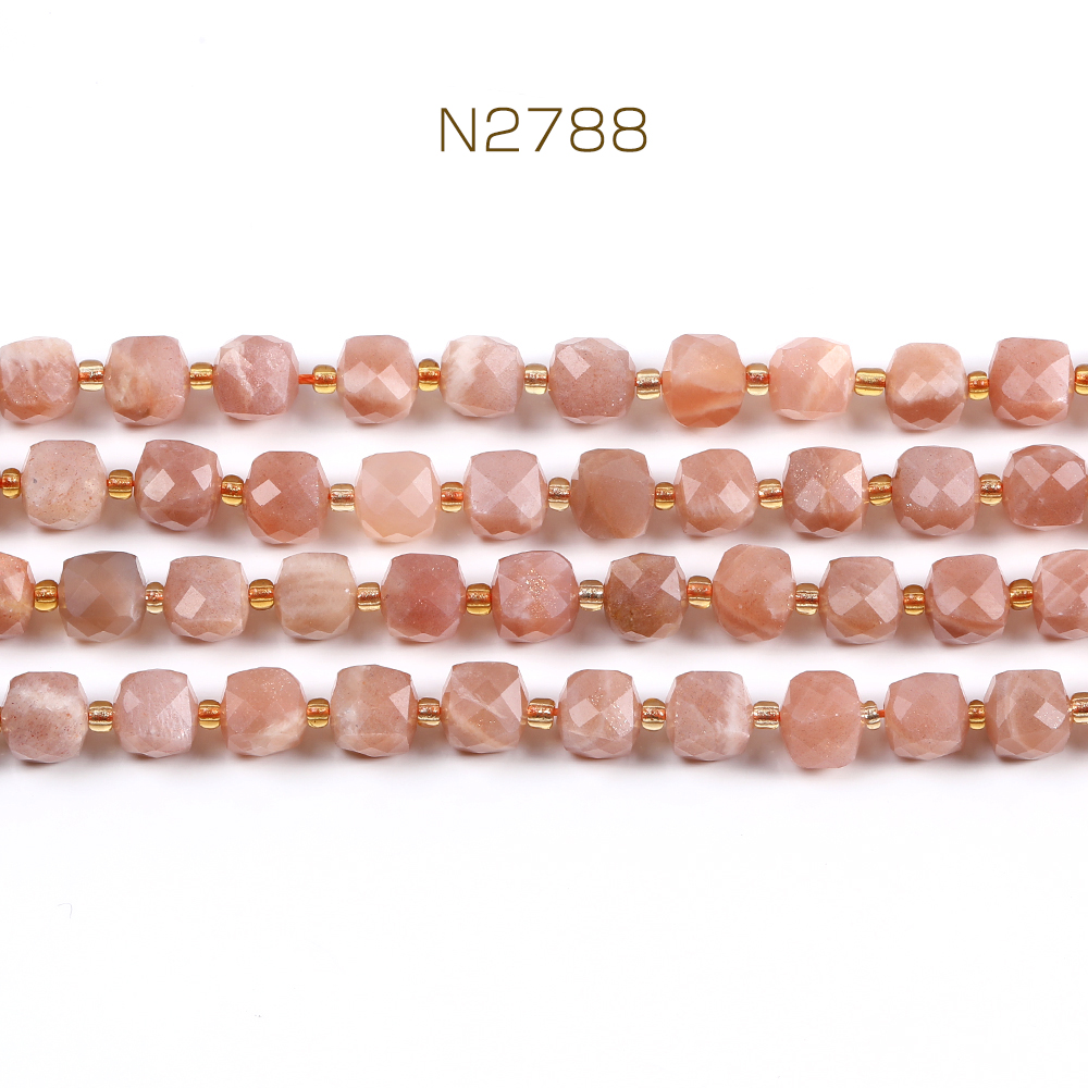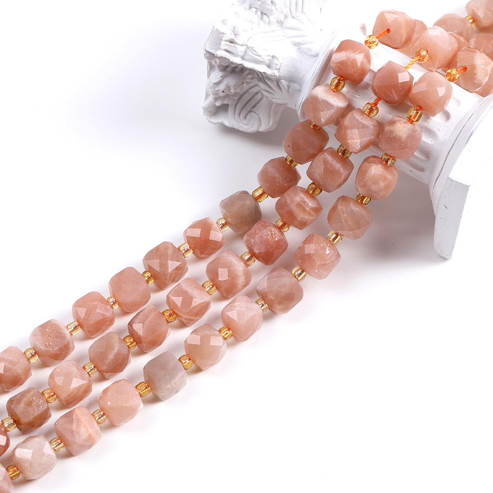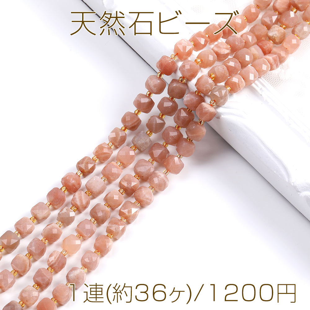 天然石ビーズ サンストーン キューブ多面カット 8×8mm 1連(約36ヶ)