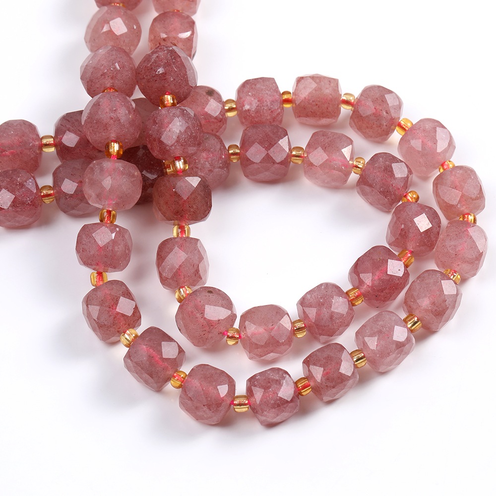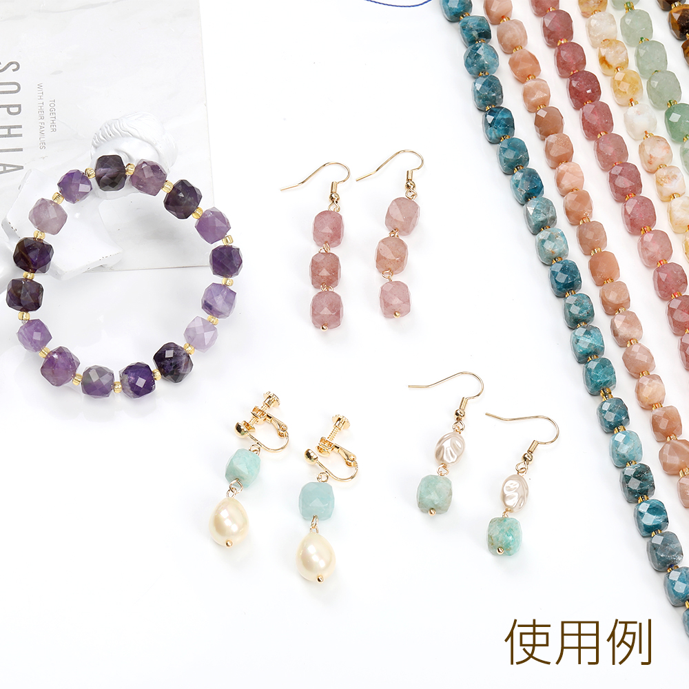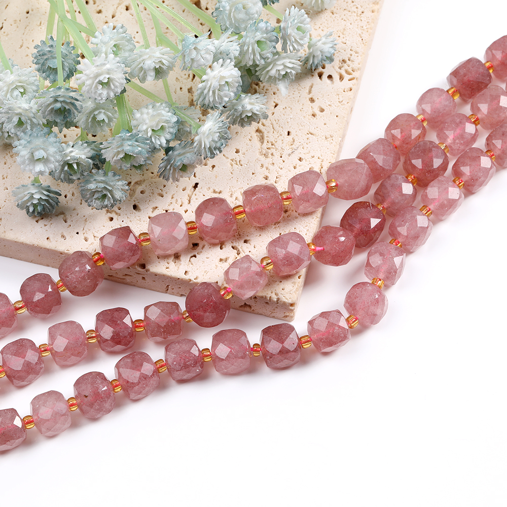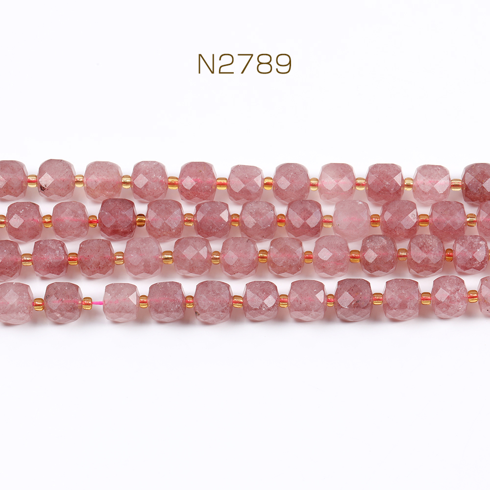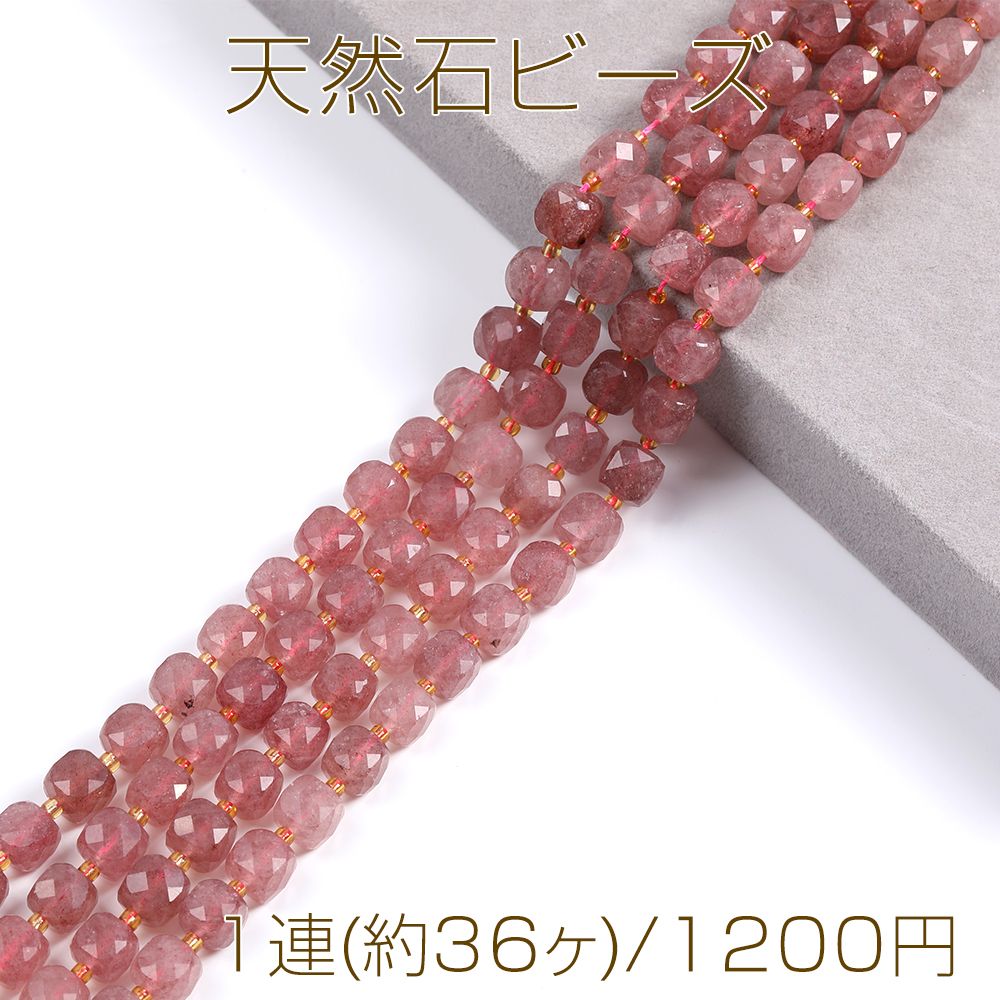 天然石ビーズ ストロベリークォーツ キューブ多面カット 8×8mm 1連(約36ヶ)