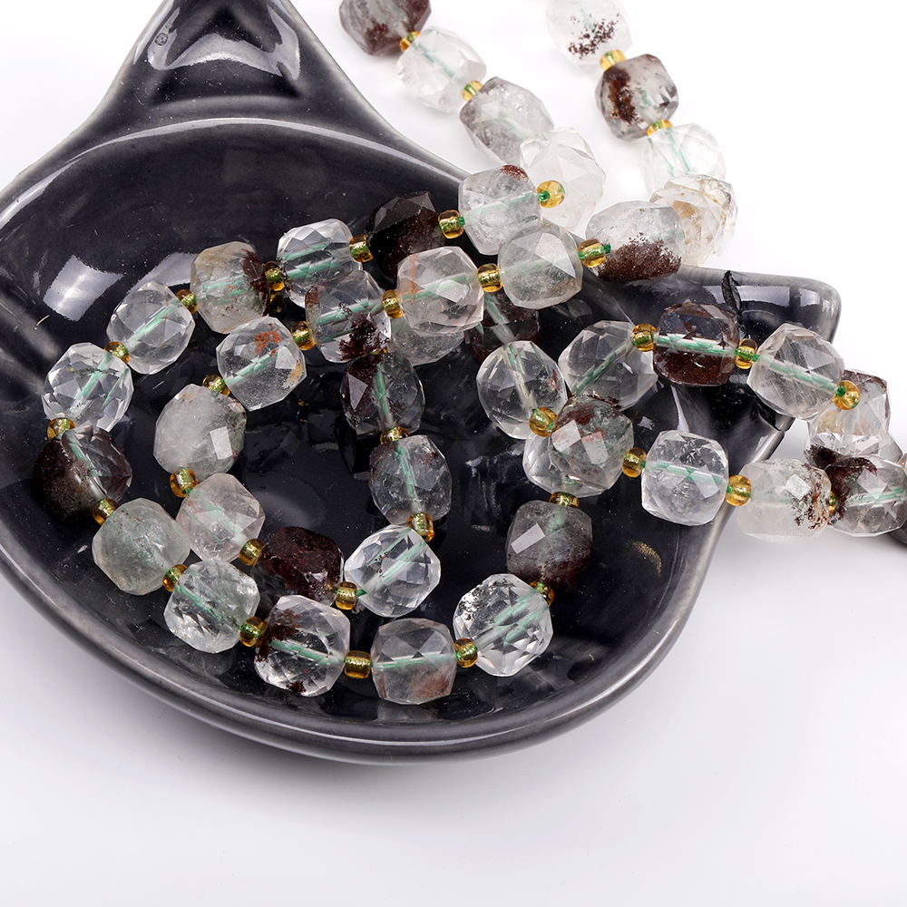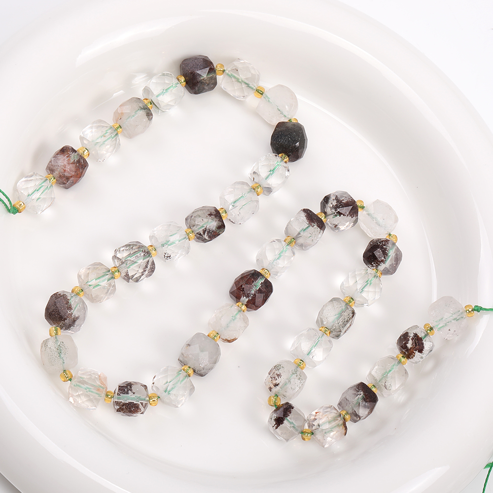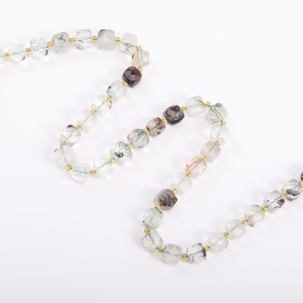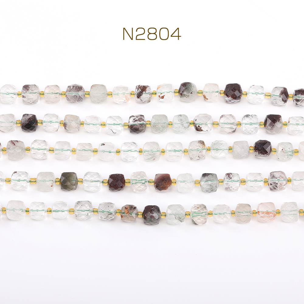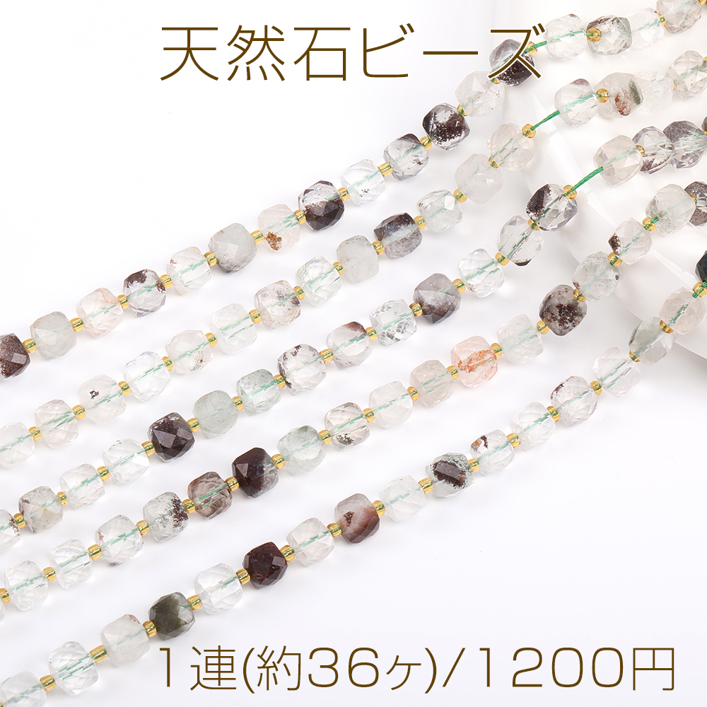 天然石ビーズ グリーンファントムクリスタル キューブ多面カット 8×8mm 1連(約36ヶ)