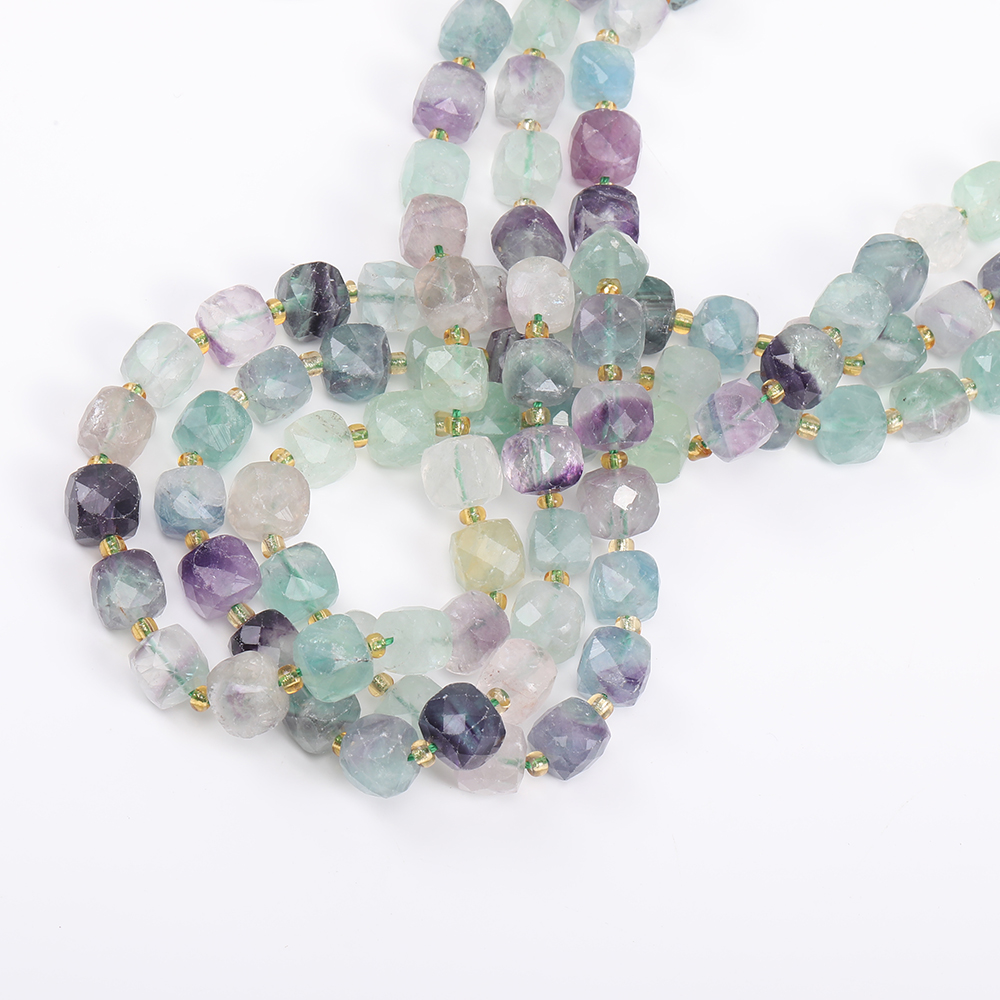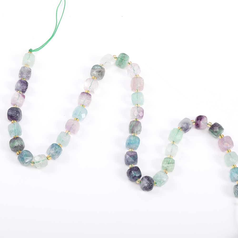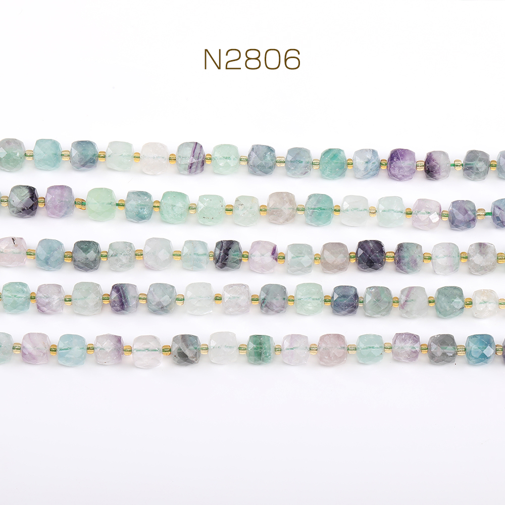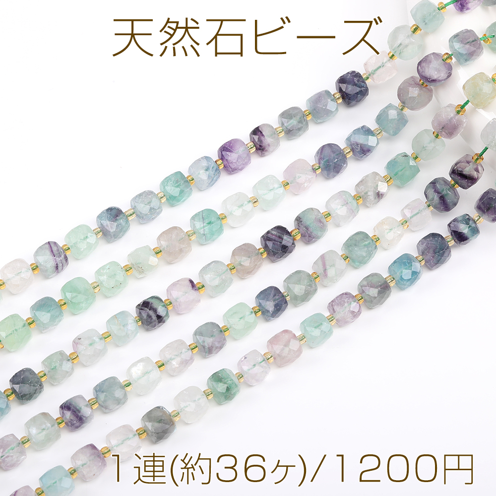天然石ビーズ フローライト キューブ多面カット 8×8mm 1連(約36ヶ)