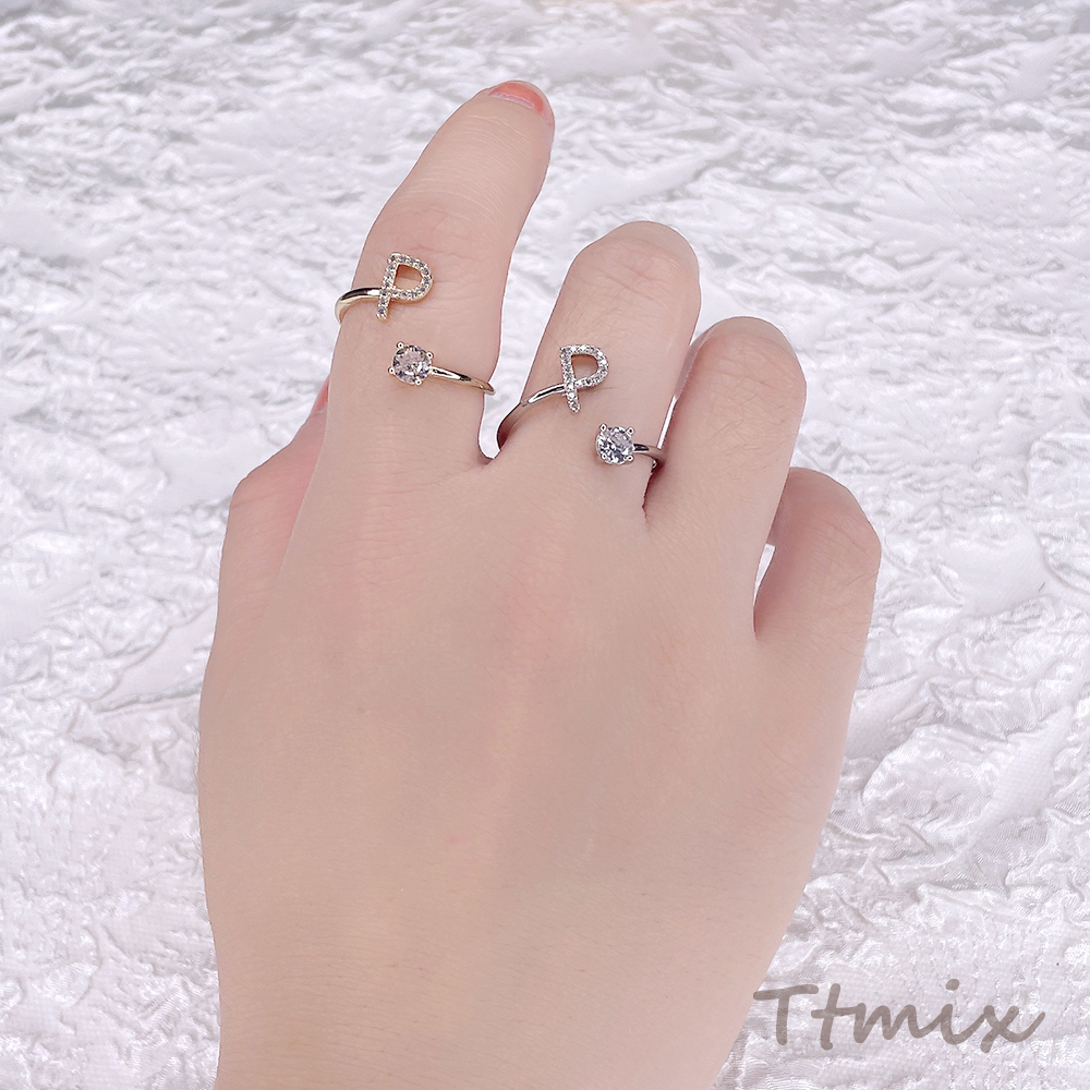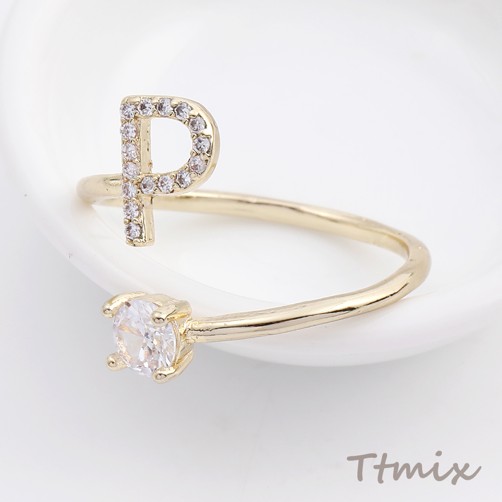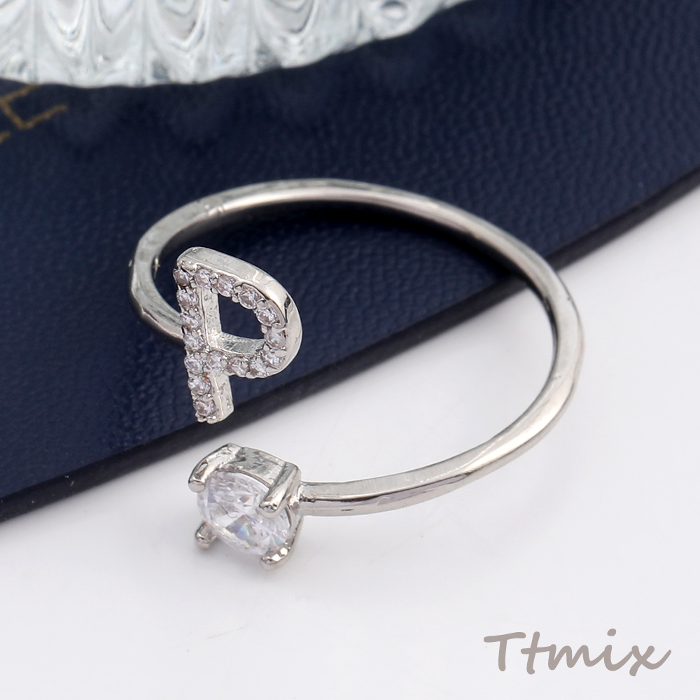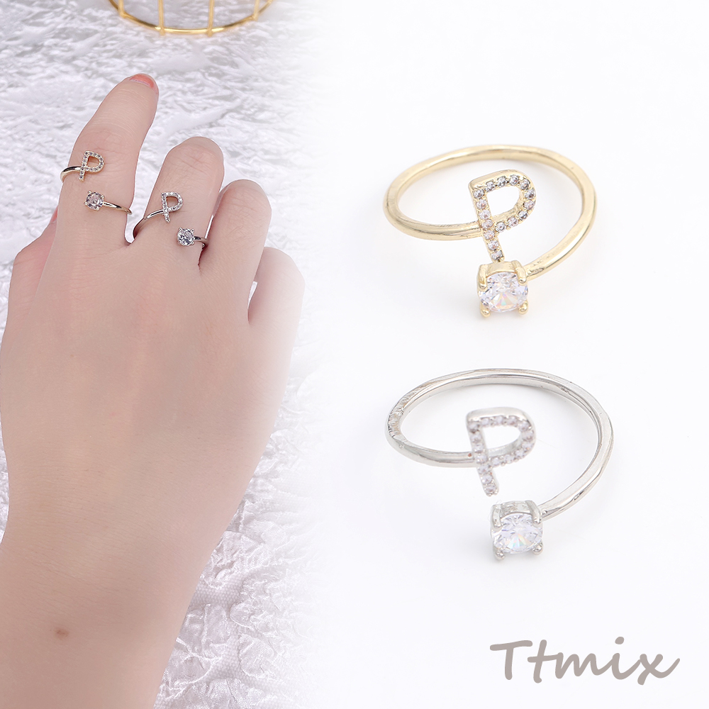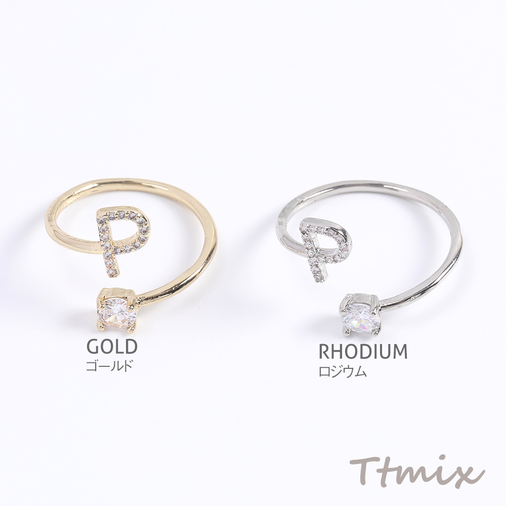 高品質ジルコニアリング デザインリング 指輪 アルファベットP 幅約13mm(1ヶ)