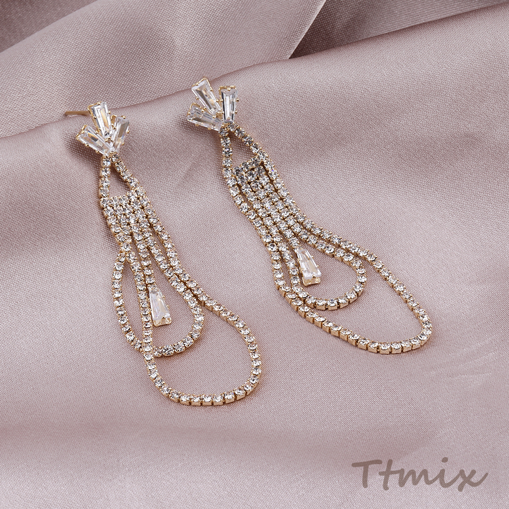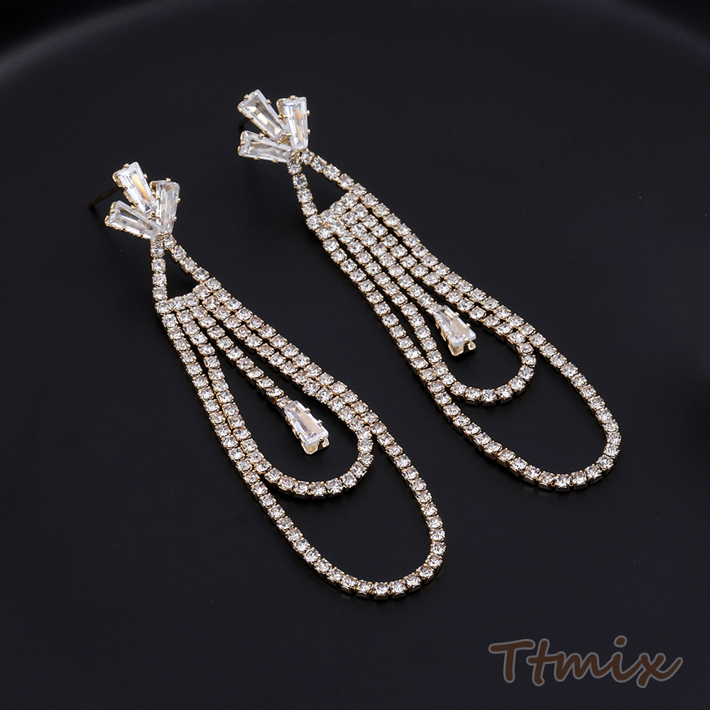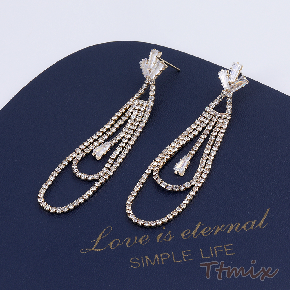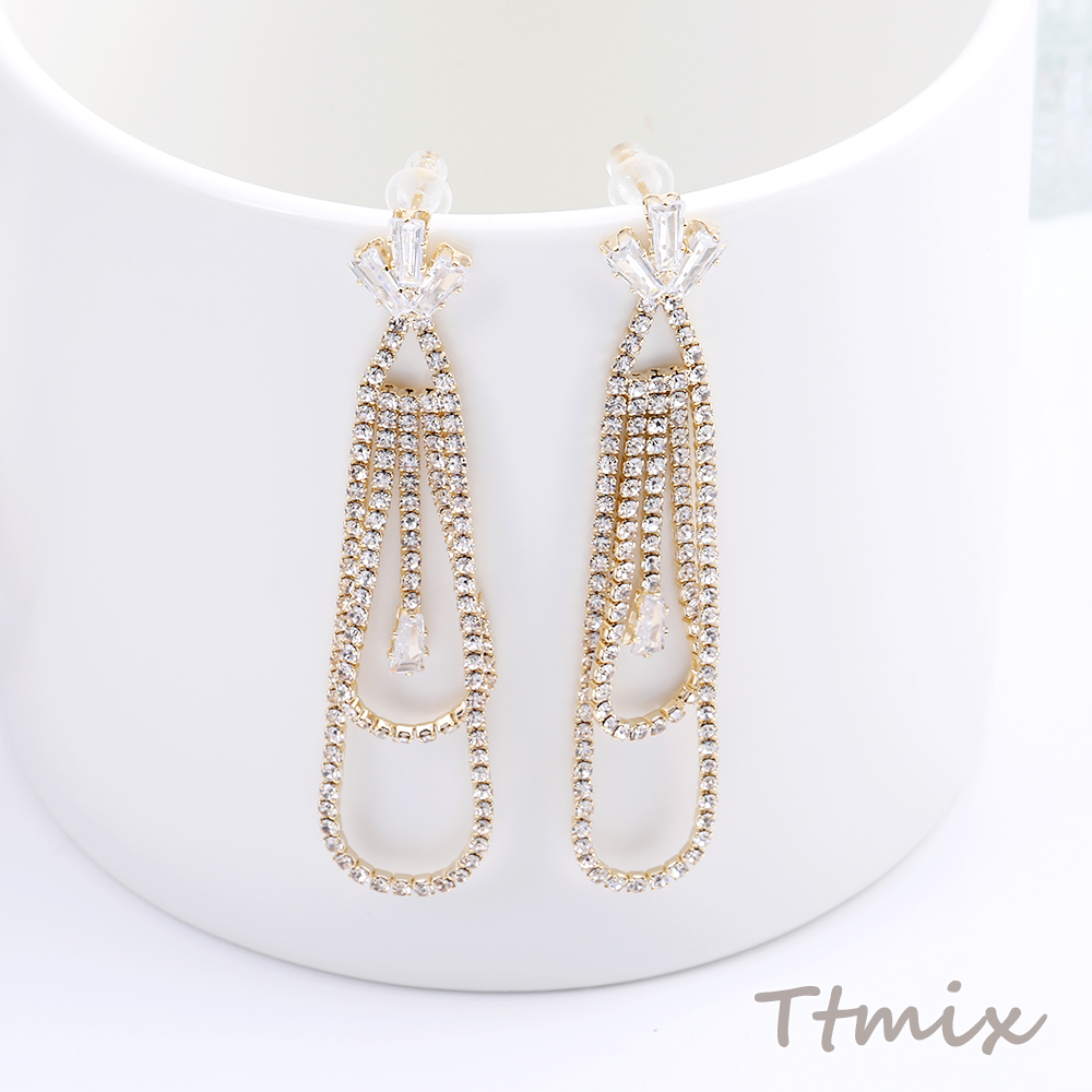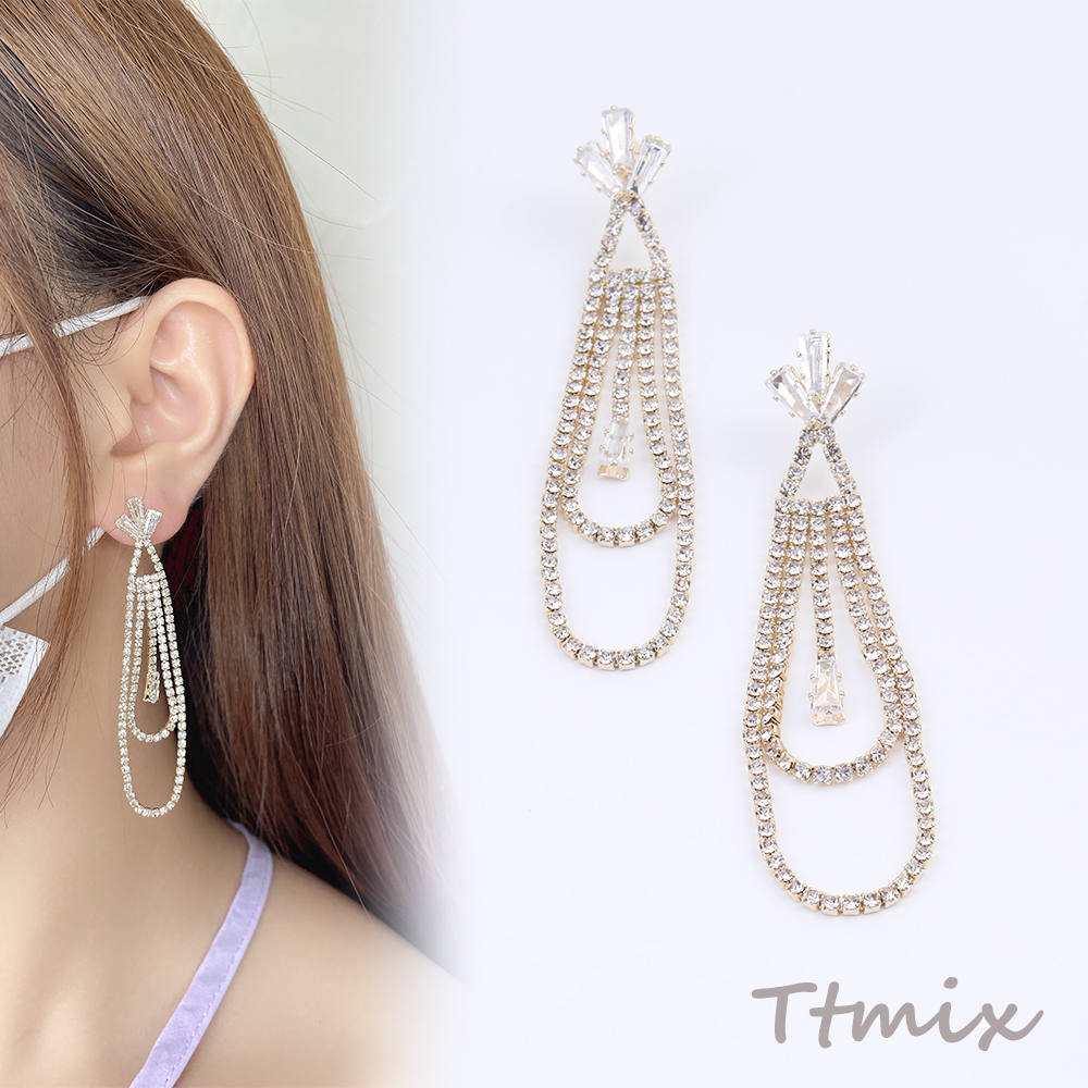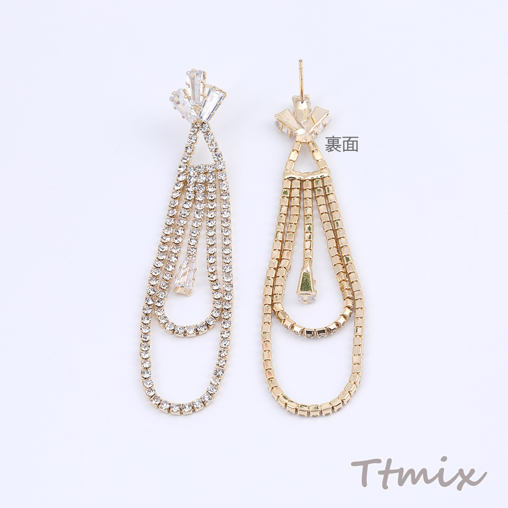 デザインピアス ラインストーン付き サボテン チェーンタッセル 14×70mm ゴールド(1ペア)