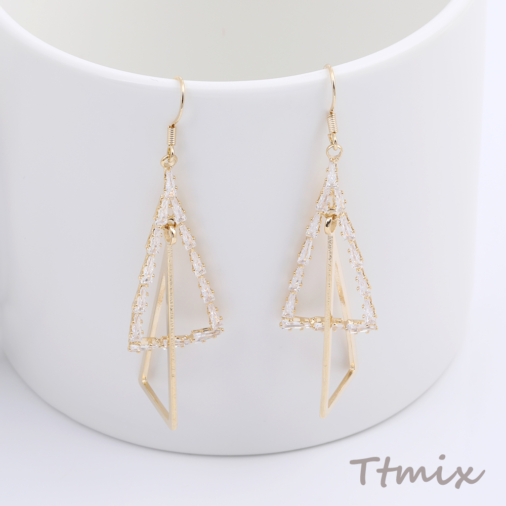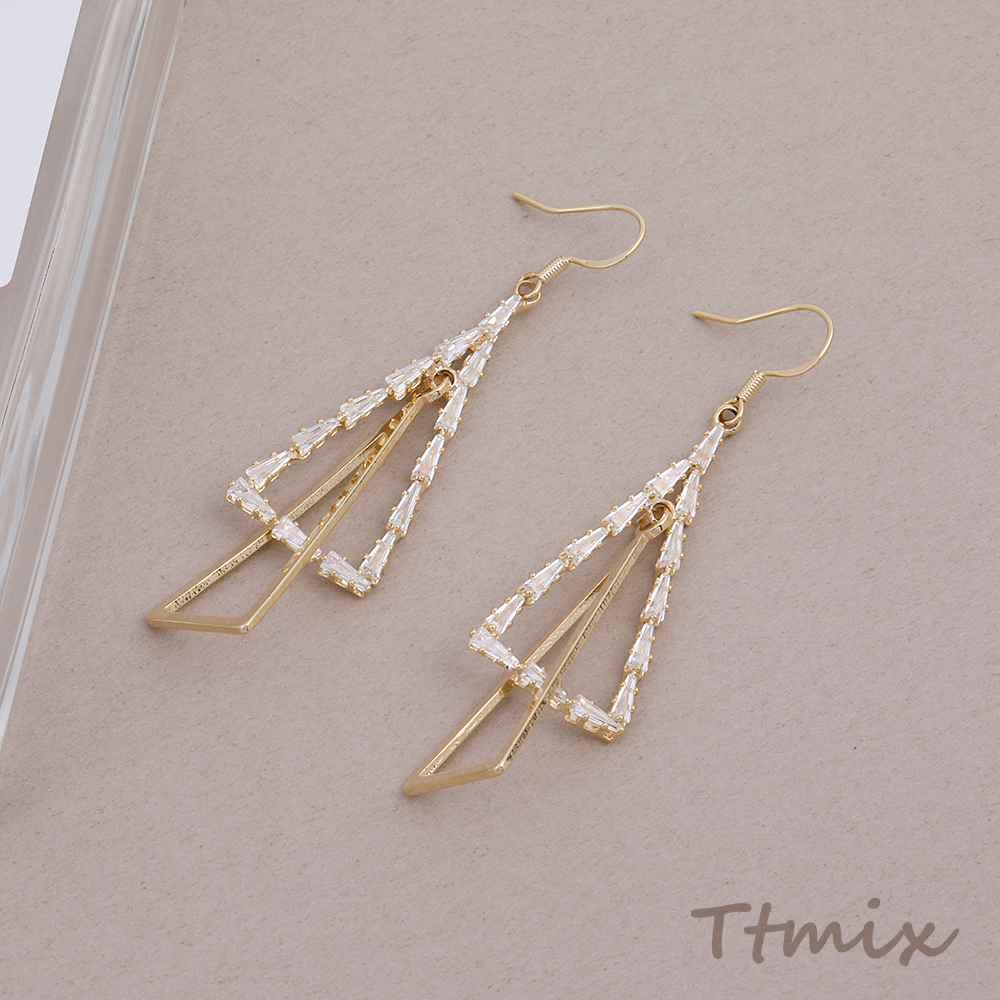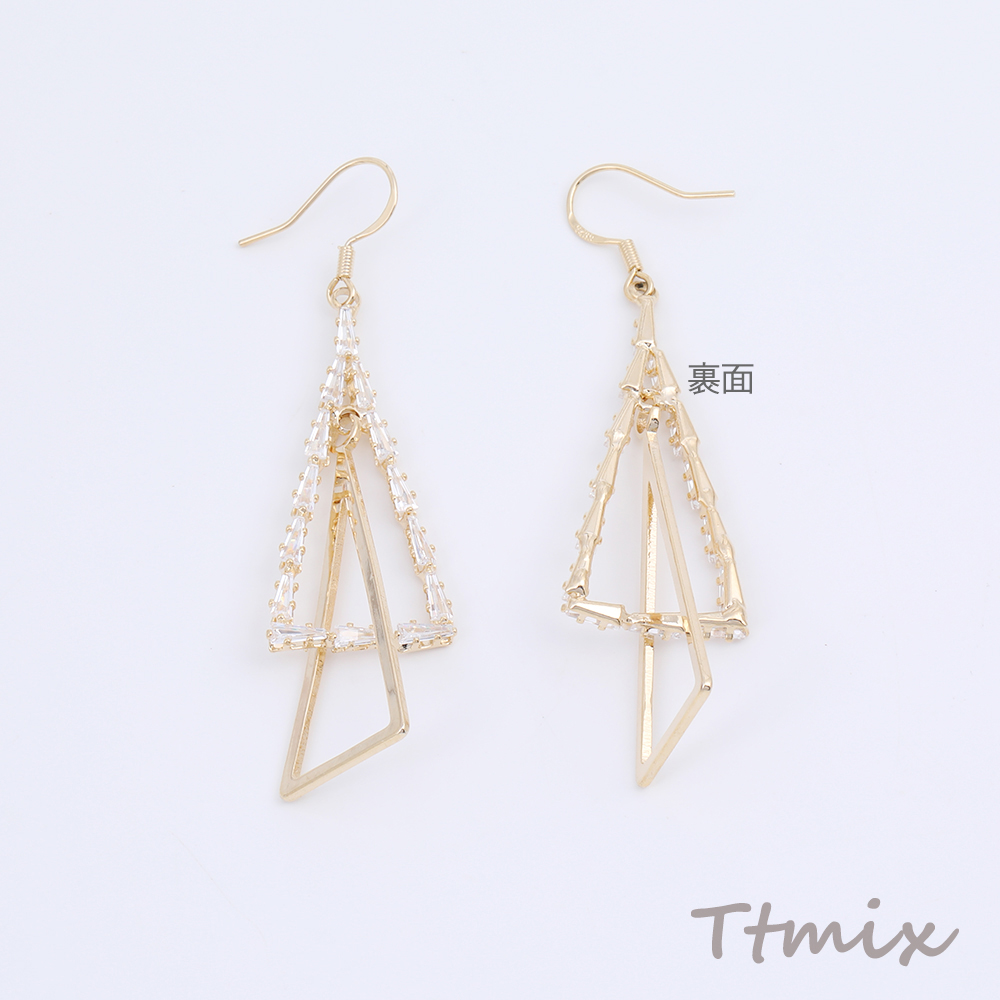 フックピアス ラインストーン付き 三角形 17×66mm ゴールド(1ペア)