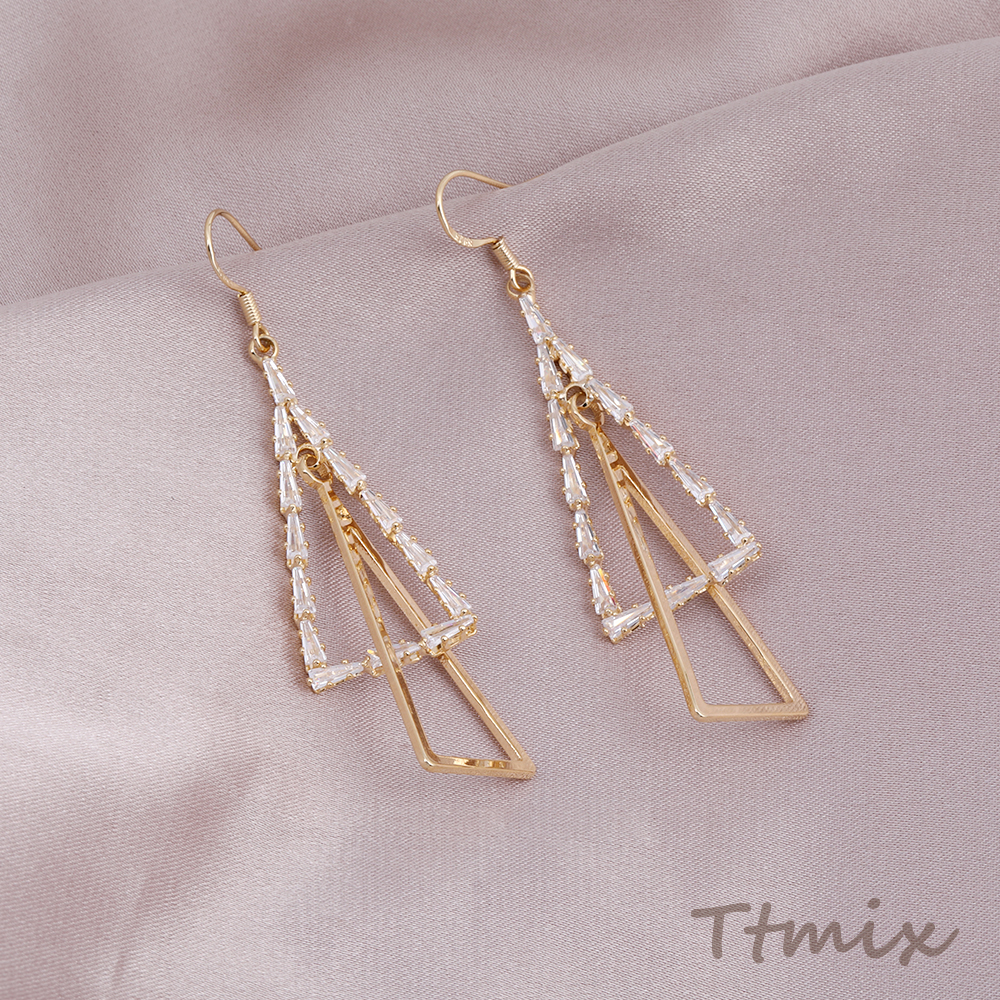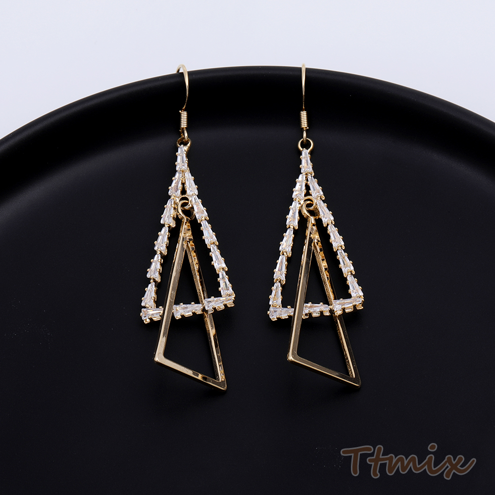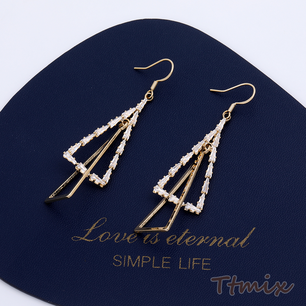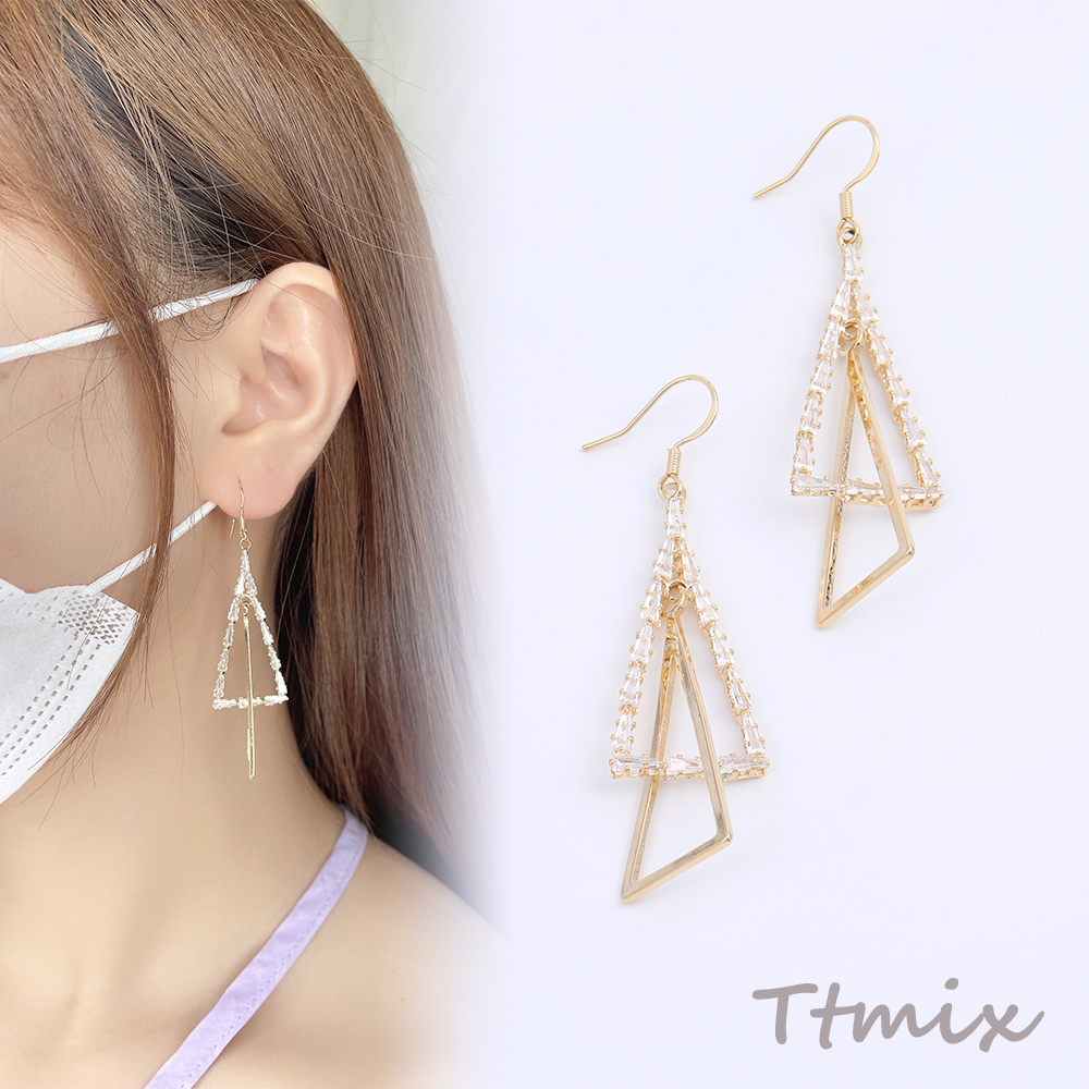 フックピアス ラインストーン付き 三角形 17×66mm ゴールド(1ペア)