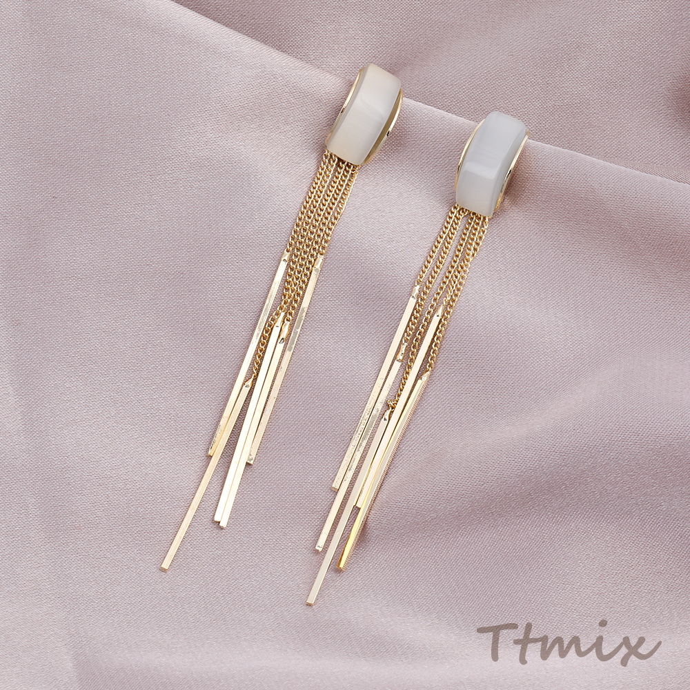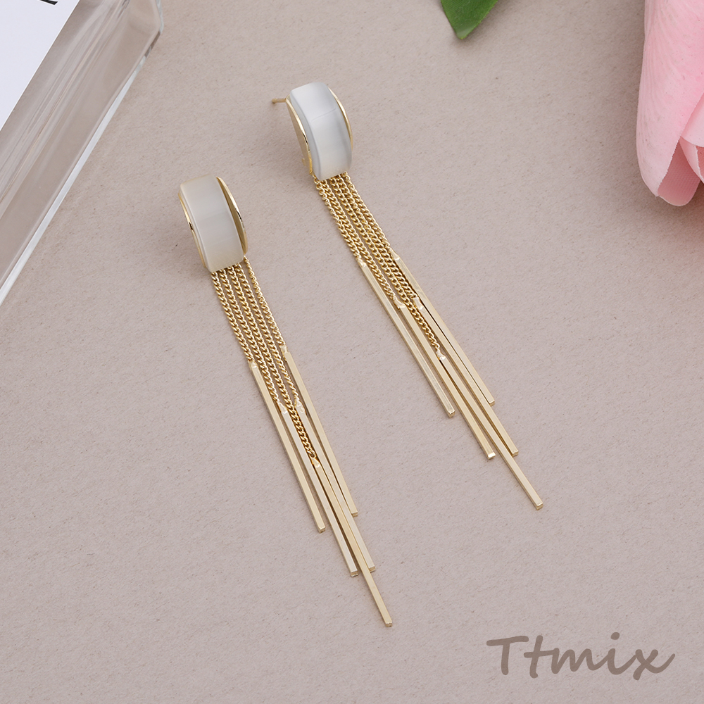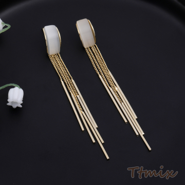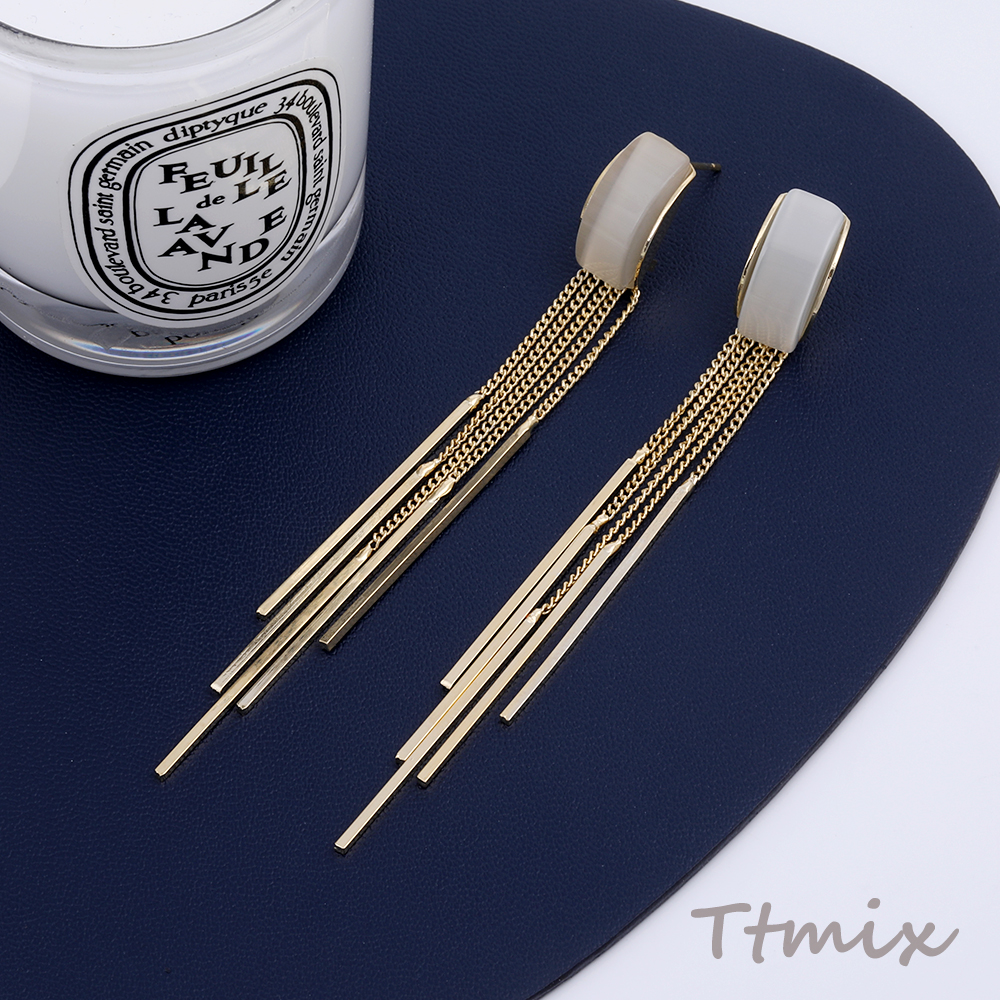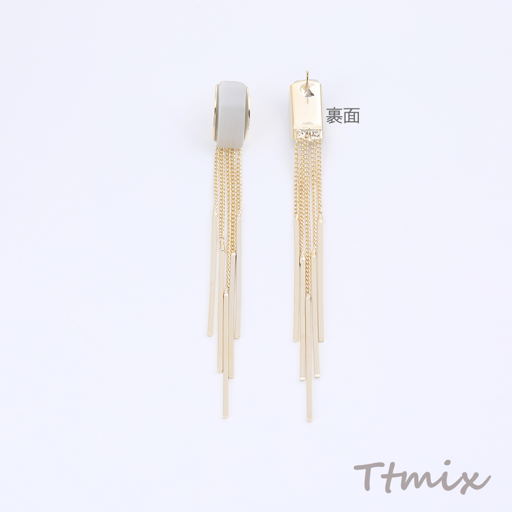デザインピアス キャッツアイ貼り カーブ チェーンタッセル 8×83mm ゴールド(1ペア)