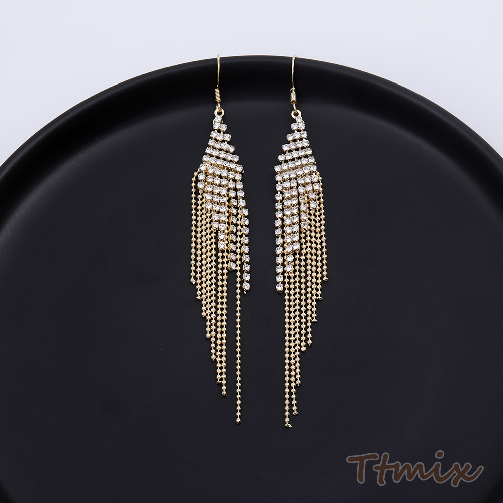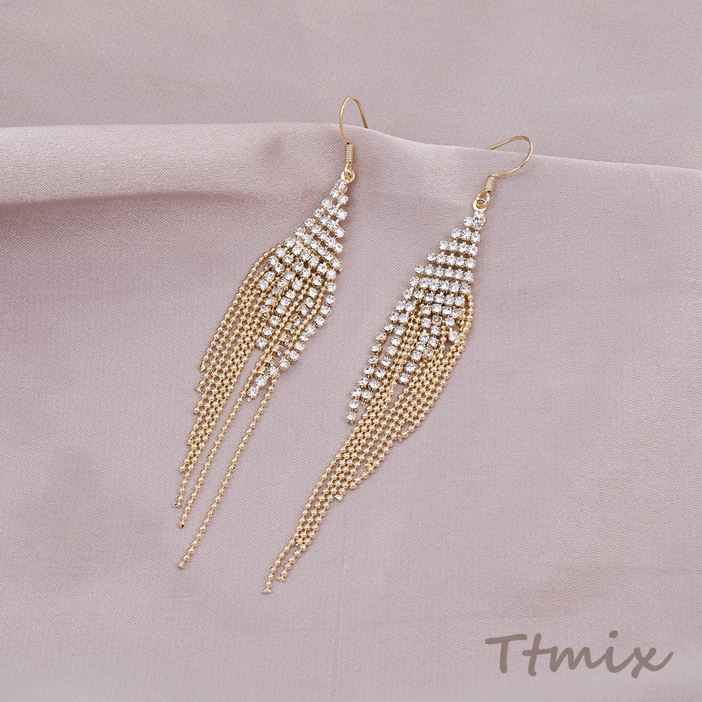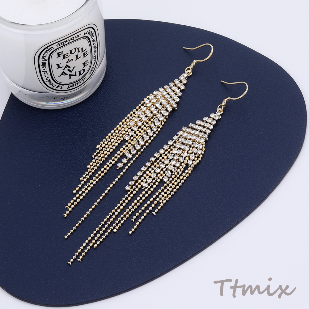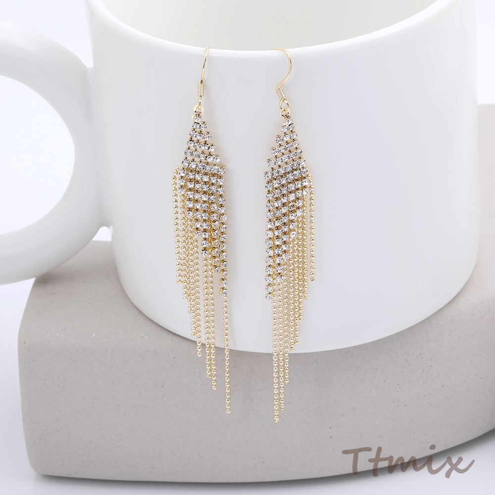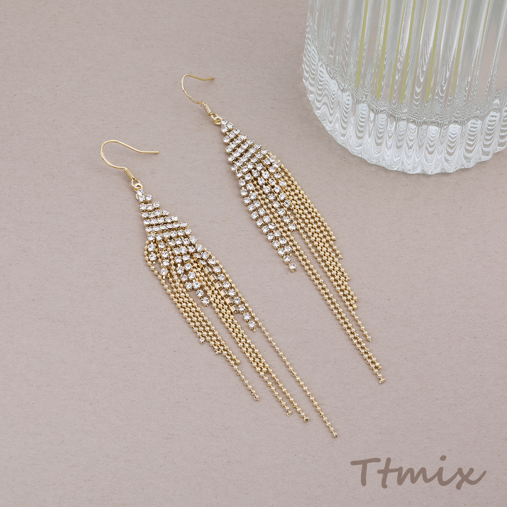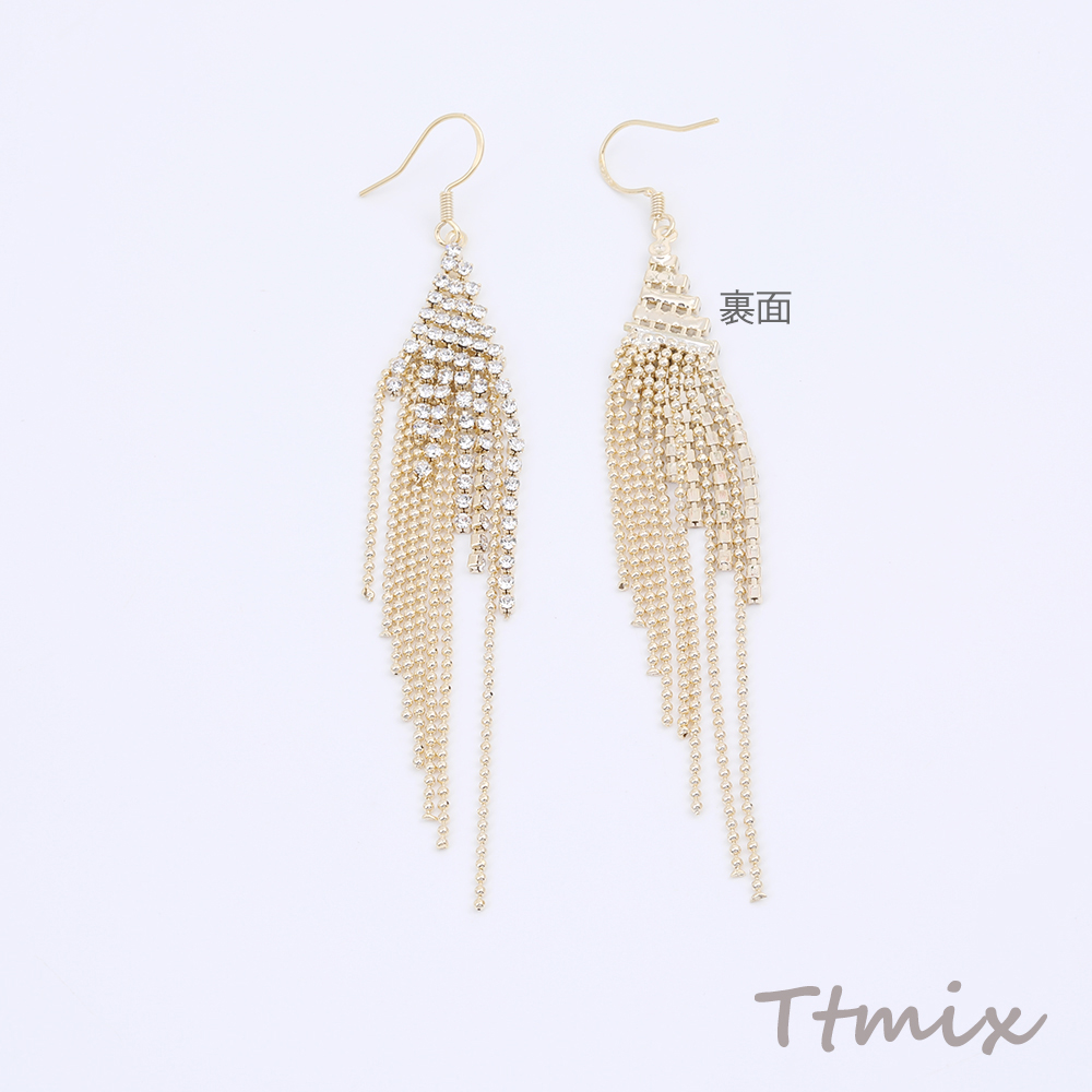 フックピアス ラインストーン付き チェーンタッセル 11×98mm ゴールド(1ペア)