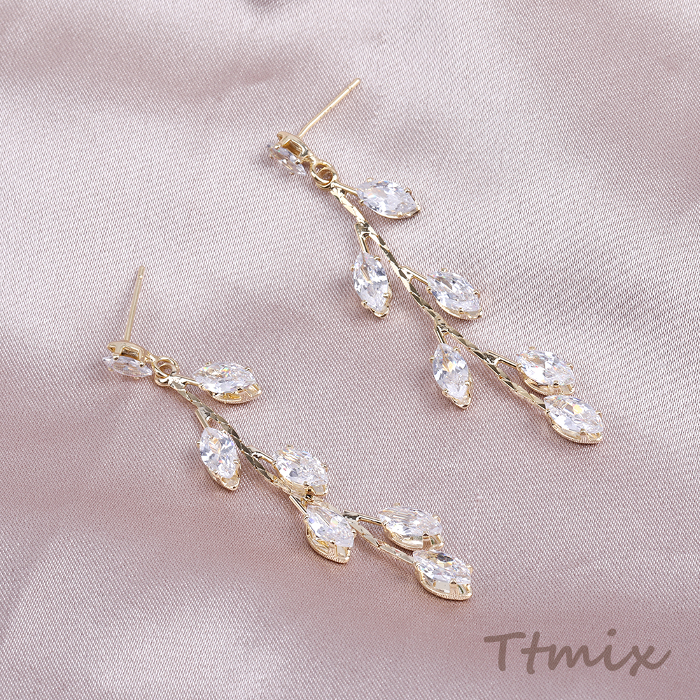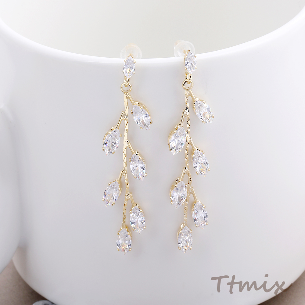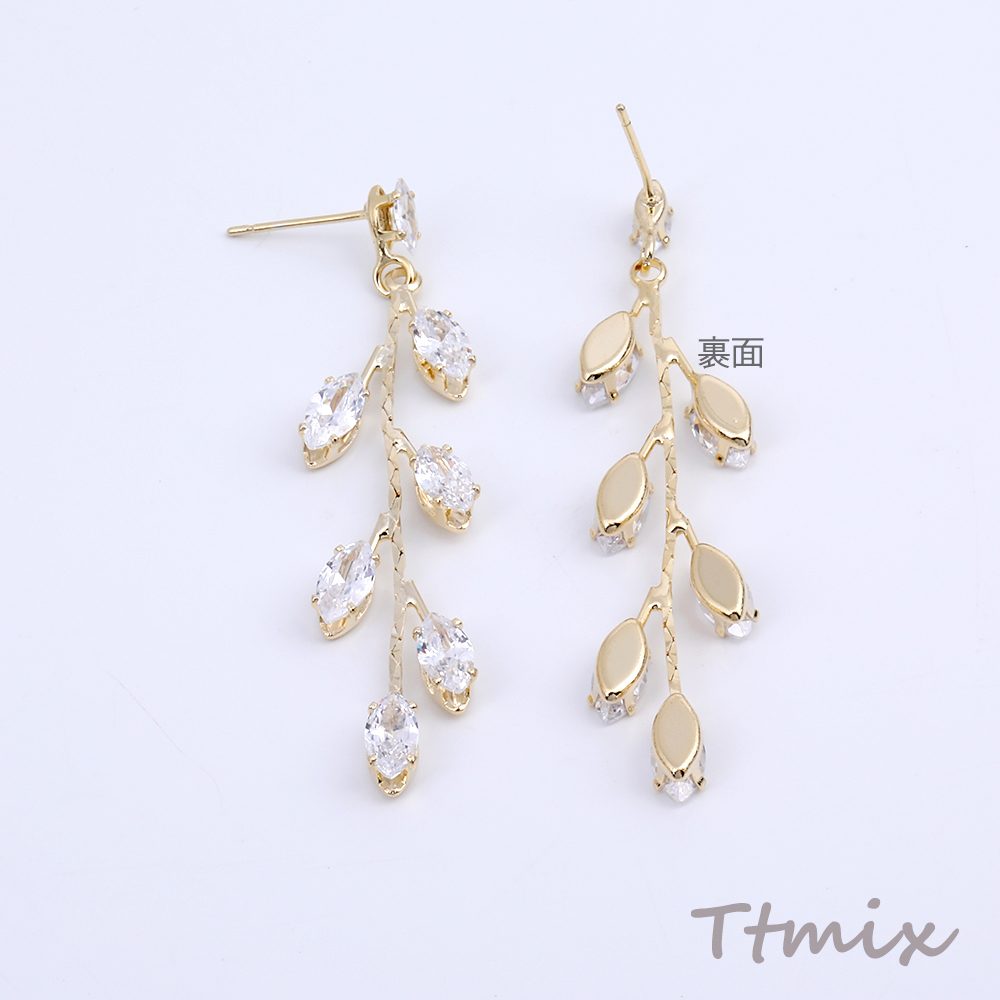 デザインピアス ジルコニア付き 小麦タッセル 13×58mm ゴールド(1ペア)