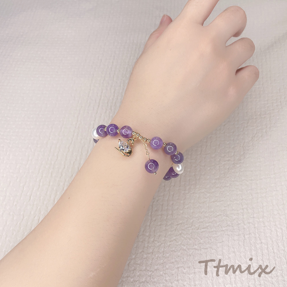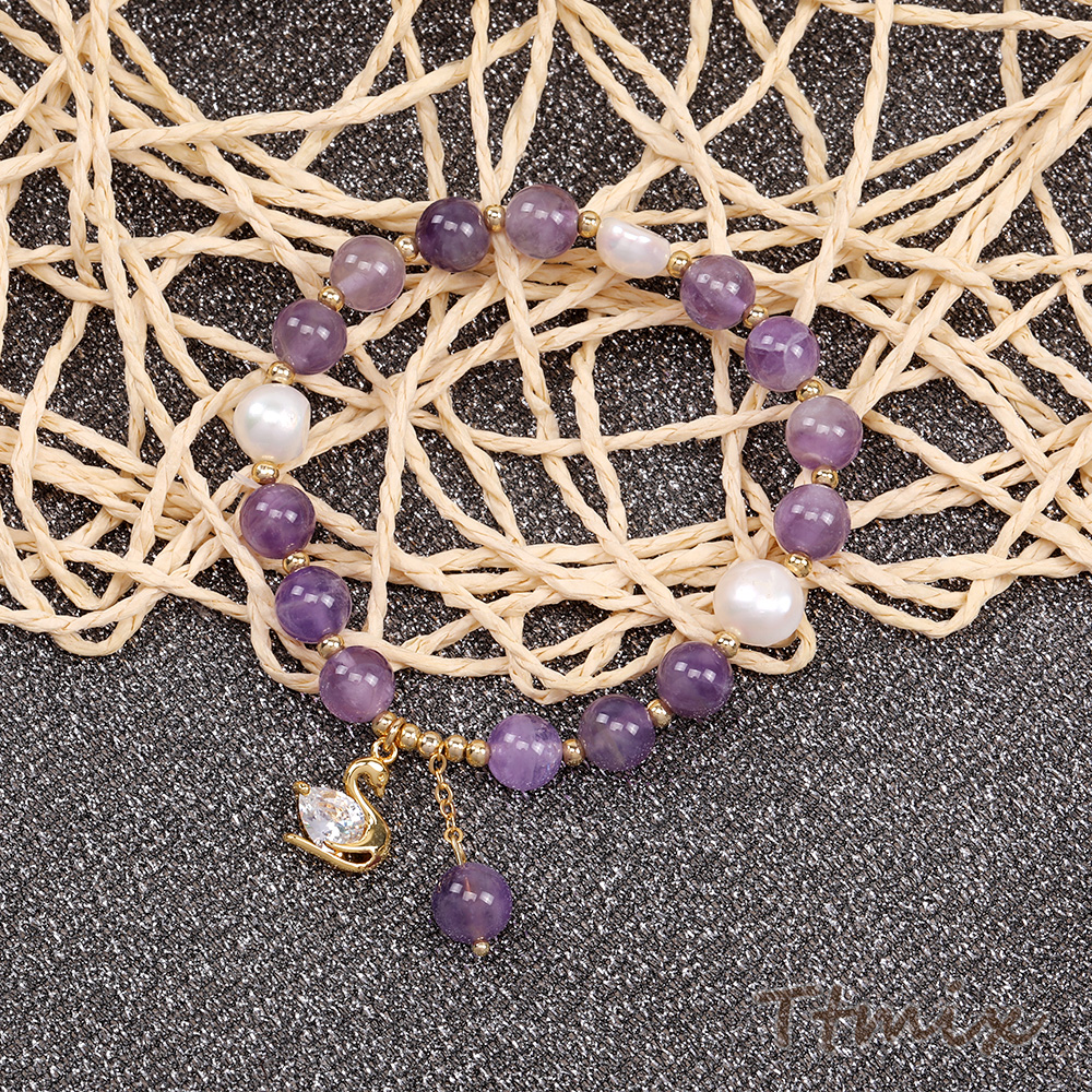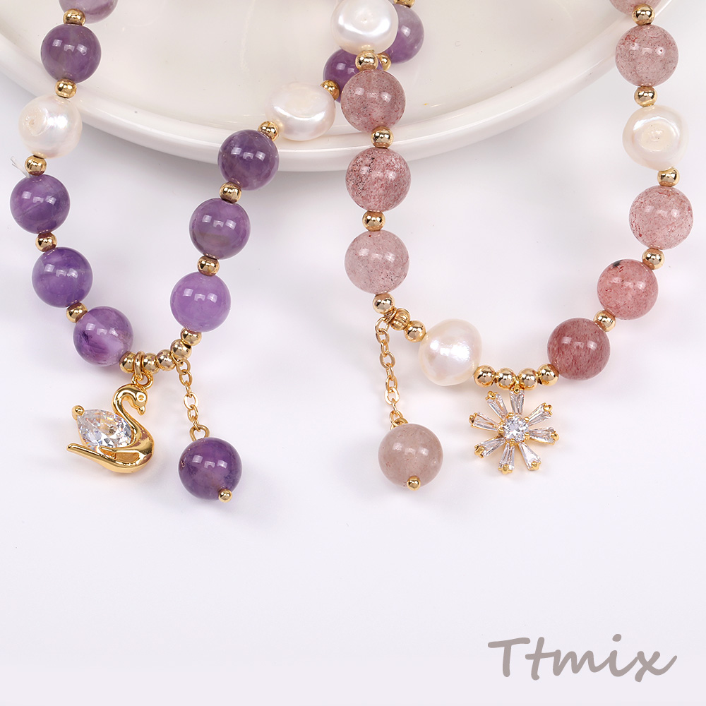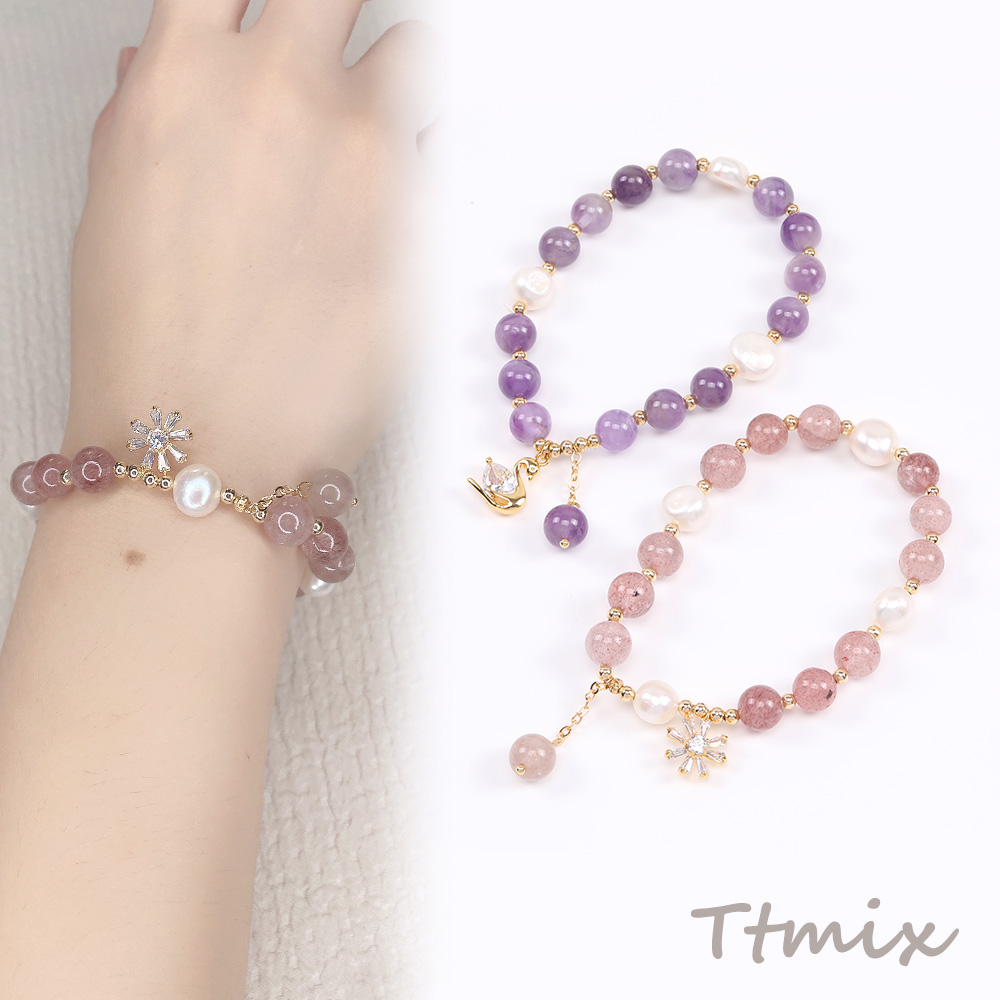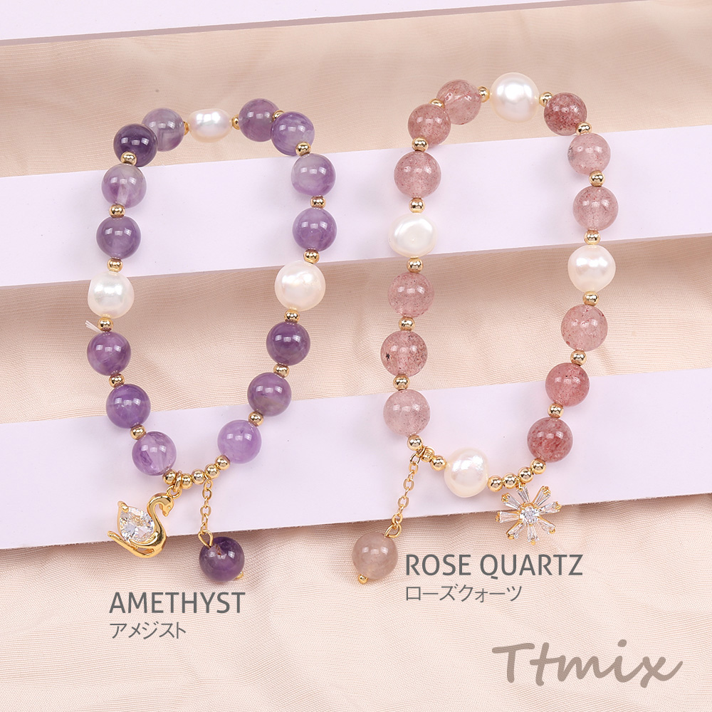 天然石ブレスレット アメジスト ローズクォーツ 9mm(1連)