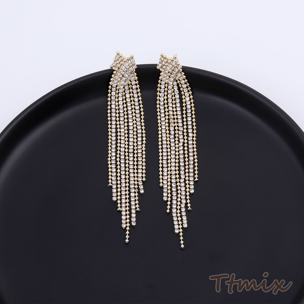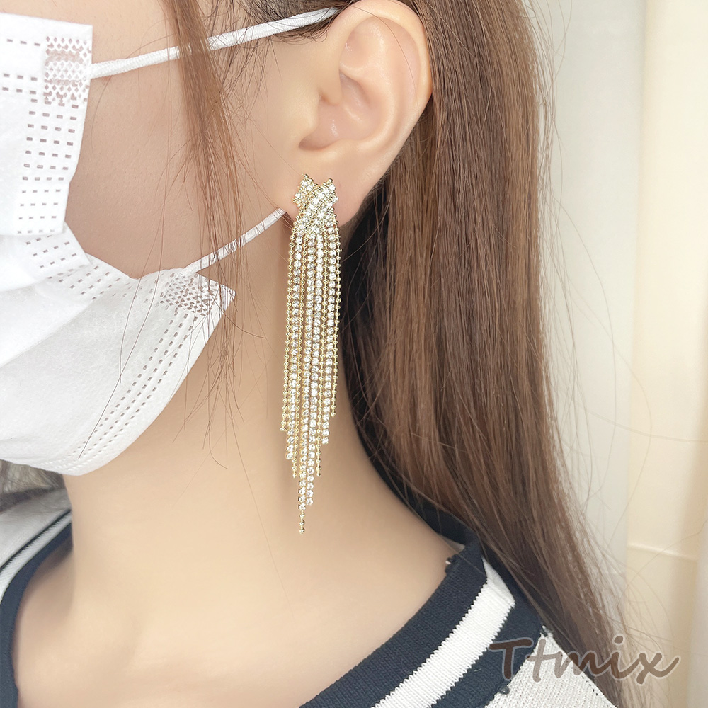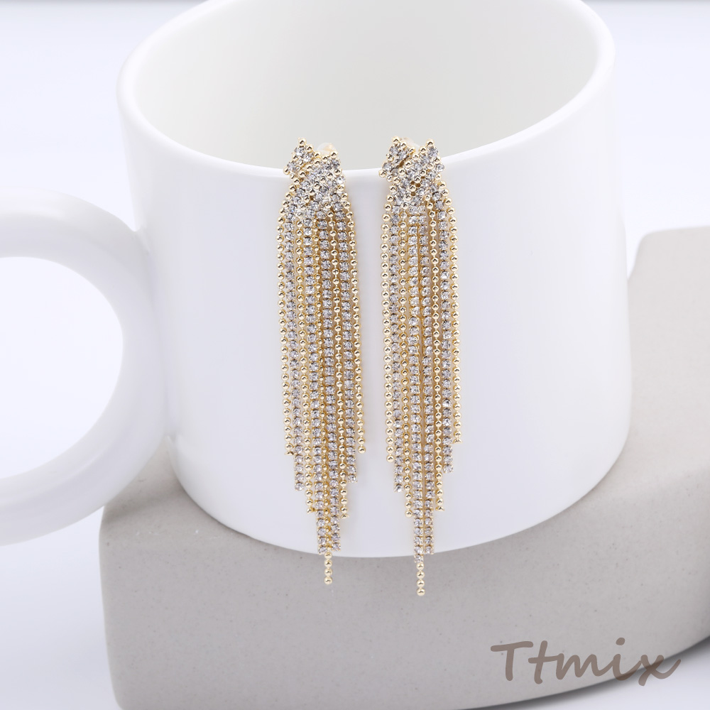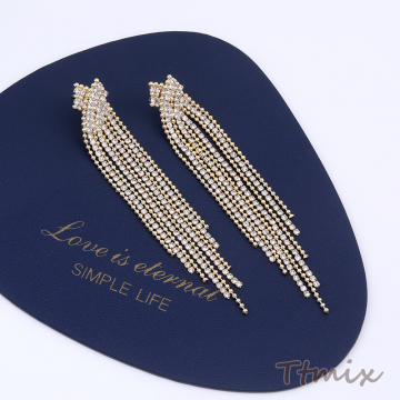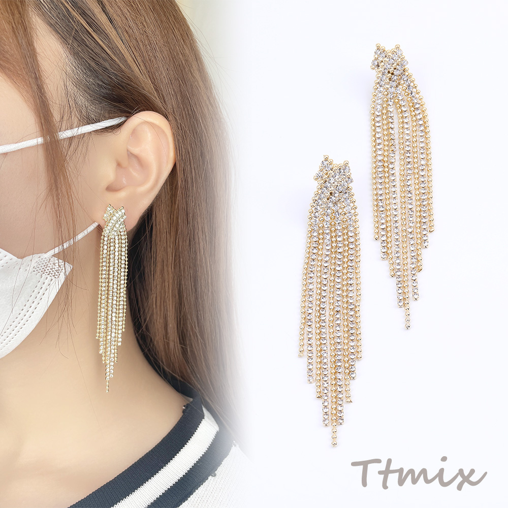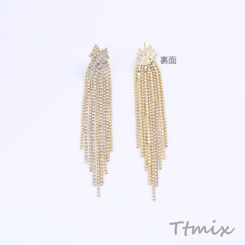 デザインピアス ラインストーン付き チェーンタッセル 14×94mm ゴールド(1ペア)