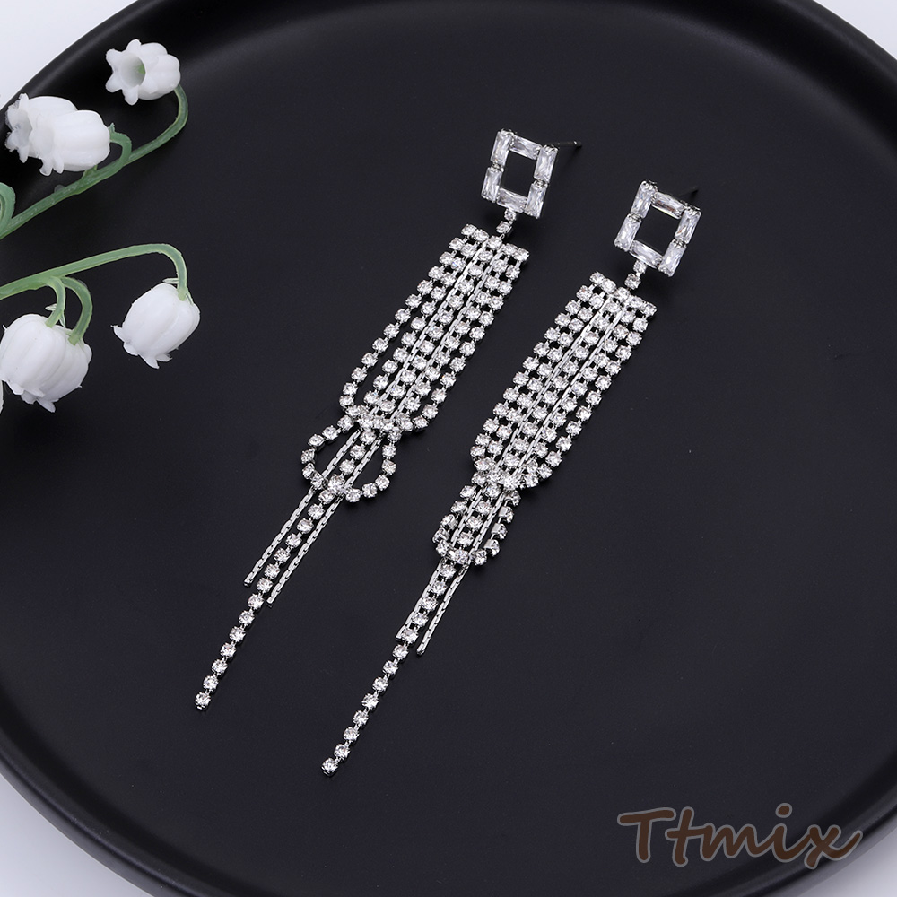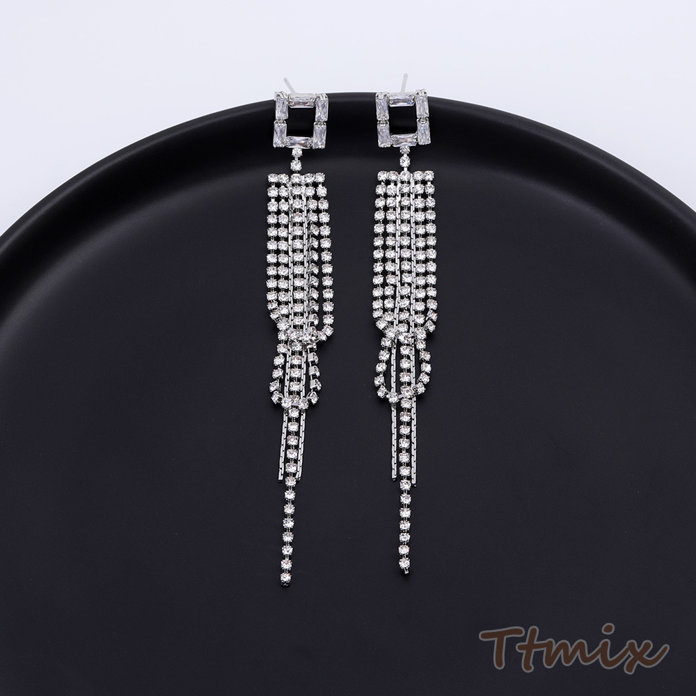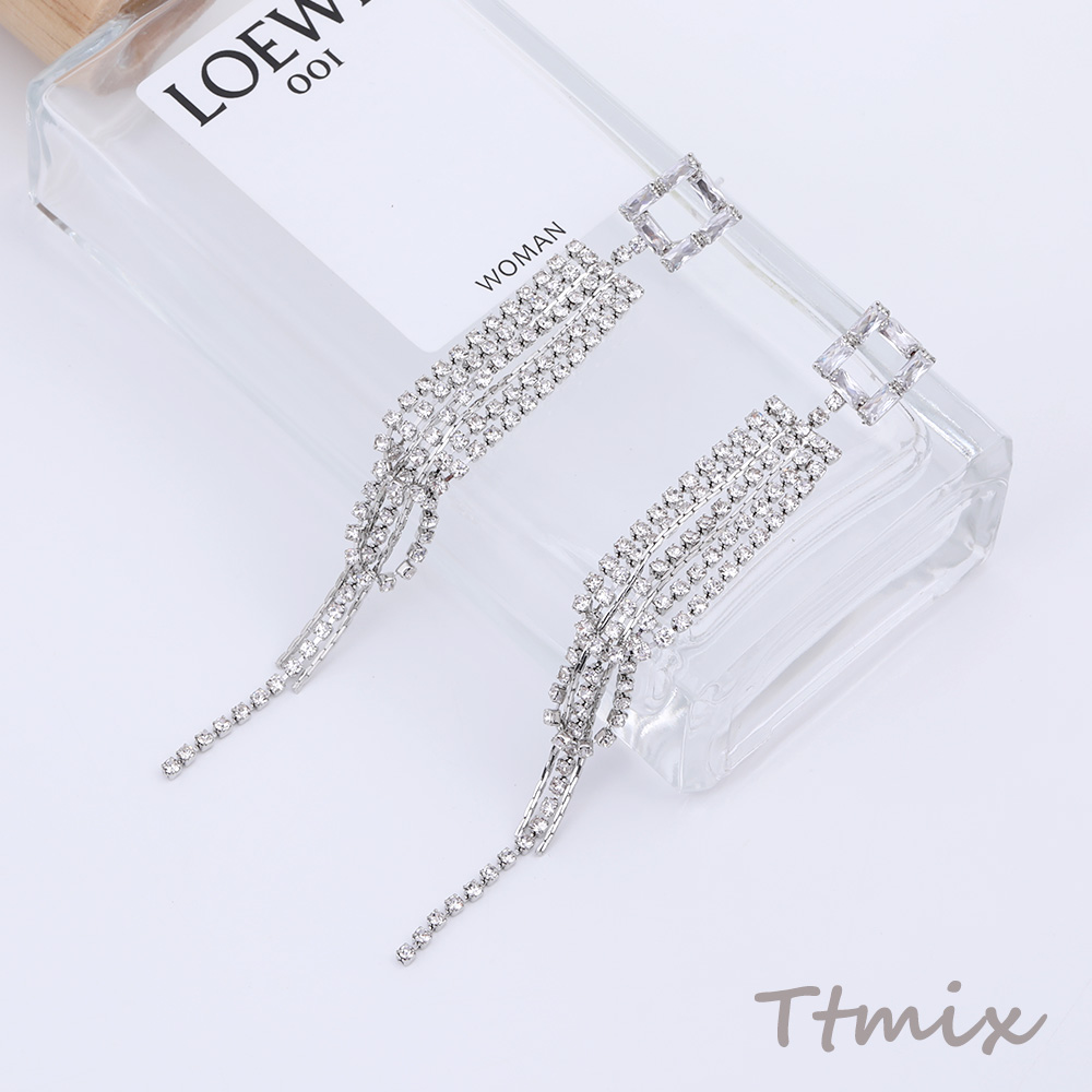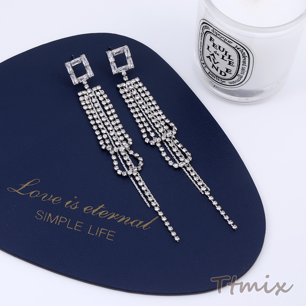 デザインピアス ラインストーン付き チェーンタッセル 9×90mm ロジウム(1ペア)