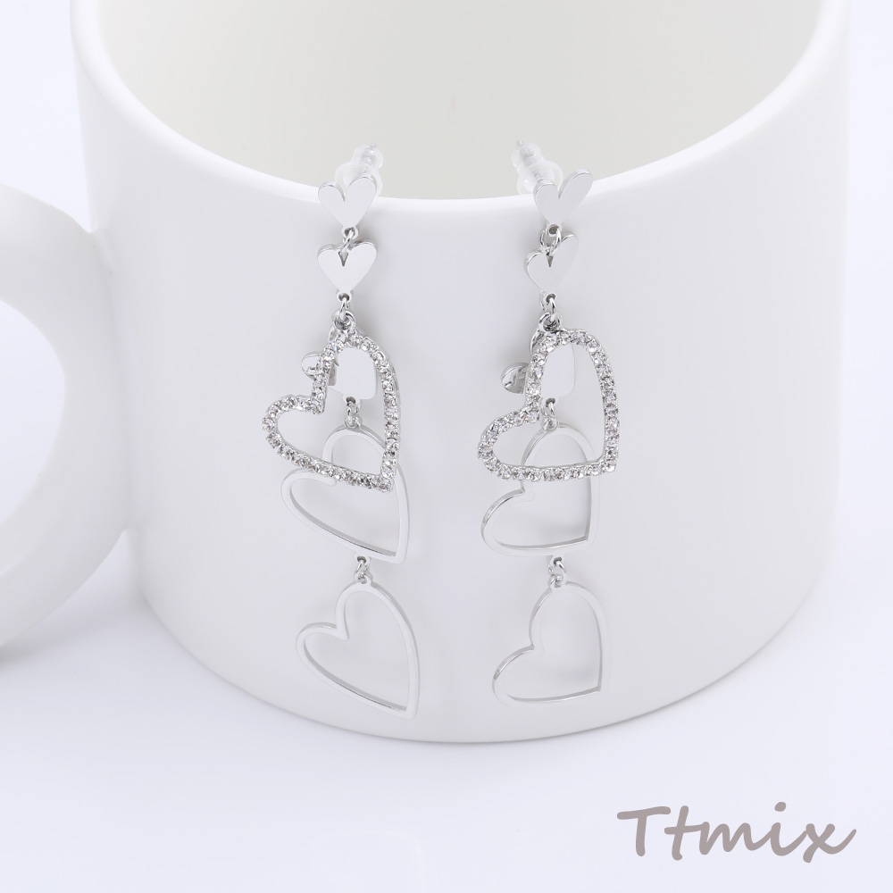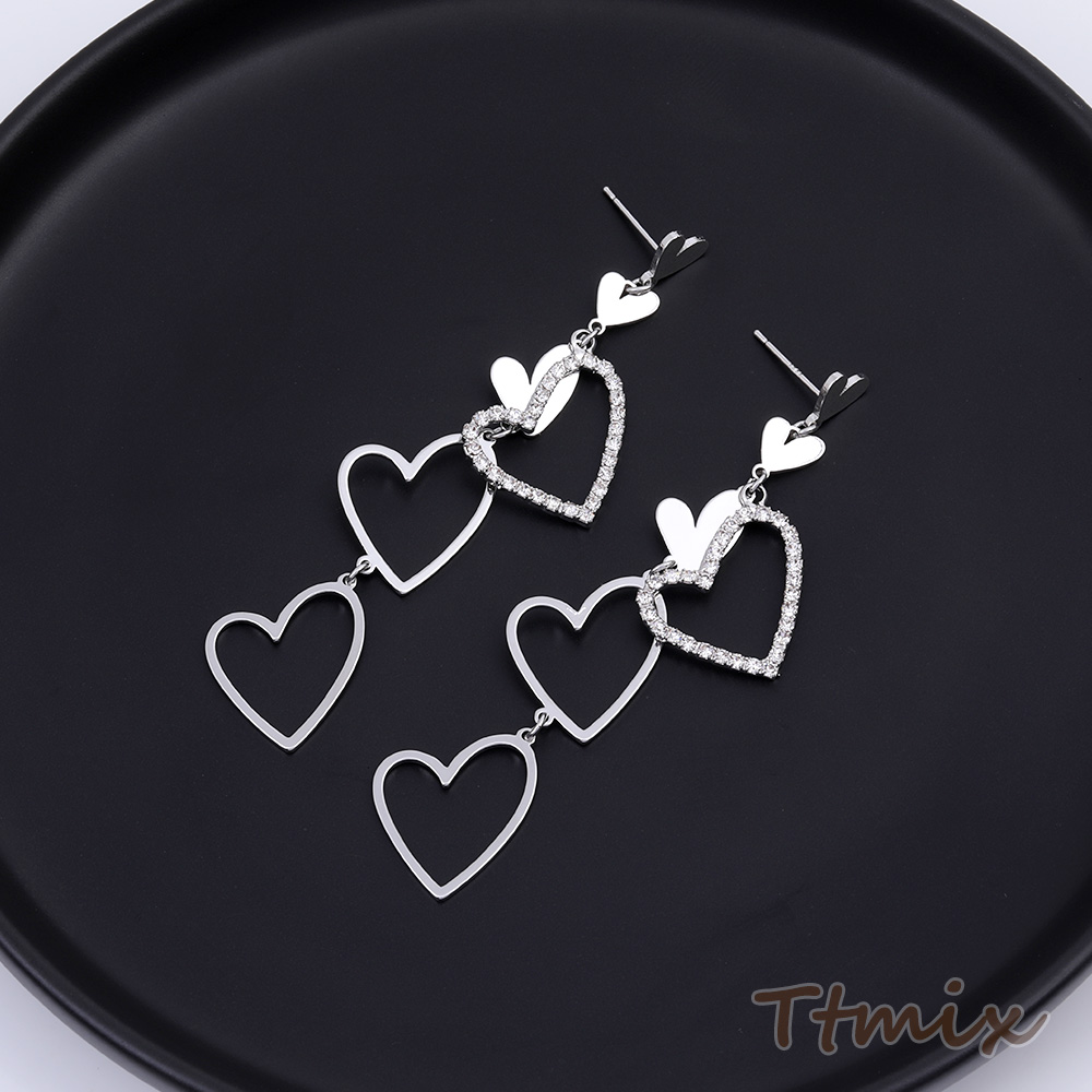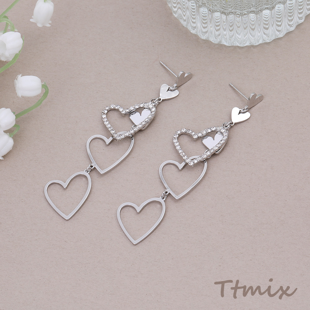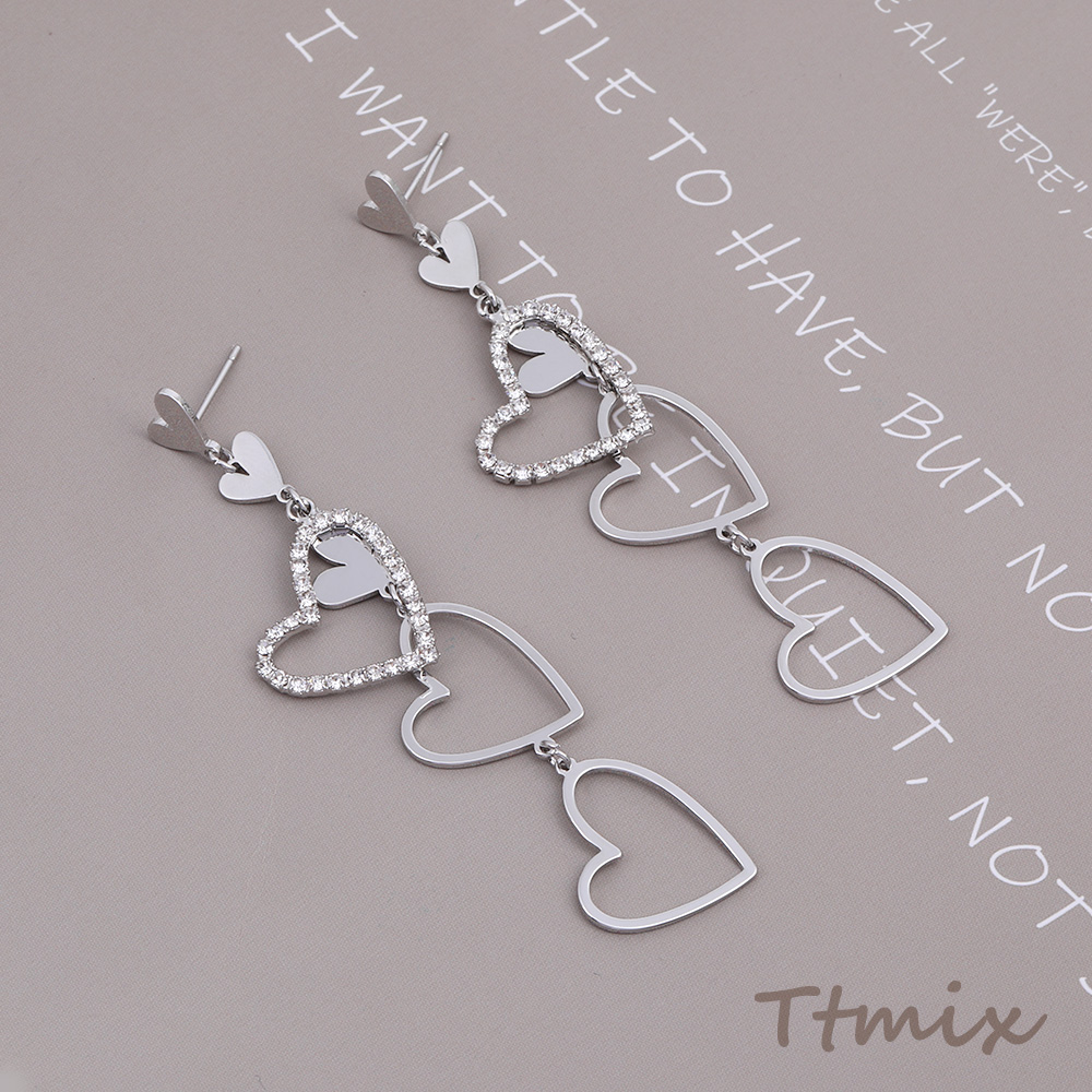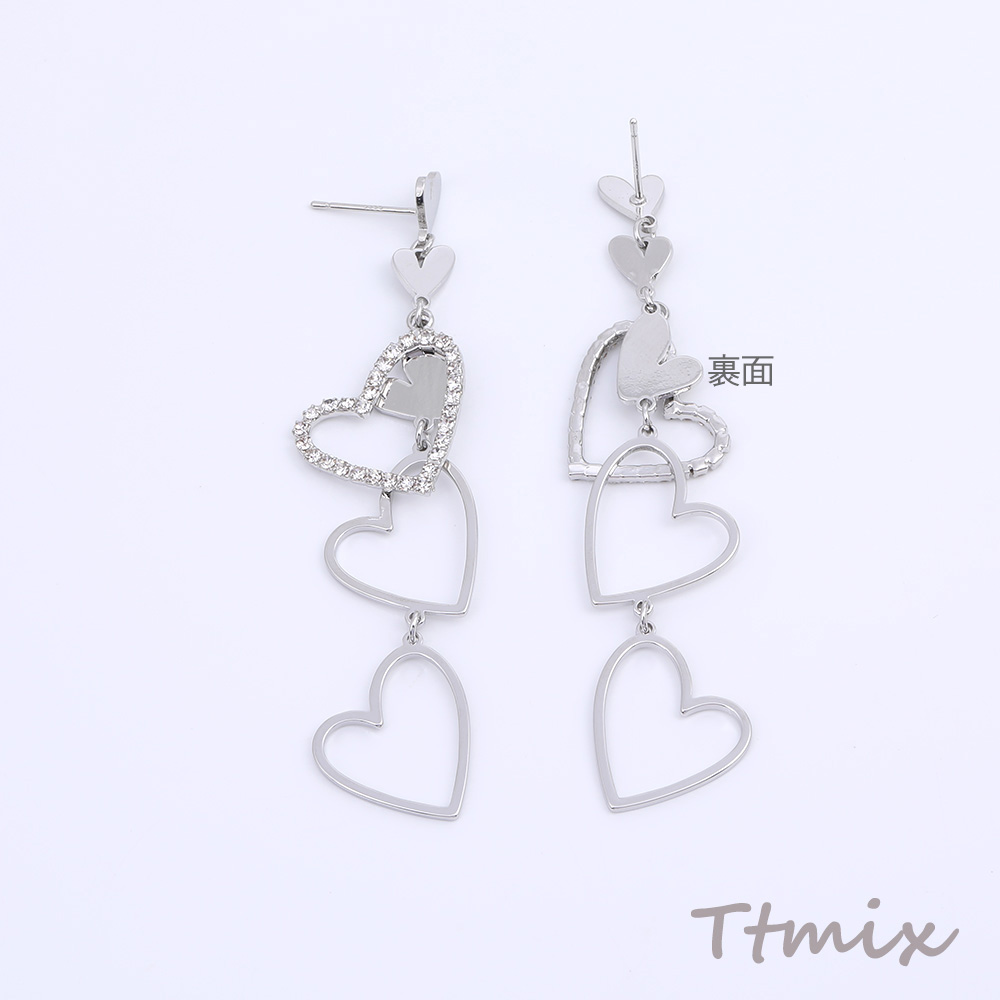 デザインピアス ラインストーン付き ハート型 17×75mm ロジウム(1ペア)