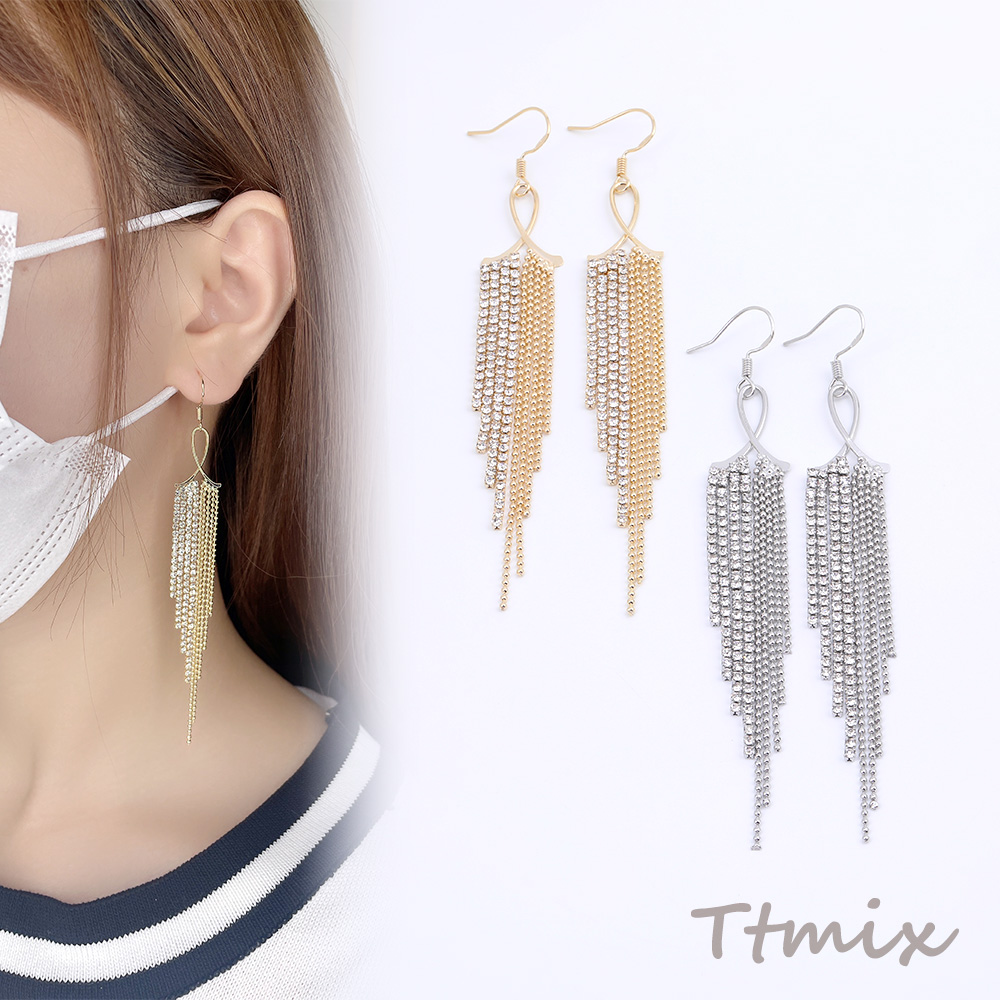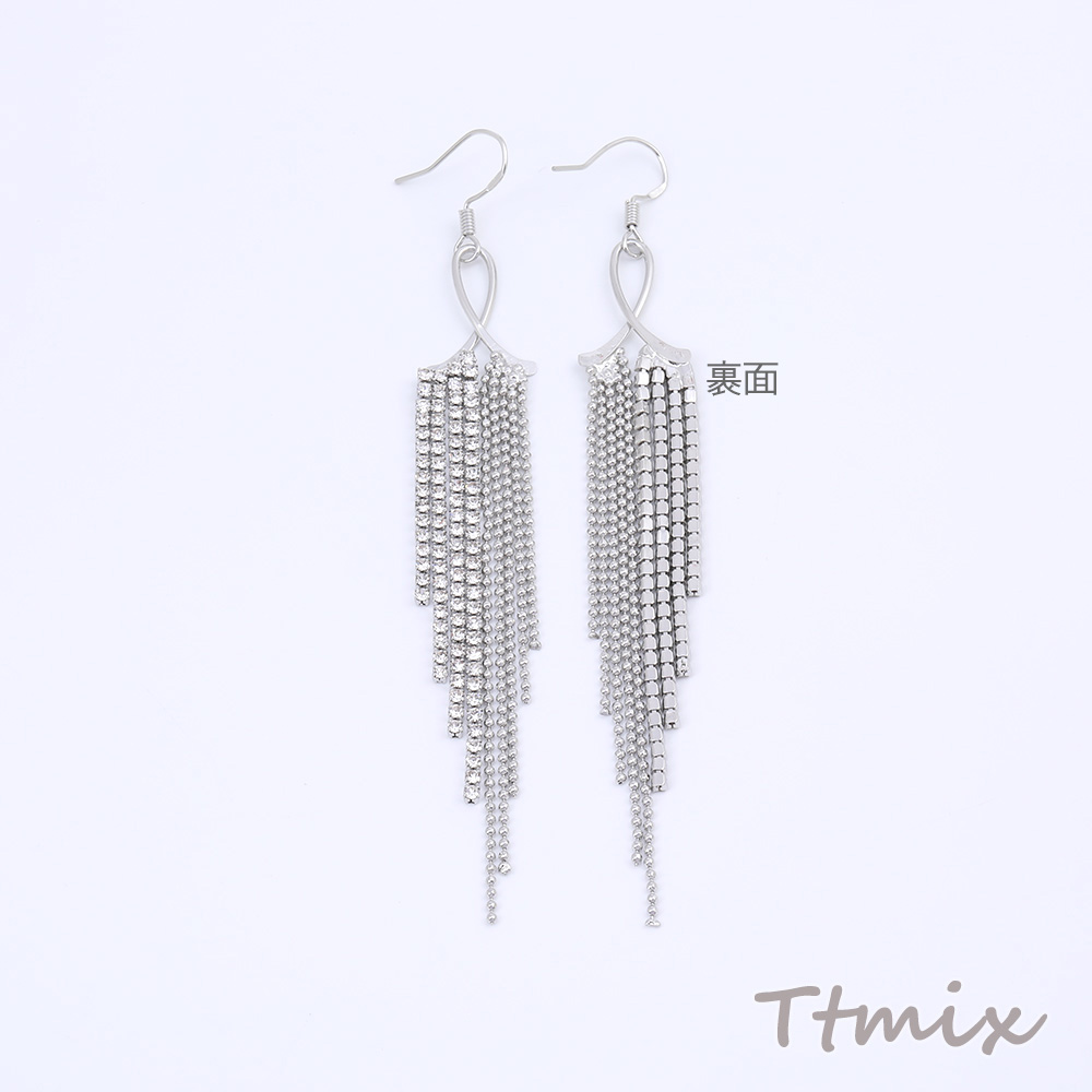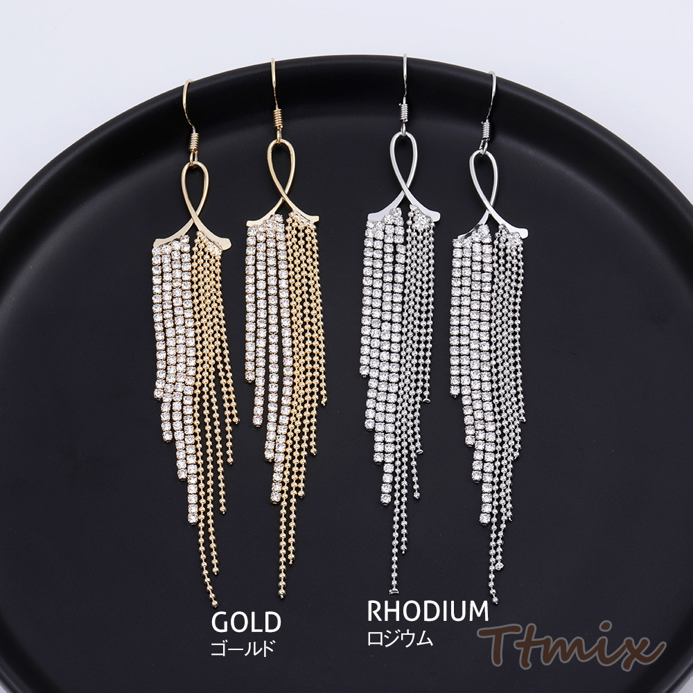 フックピアス ラインストーン付き チェーンタッセル 14×100mm(1ペア)