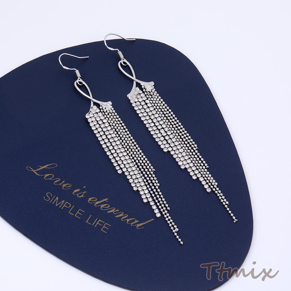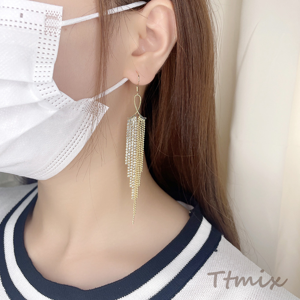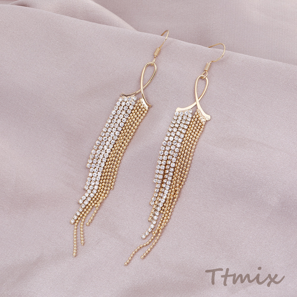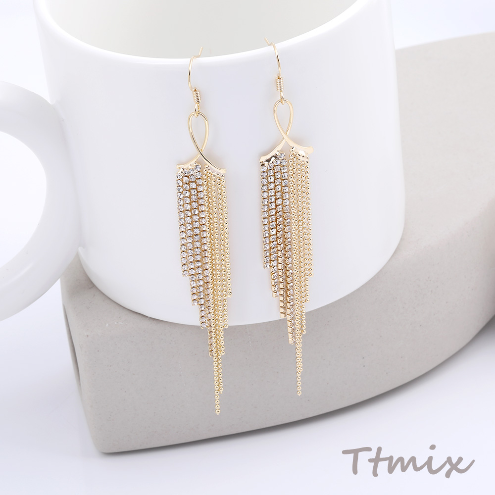 フックピアス ラインストーン付き チェーンタッセル 14×100mm(1ペア)