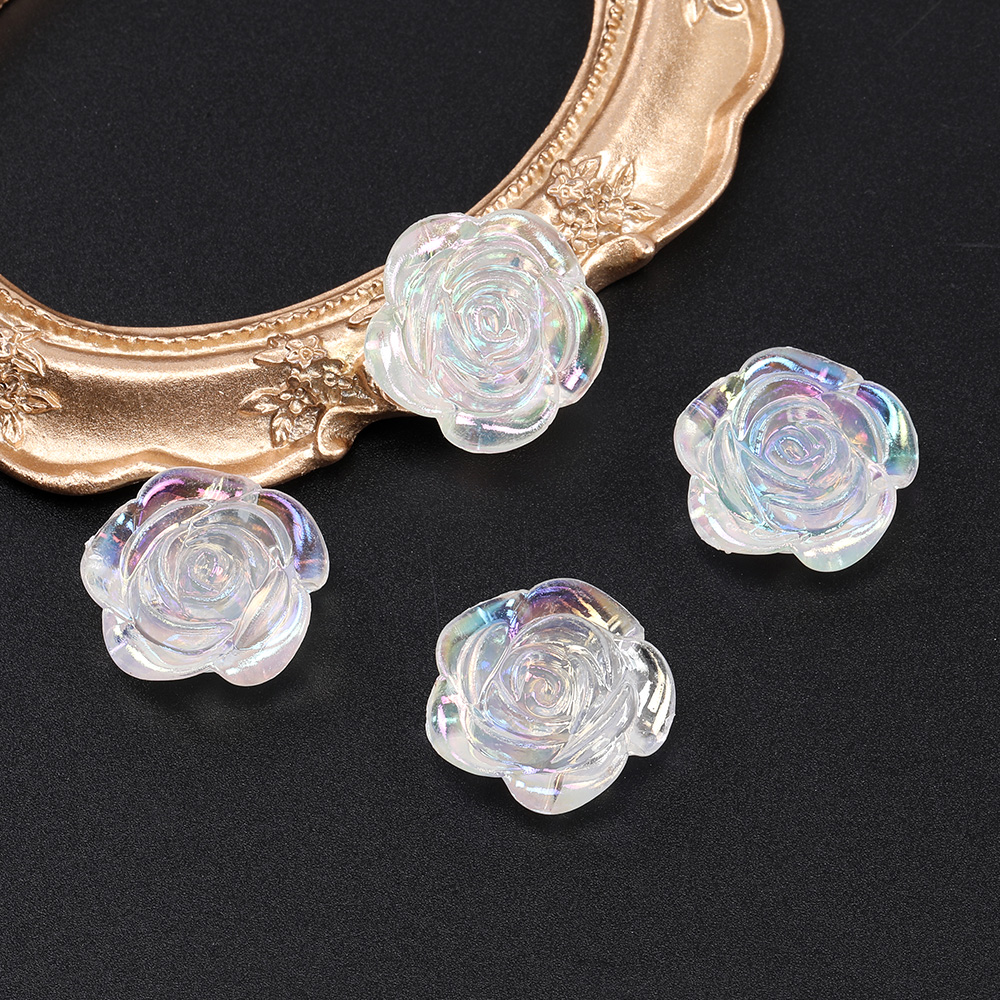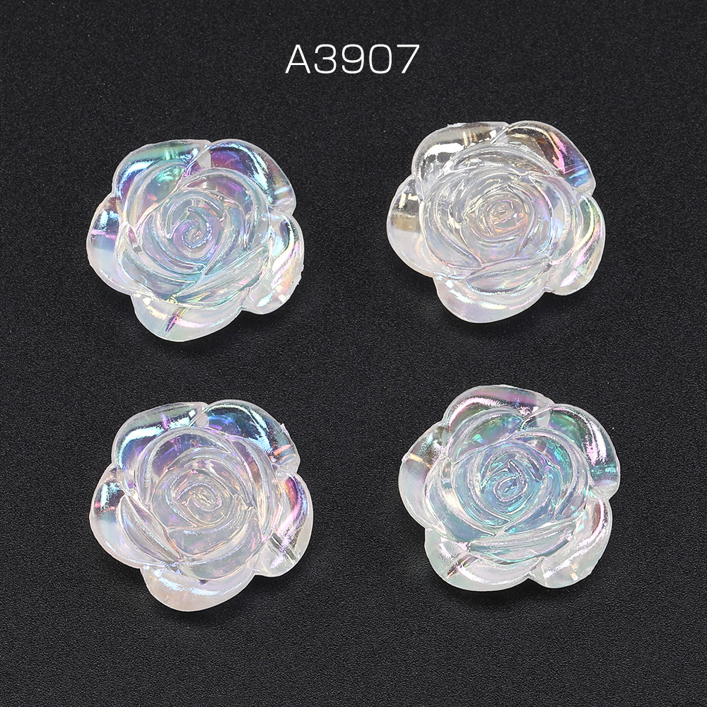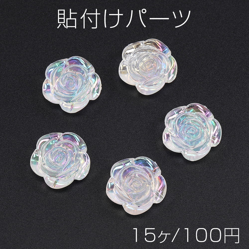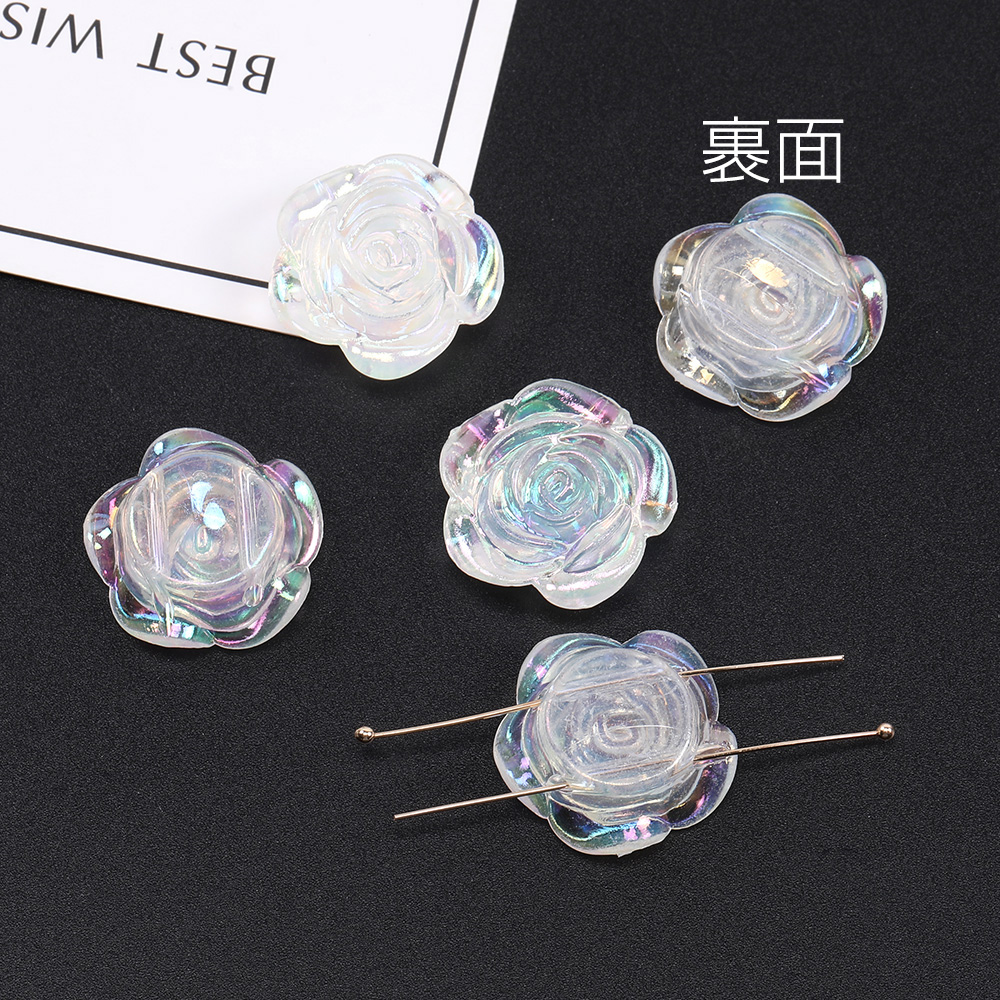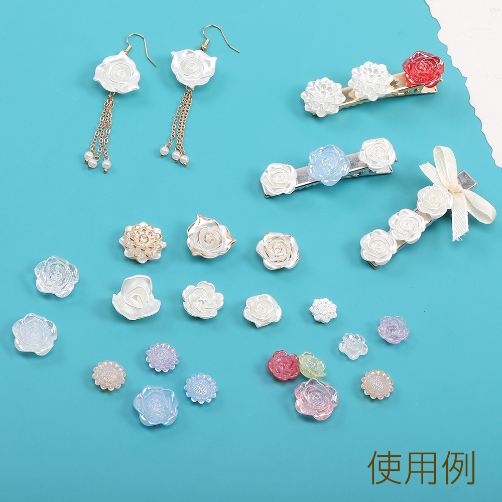 貼付けパーツ アクリル貼付けパーツ アクリルカボション フラワー 穴あり 23mm パール調 オーロラカラー(15ヶ)
