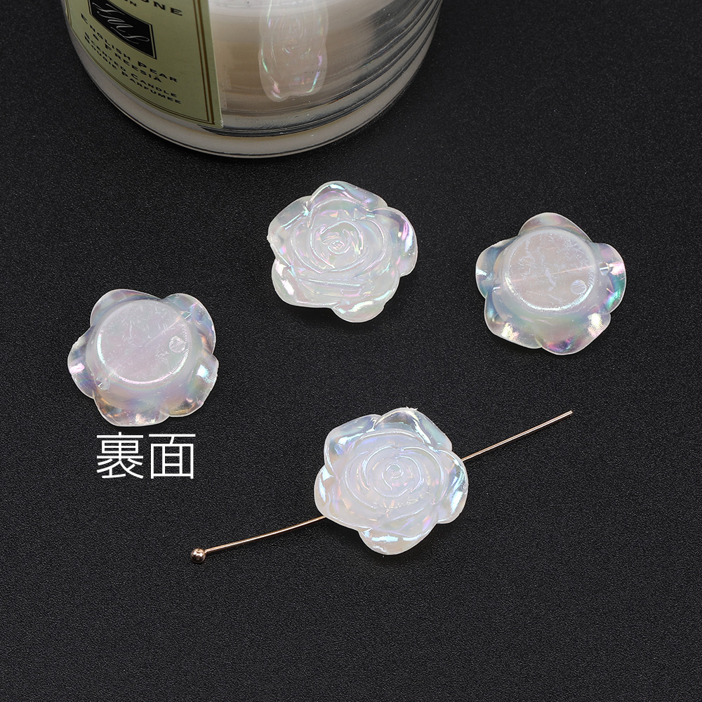 貼付けパーツ アクリル貼付けパーツ アクリルカボション フラワー 穴あり 18mm パール調 オーロラカラー(20ヶ)