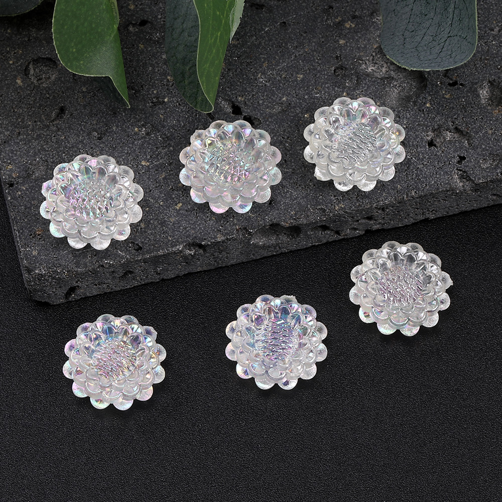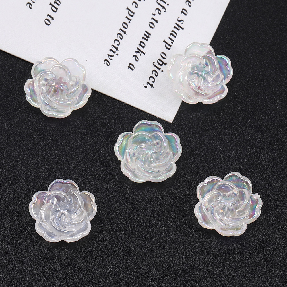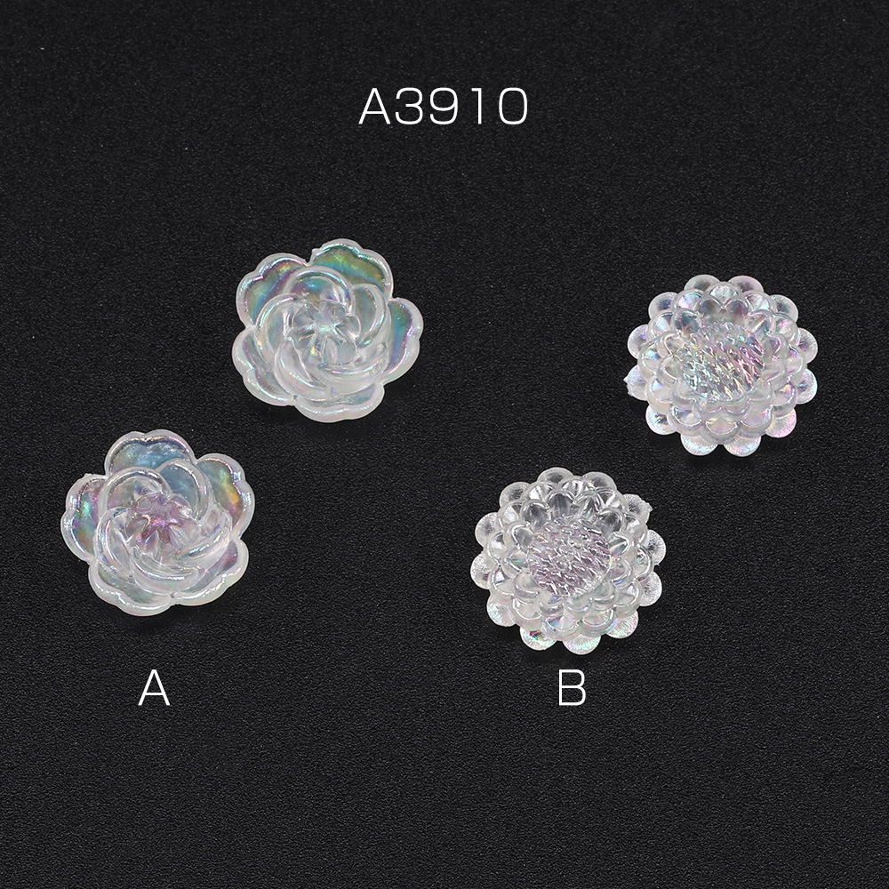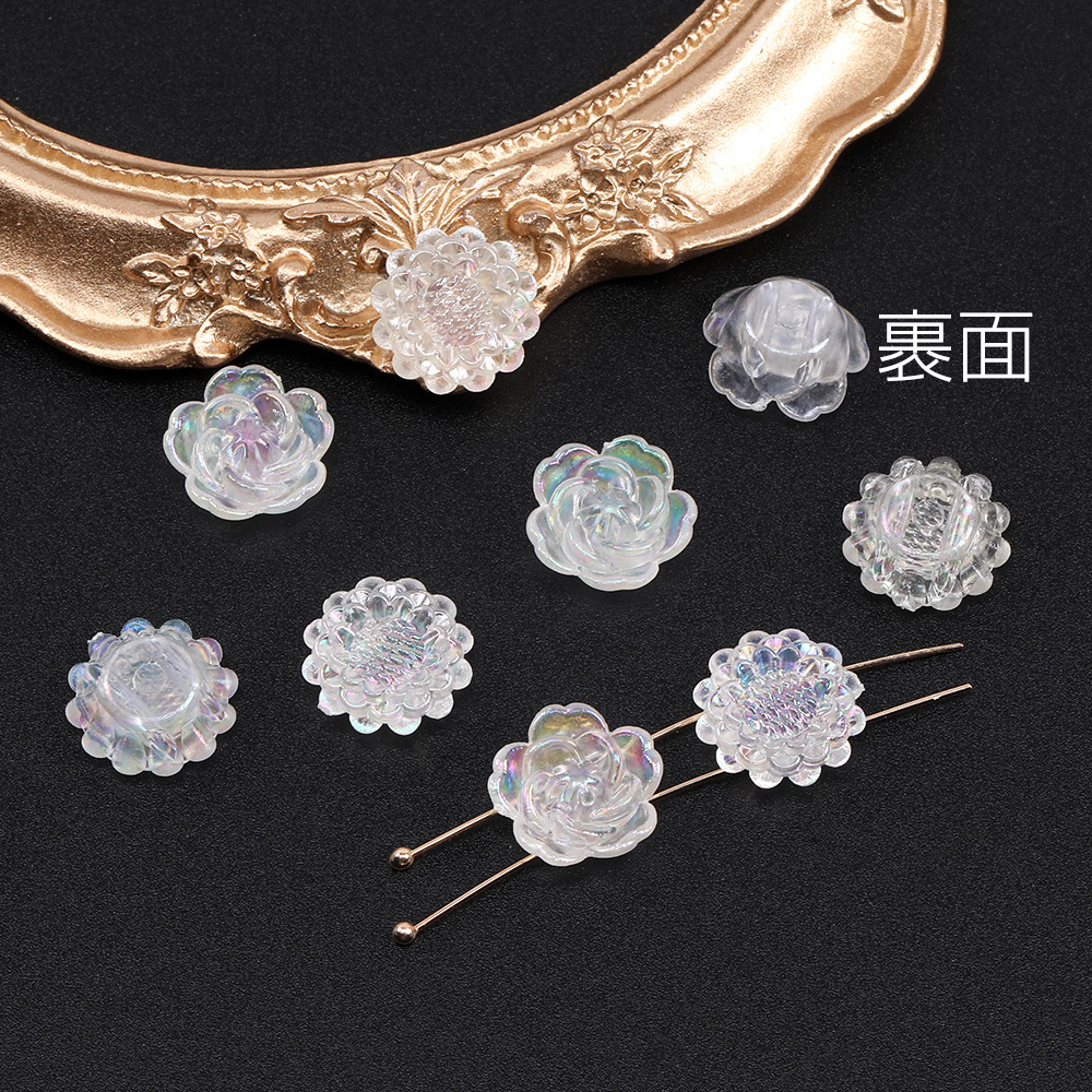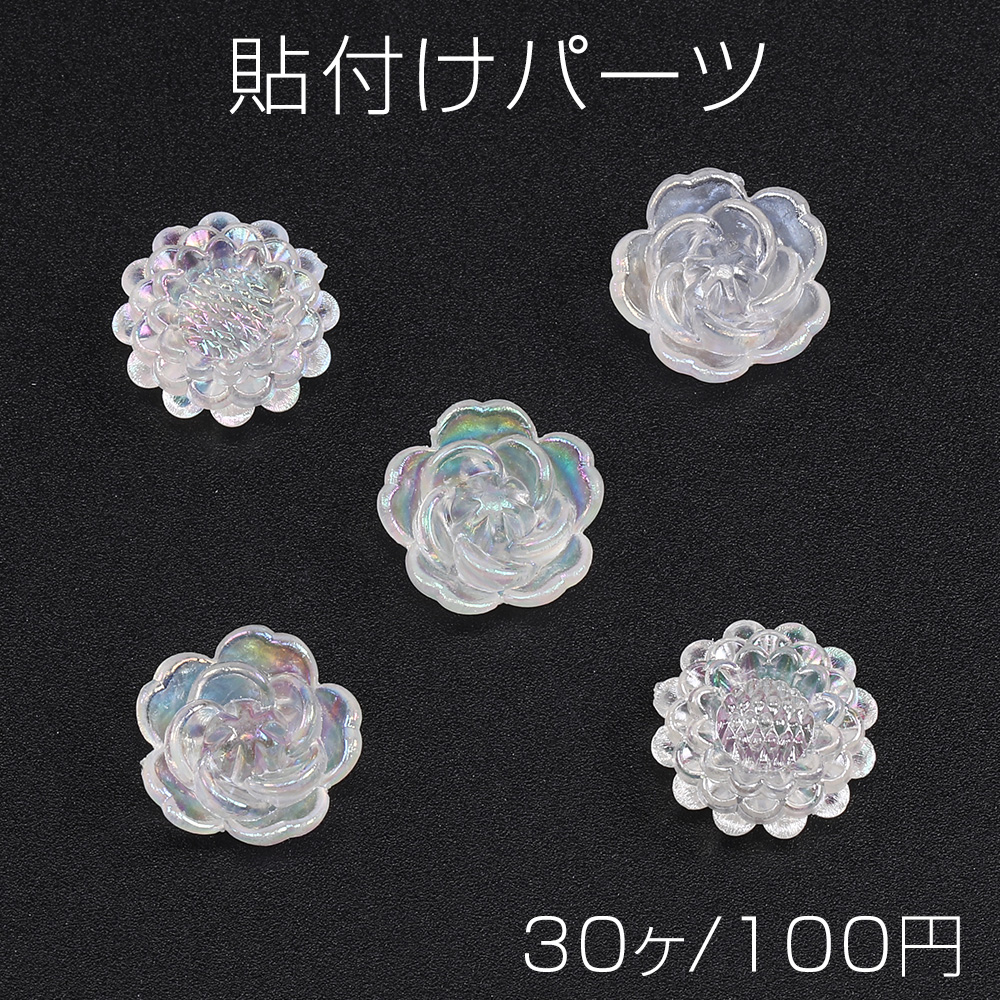 貼付けパーツ アクリル貼付けパーツ アクリルカボション フラワー 穴あり パール調 オーロラカラー