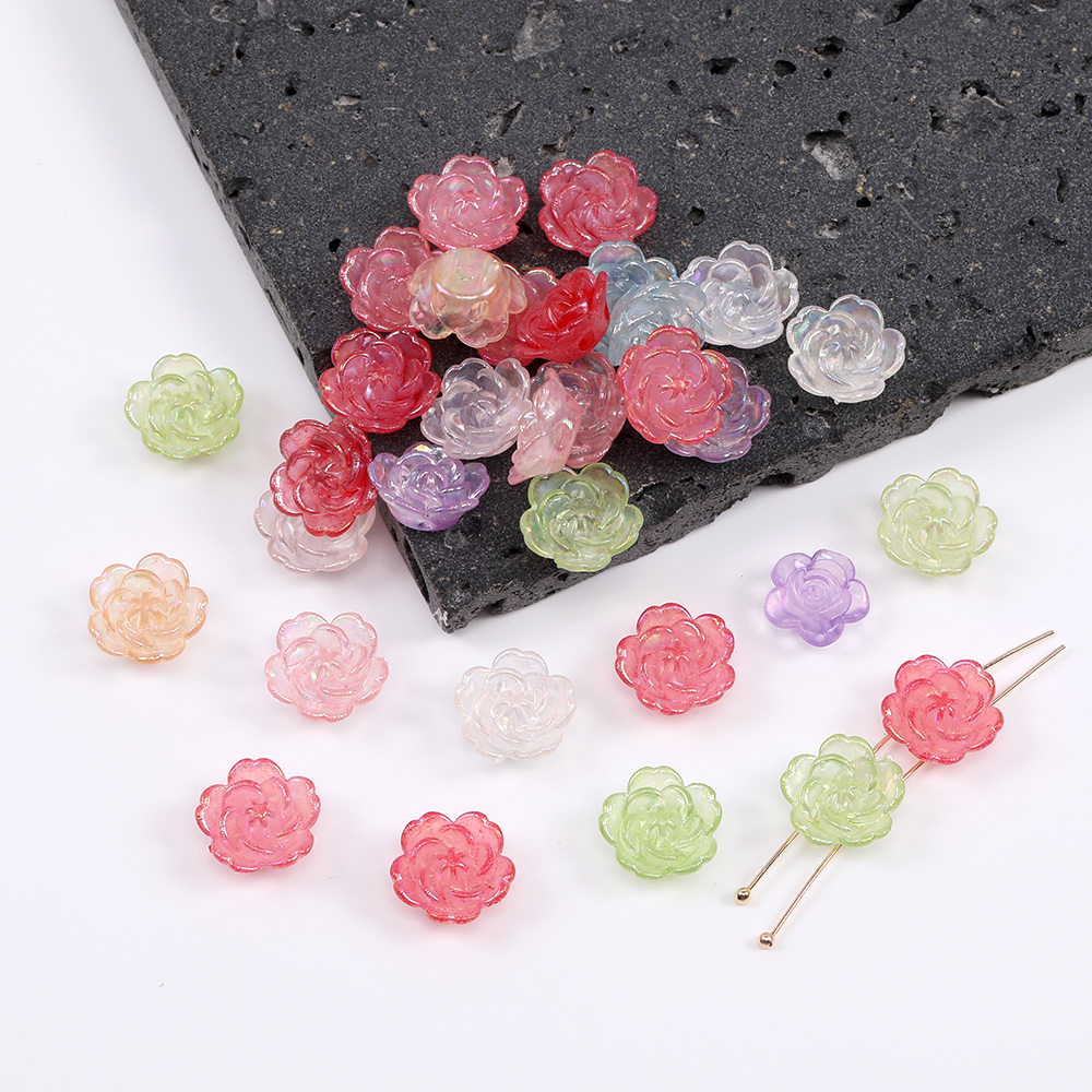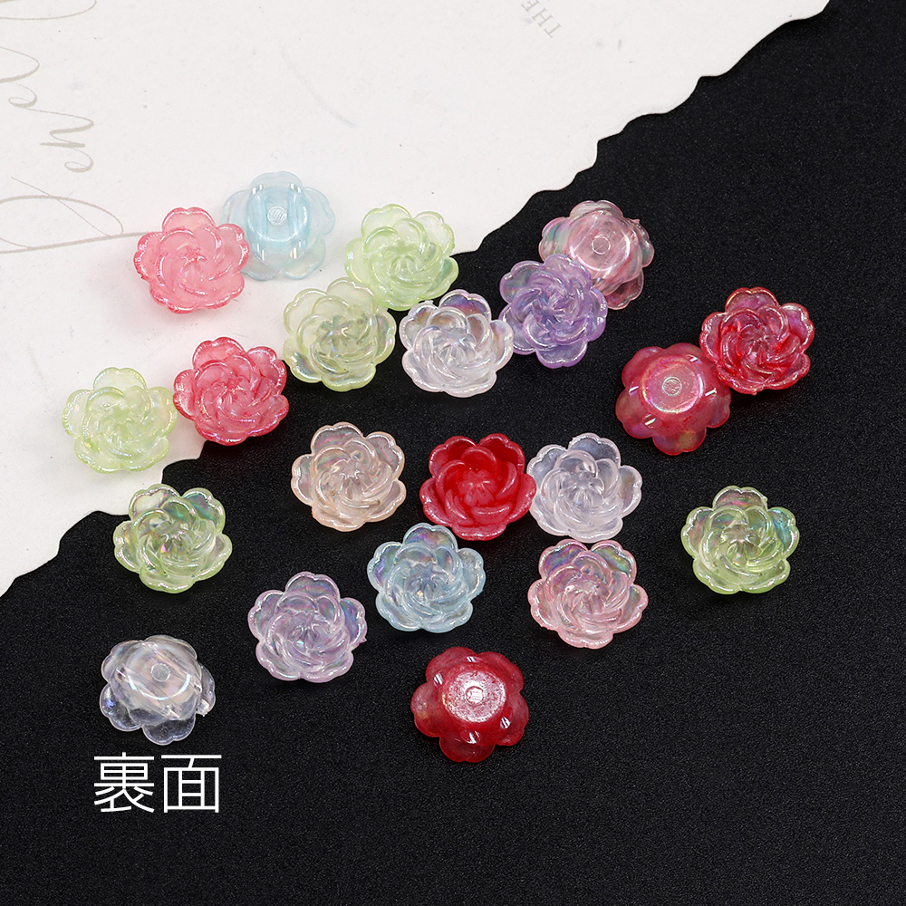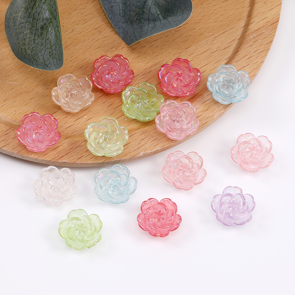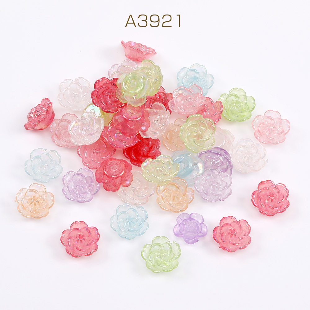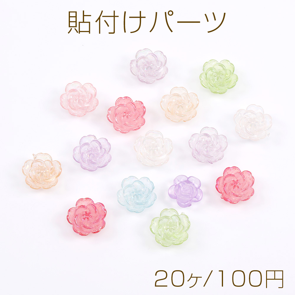 貼付けパーツ 樹脂貼付けパーツ 樹脂カボション フラワー 穴あり 13.5mm オーロラ カラーミックス(20ヶ)