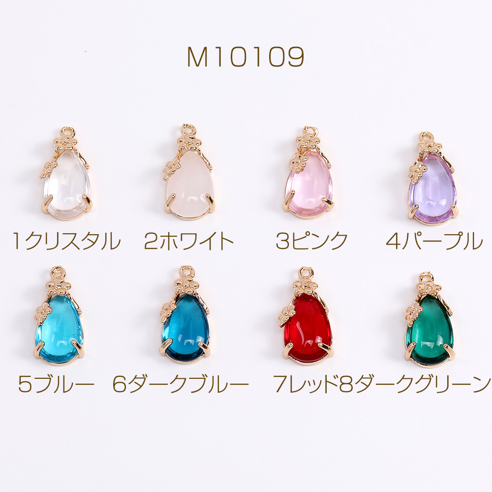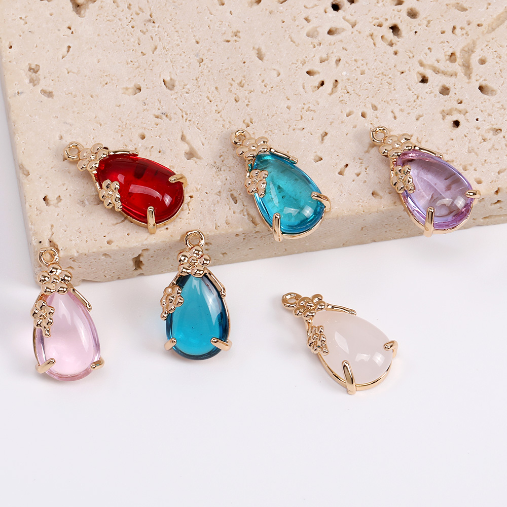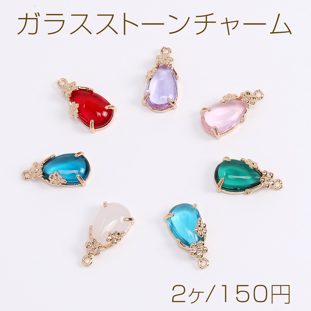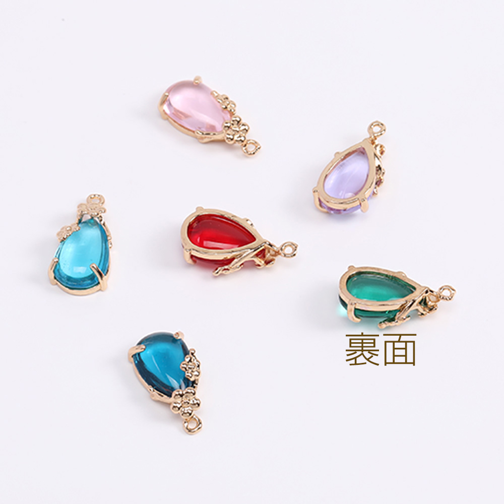 ガラスストーンチャーム しずく型 カン付き 9×17mm ゴールド(2ヶ)