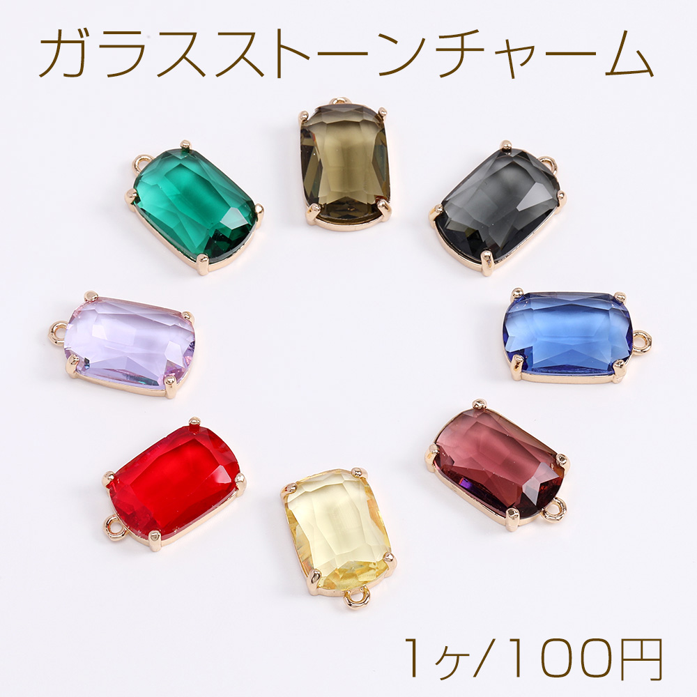 ガラスストーンチャーム オーバル カン付き 11×18mm ゴールド(1ヶ)