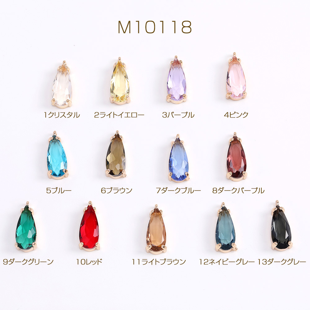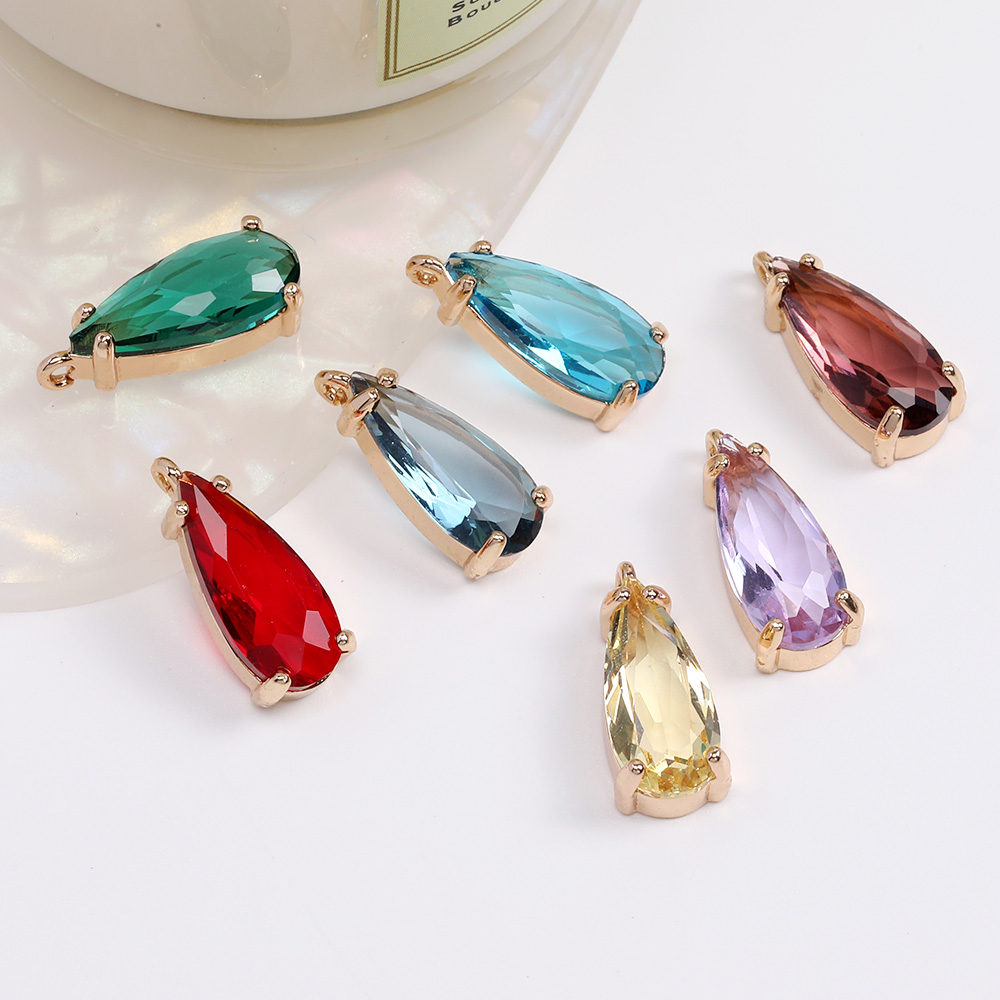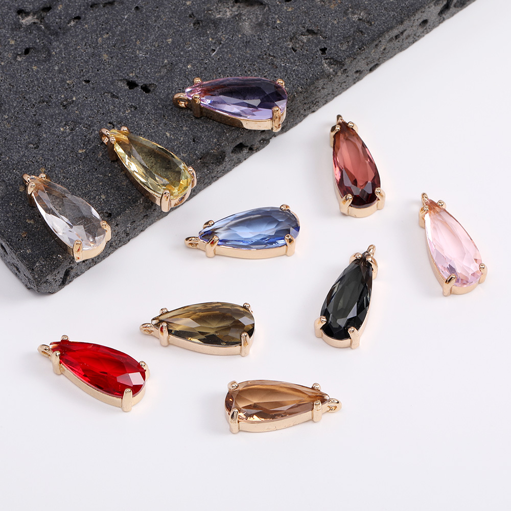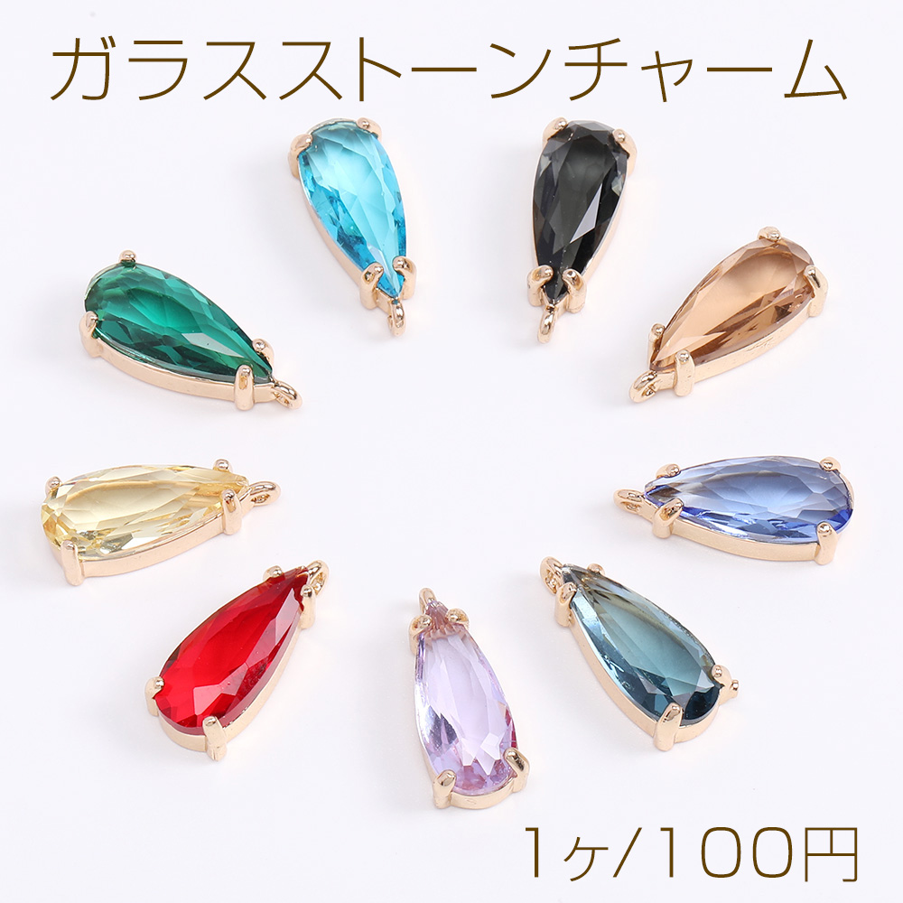 ガラスストーンチャーム しずく型 カン付き 8×18mm ゴールド(1ヶ)