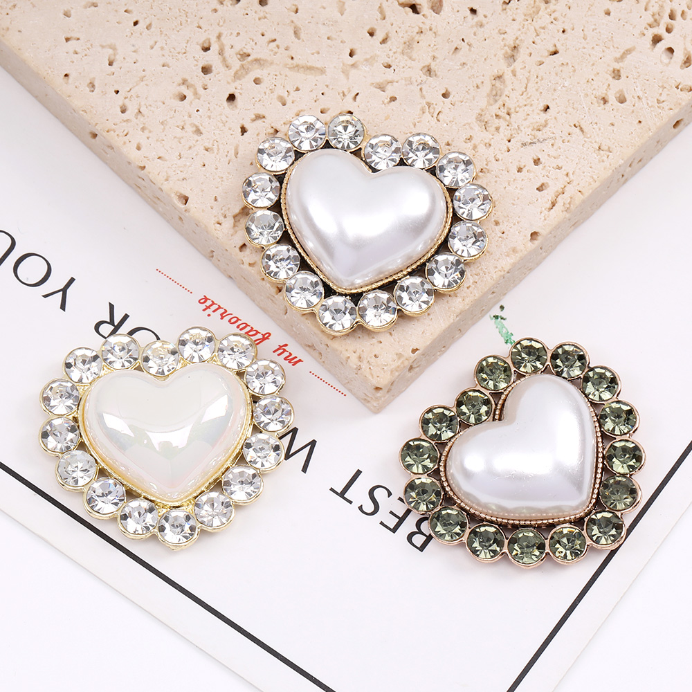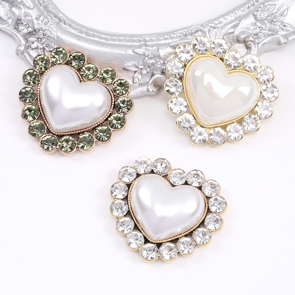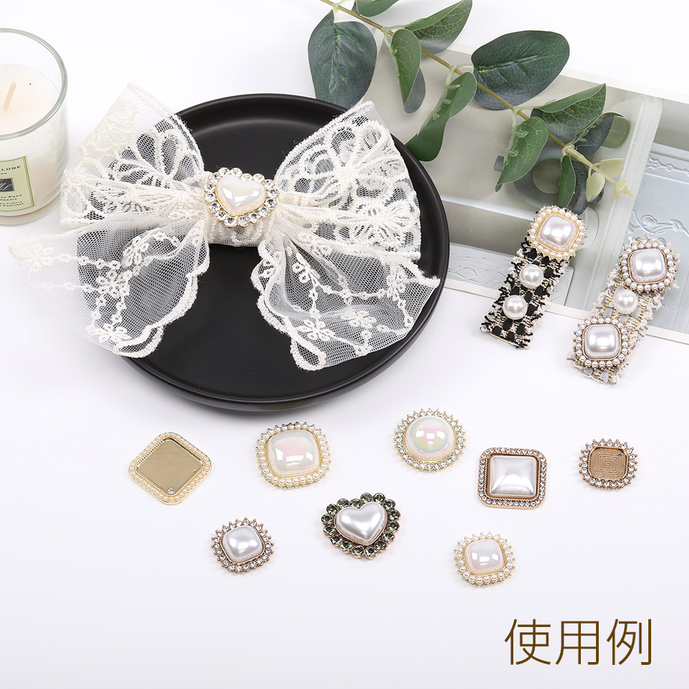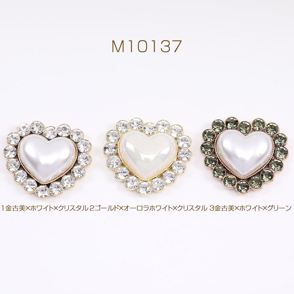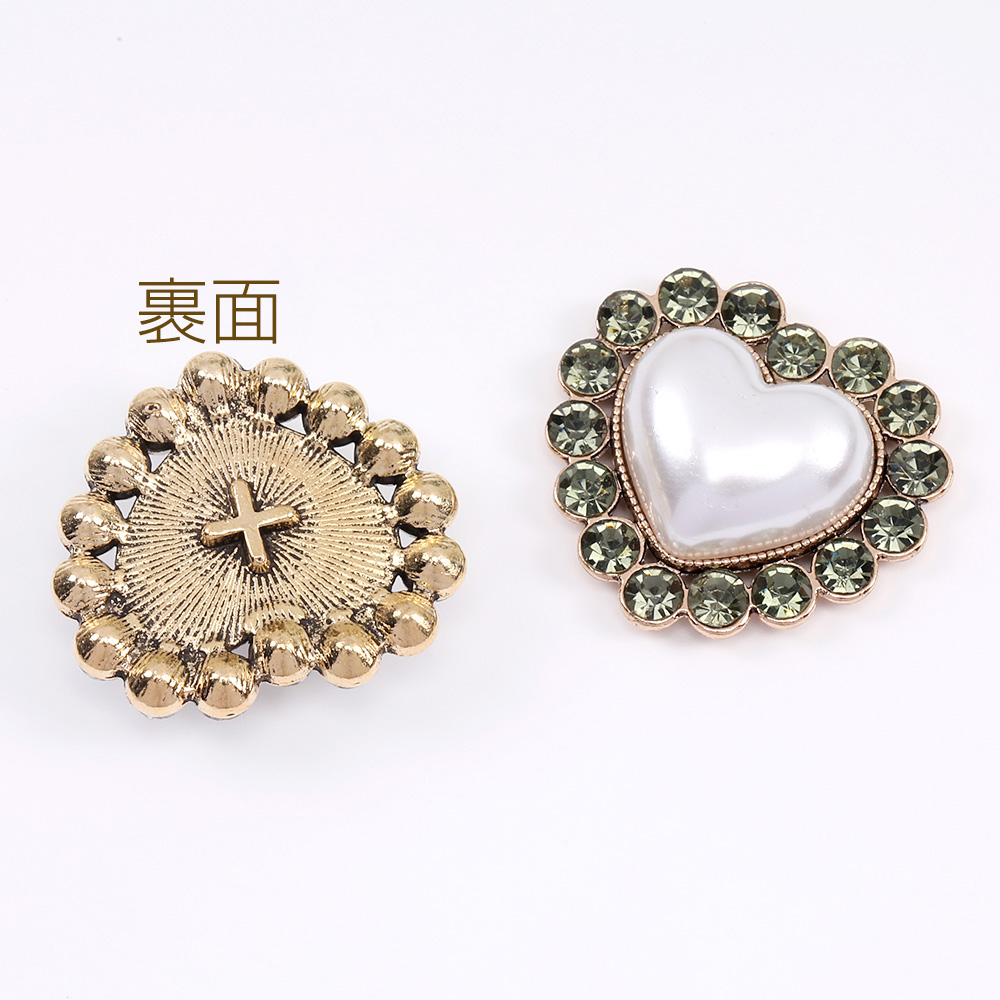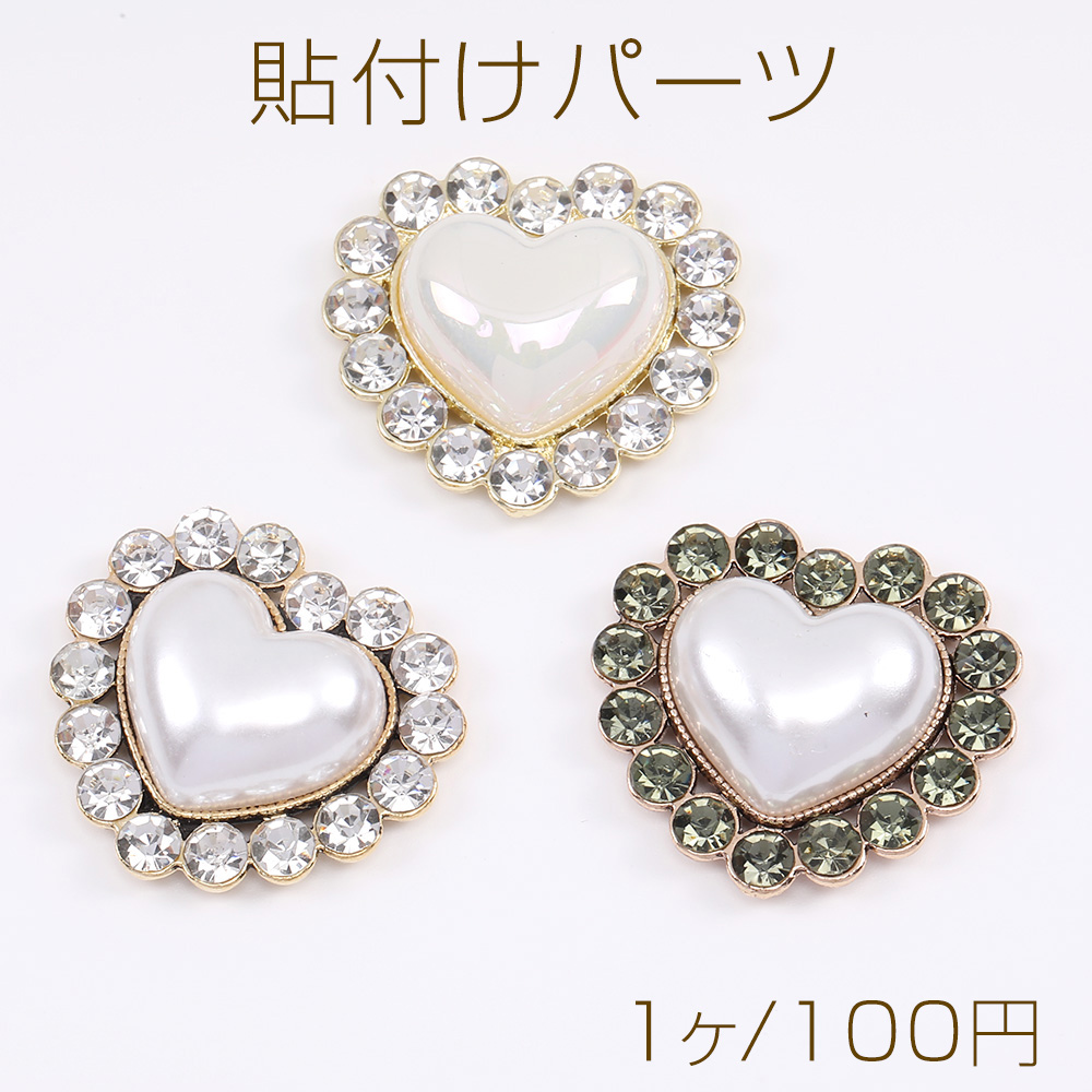 貼付けパーツ メタル貼り付けパーツ メタルカボション パール付き ラインストーン付き ハート型 29×31mm