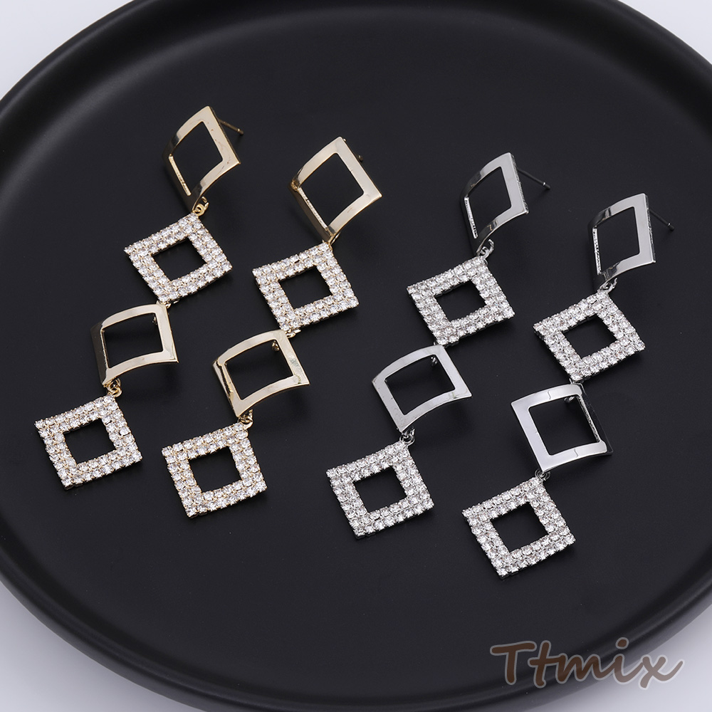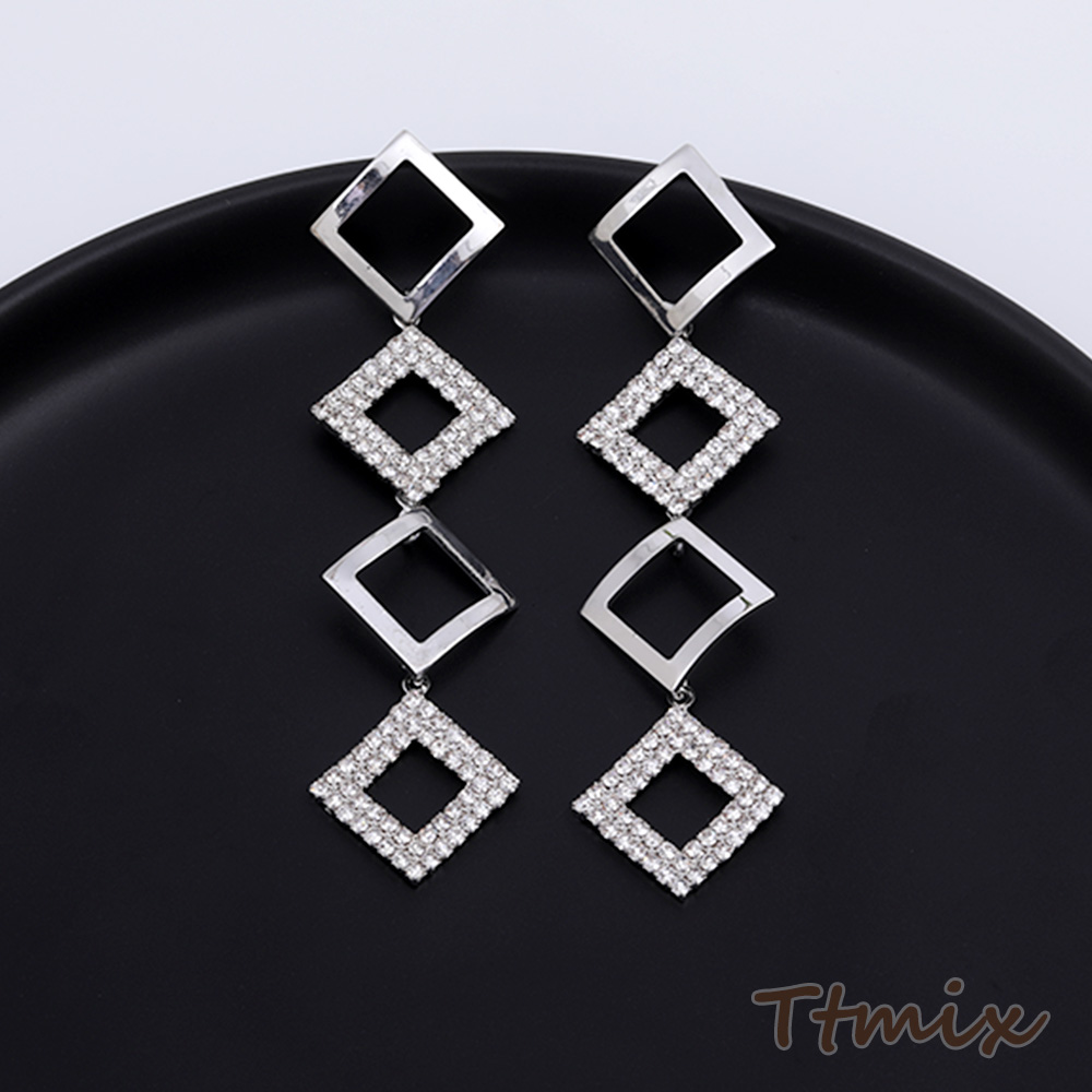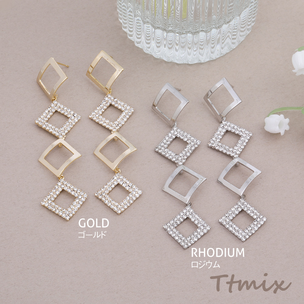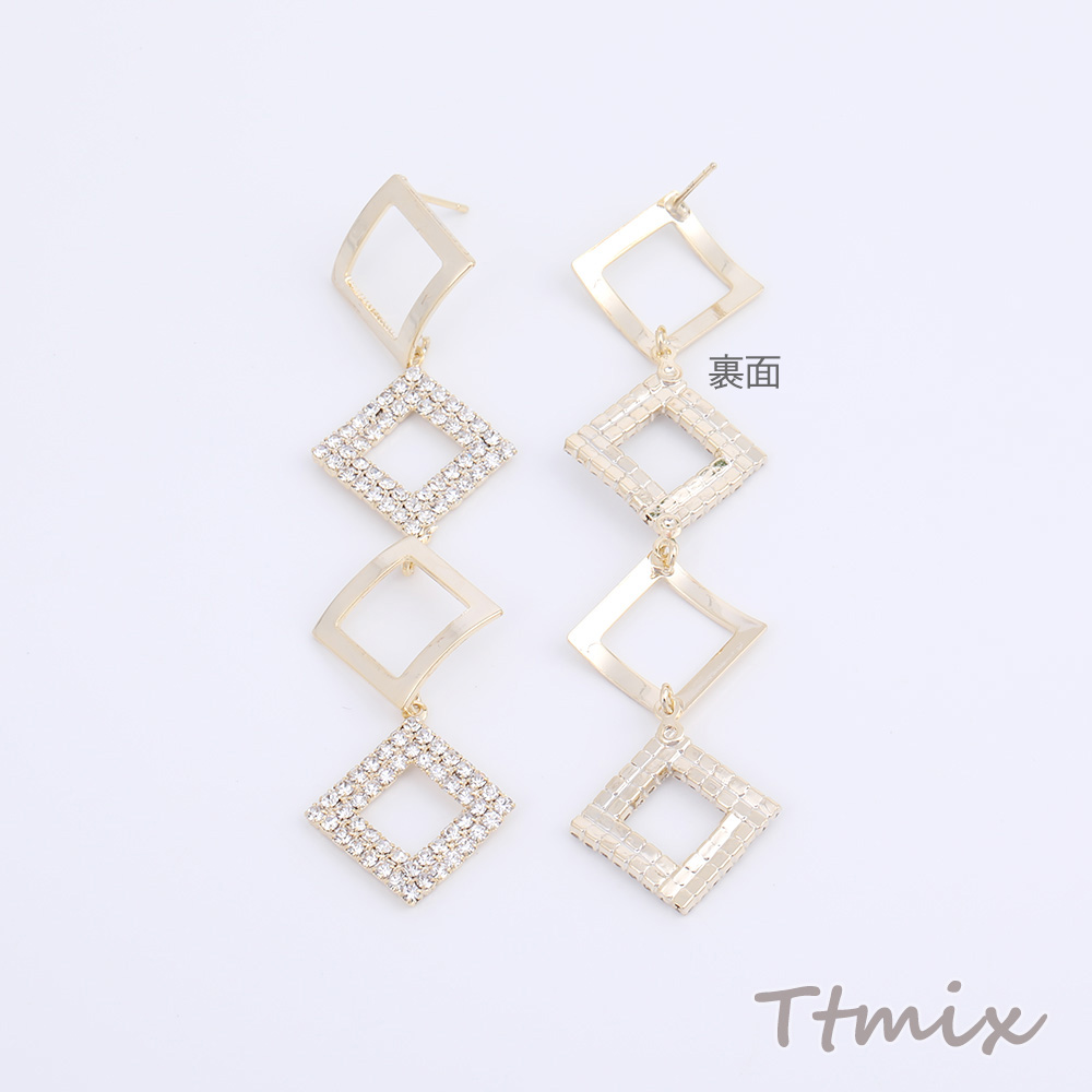 デザインピアス ラインストーン付き ひし形 18×75mm(1ペア)