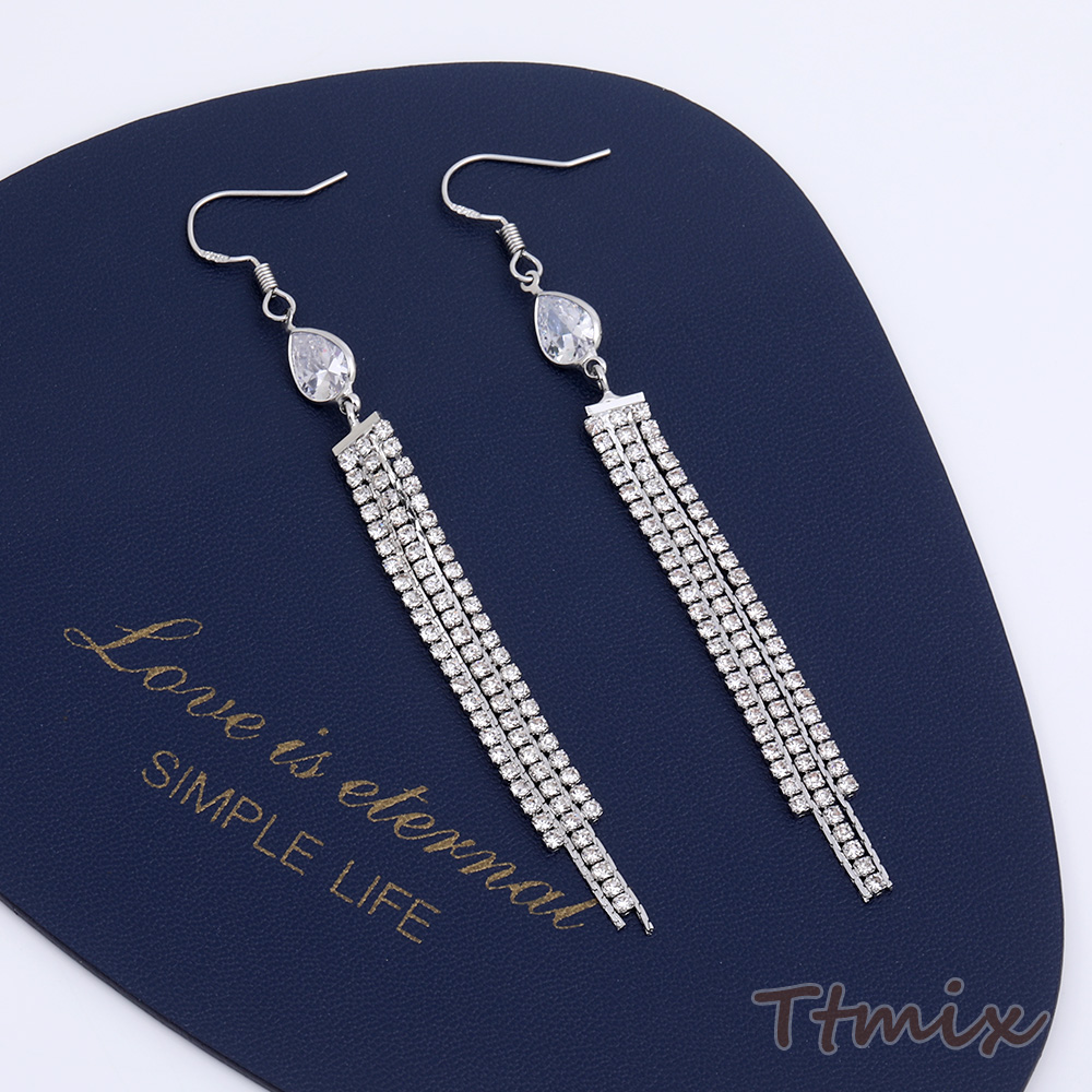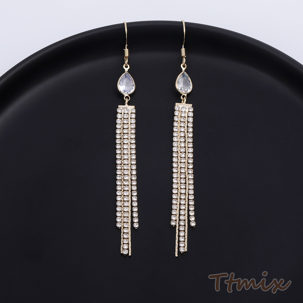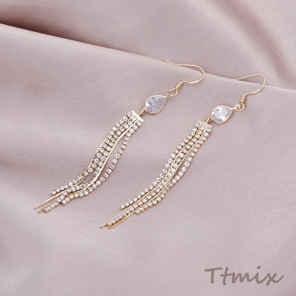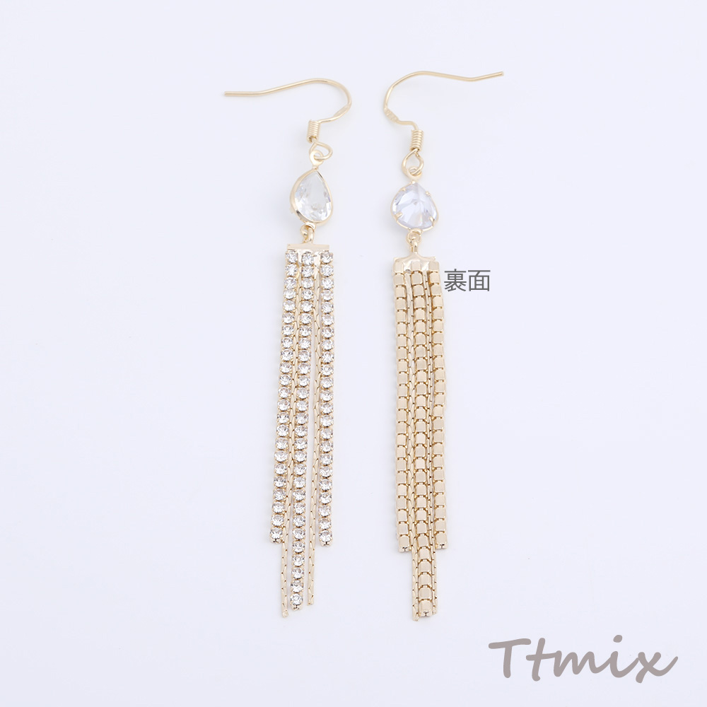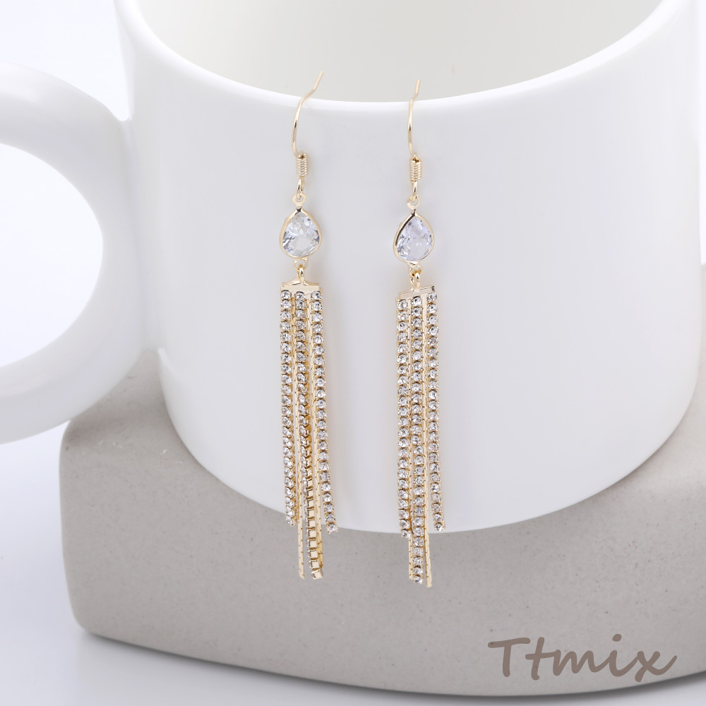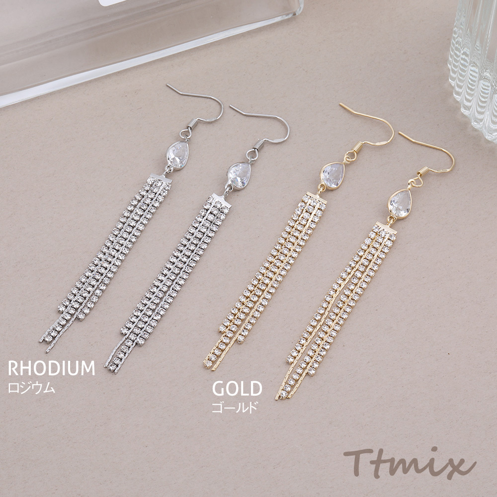 フックピアス ジルコニア付き しずく型 チェーンタッセル 7×85mm(1ペア)