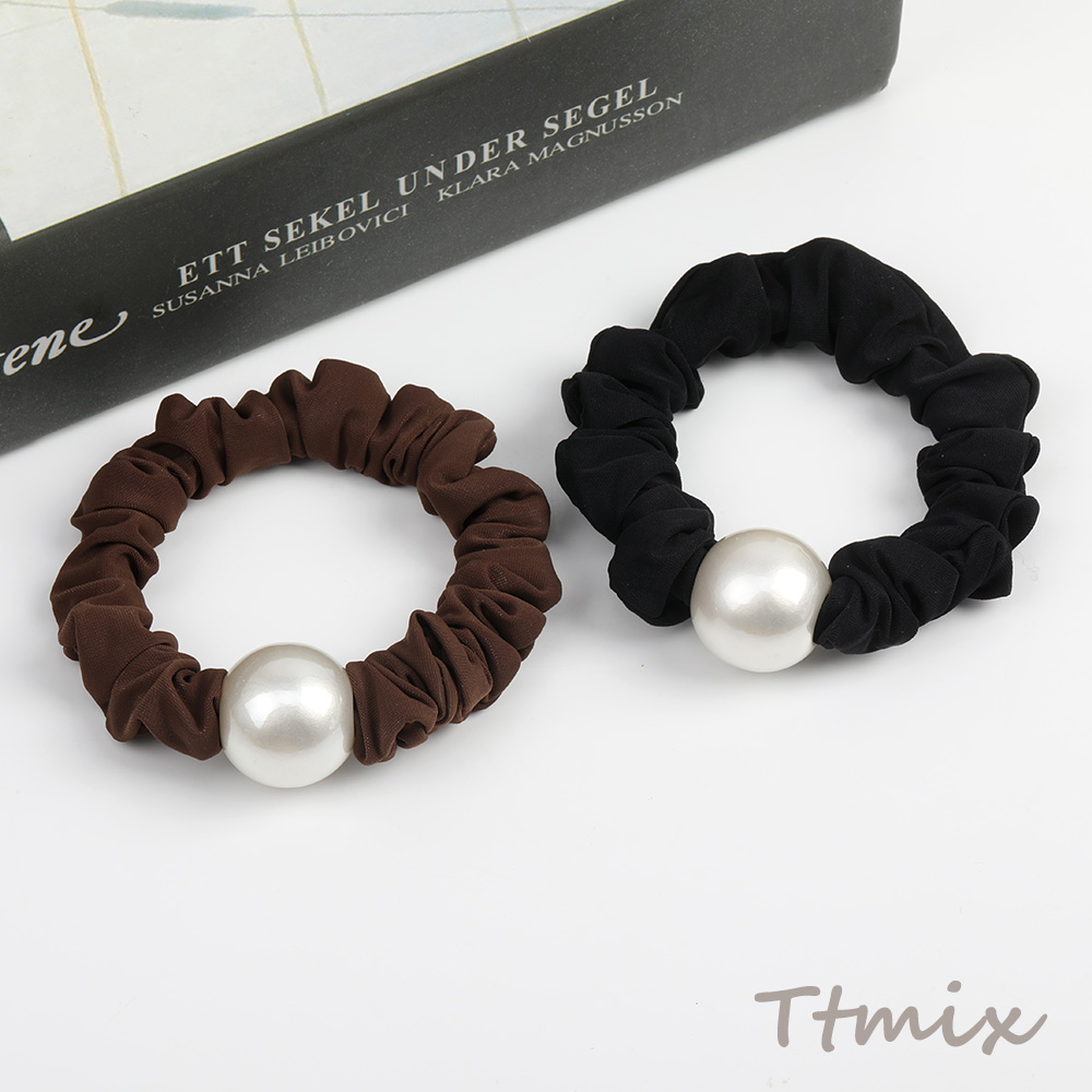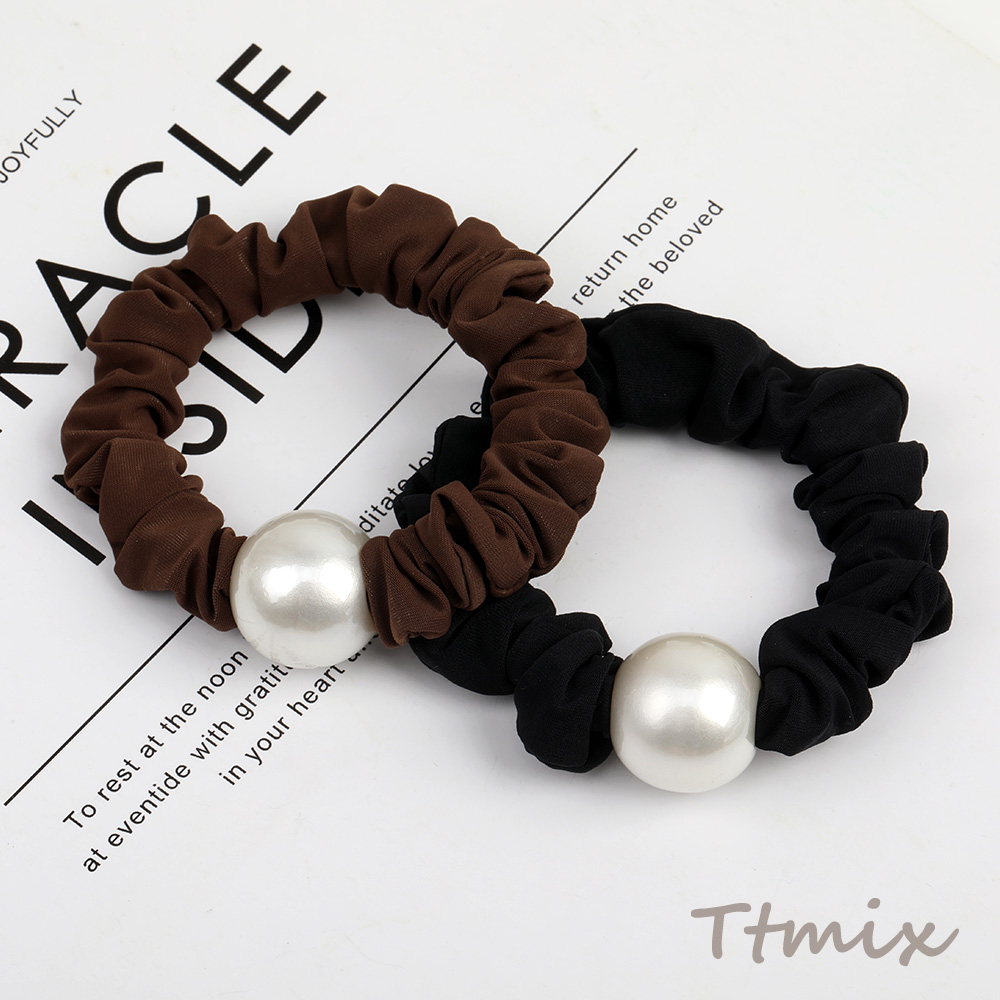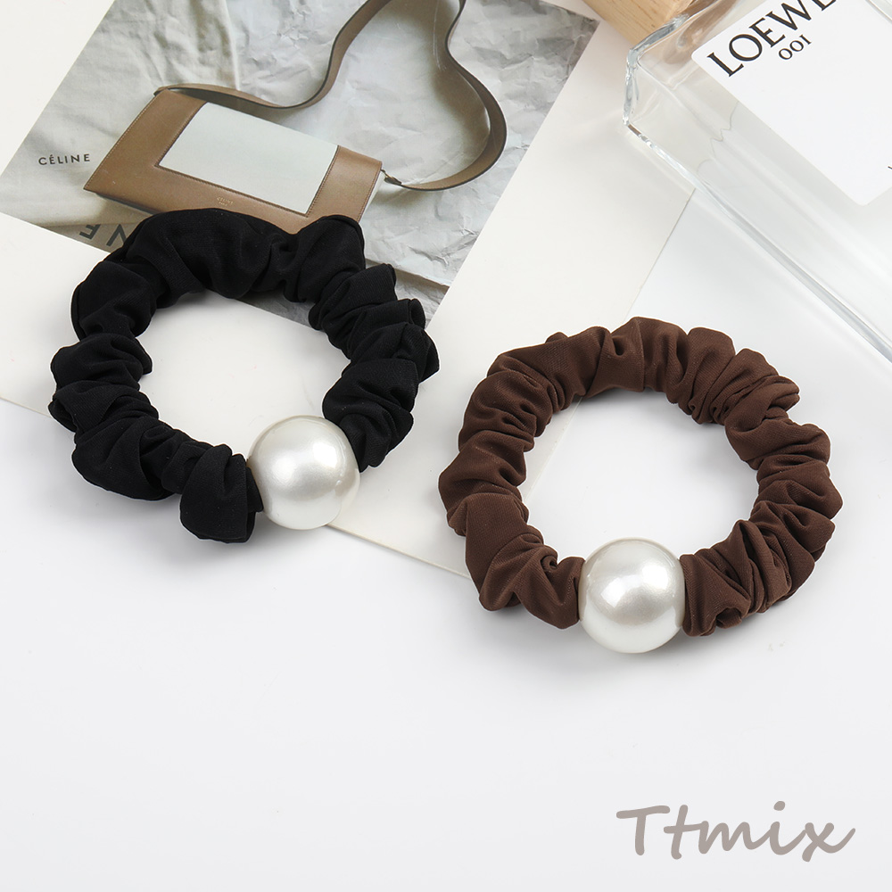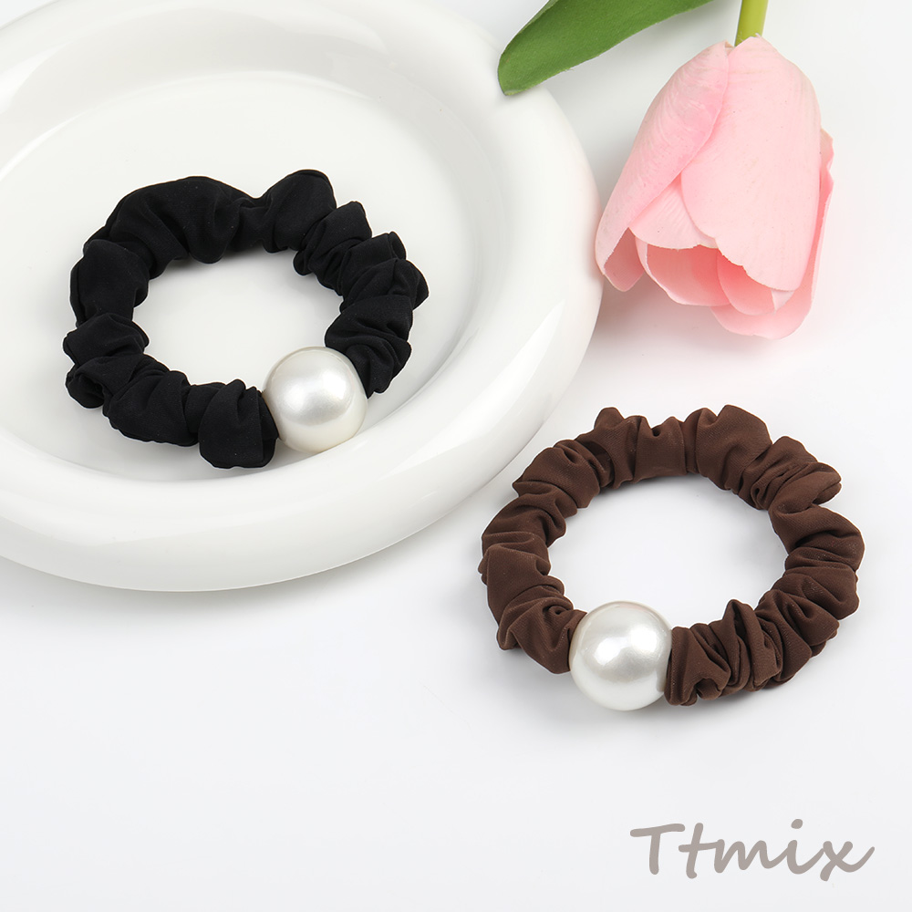 シュシュ ヘアアクセサリー 6.5cm ブラウン&ブラック(2個セット)
