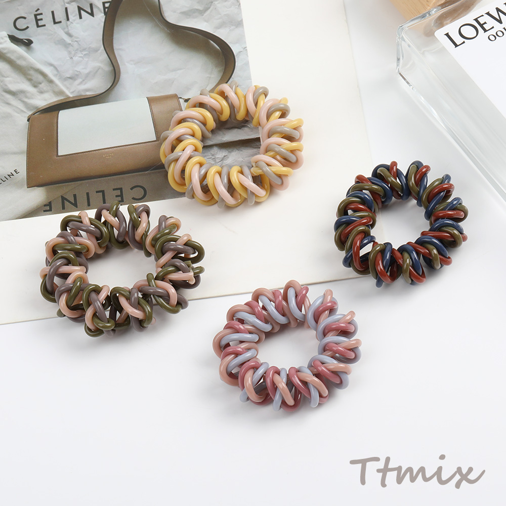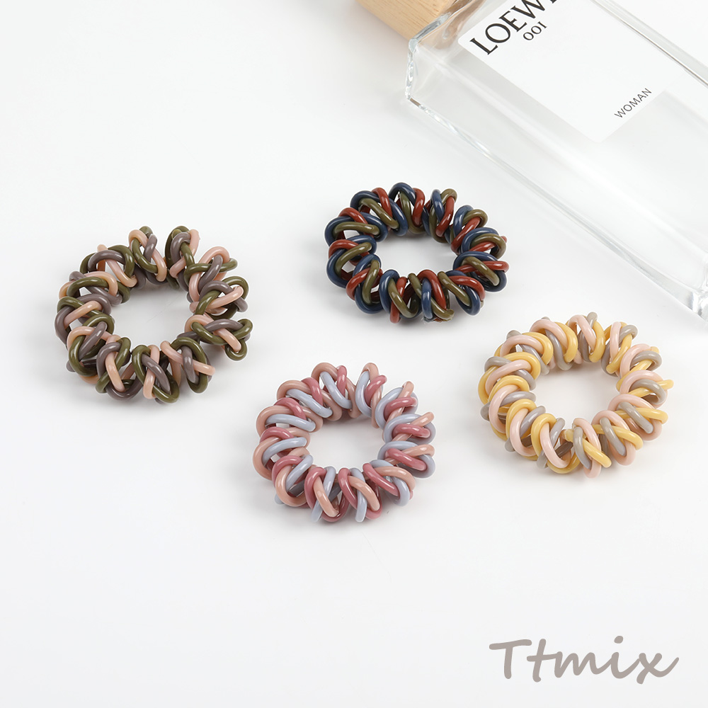 ヘアゴム ヘアアクセサリー 電話線 4cm カラーミックス(4個セット)