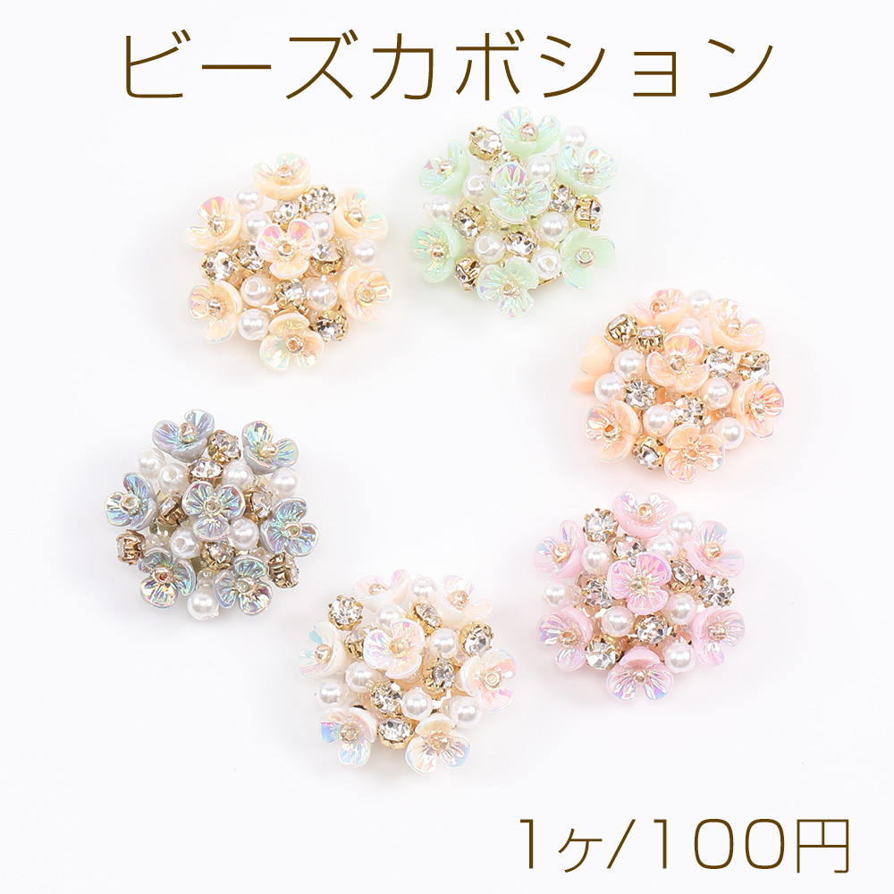 フラワーボールカボション(縫付け) ビーズボタン風カボション フラワー 20mm(1ヶ)