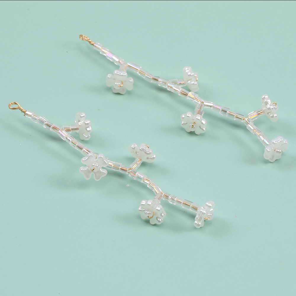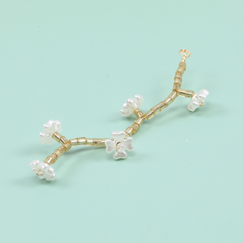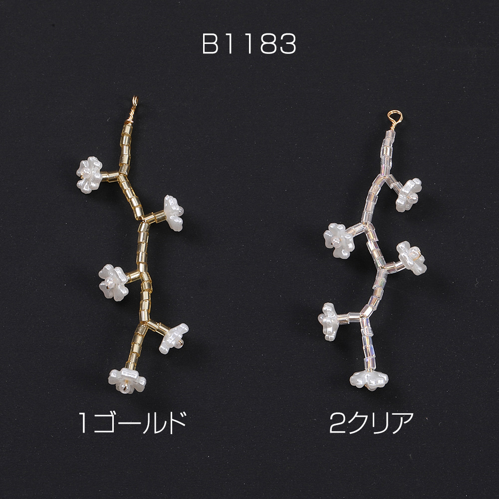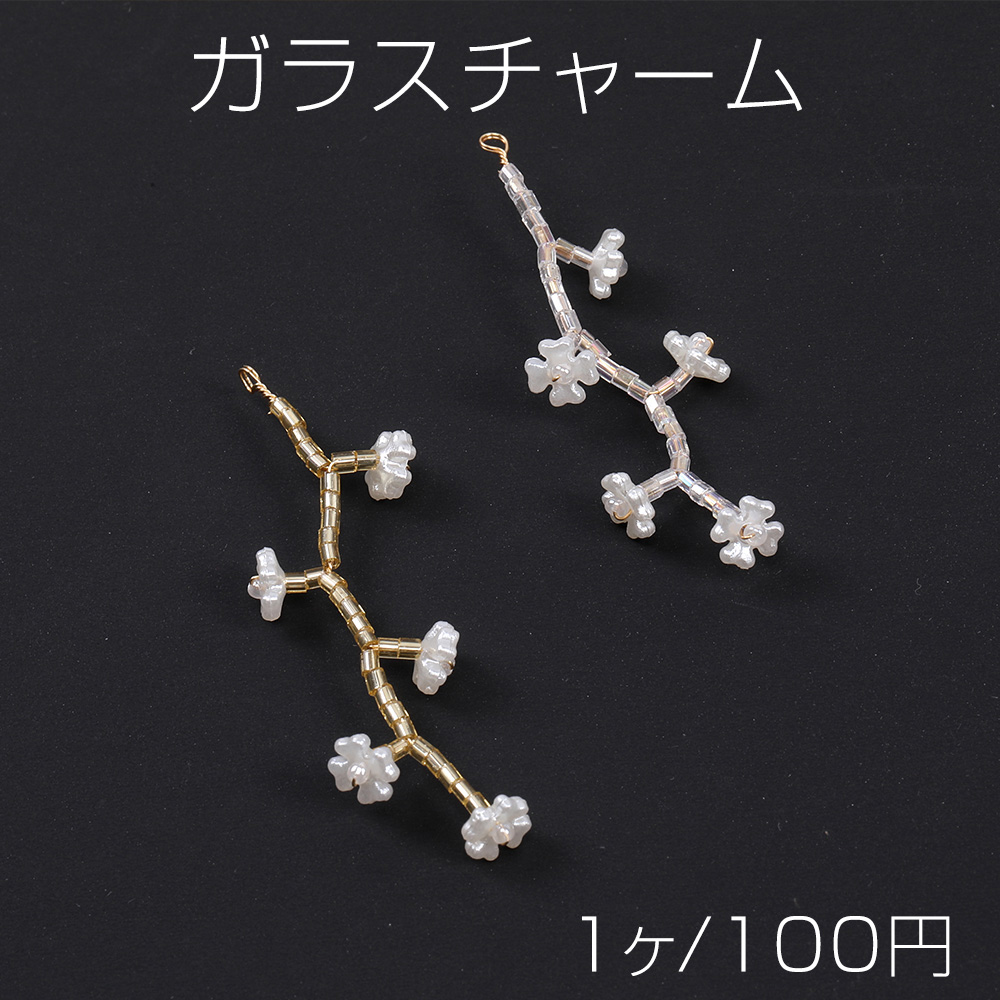 ワイヤービーズフラワーチャーム 花枝チャーム 17×60mm ゴールド(1ヶ)