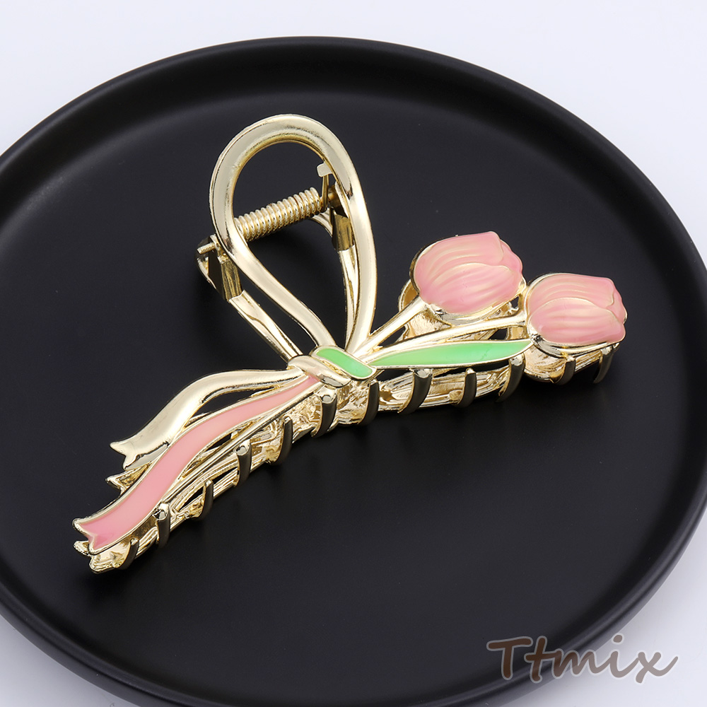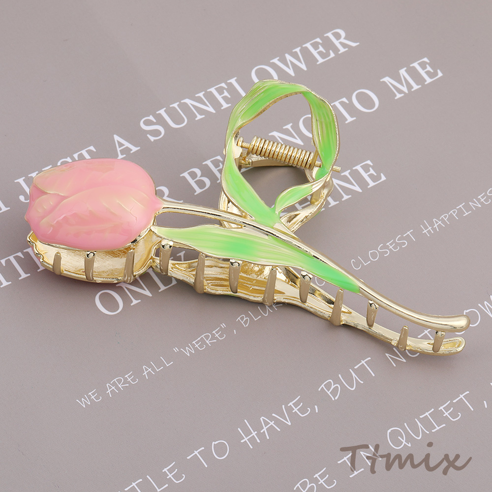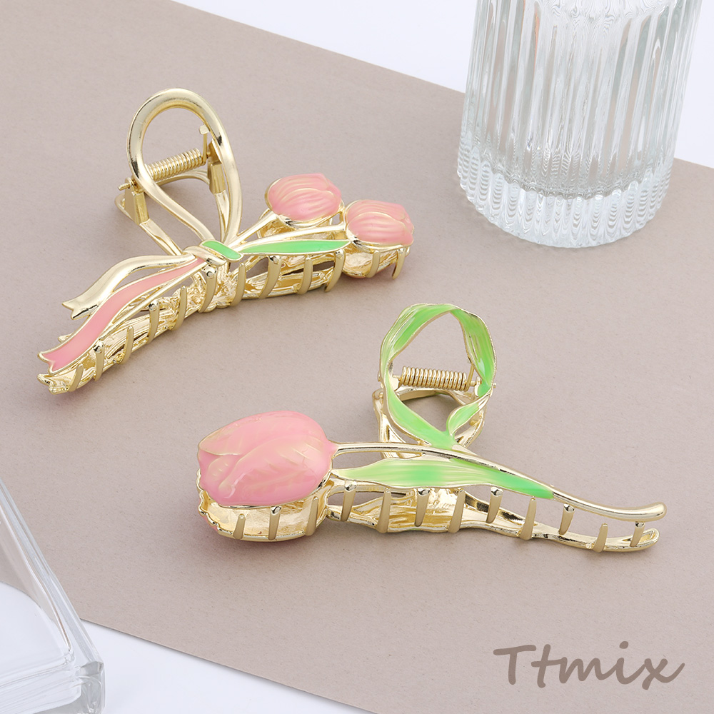 バンスクリップ メタルヘアクリップ チューリップモチーフデザイン ゴールド
